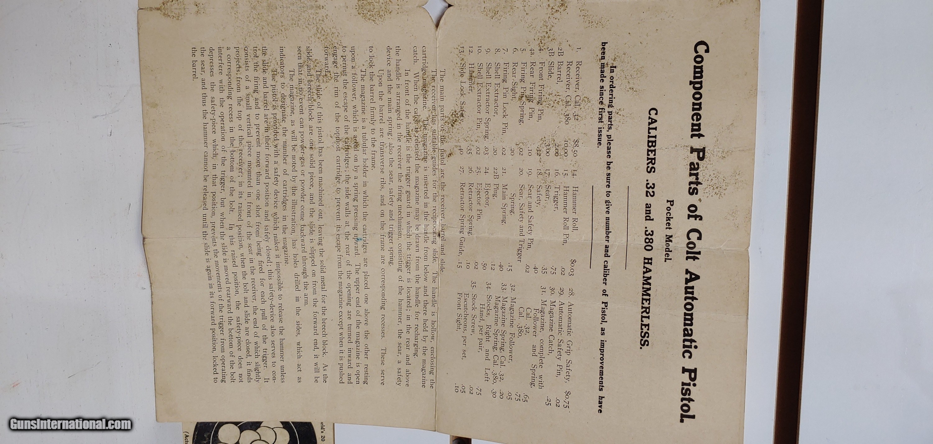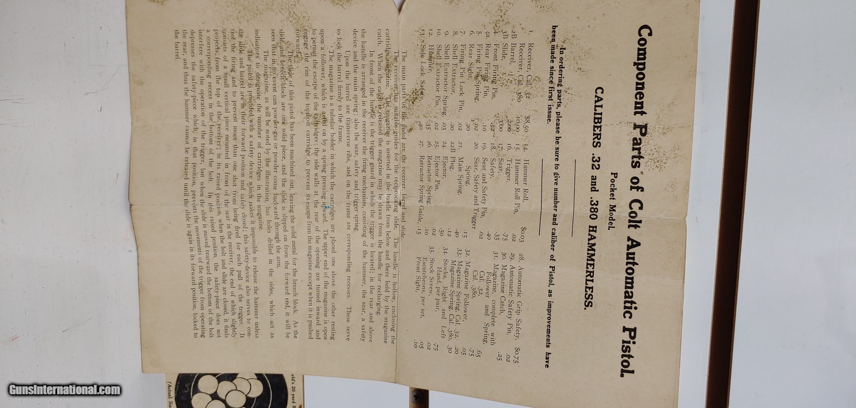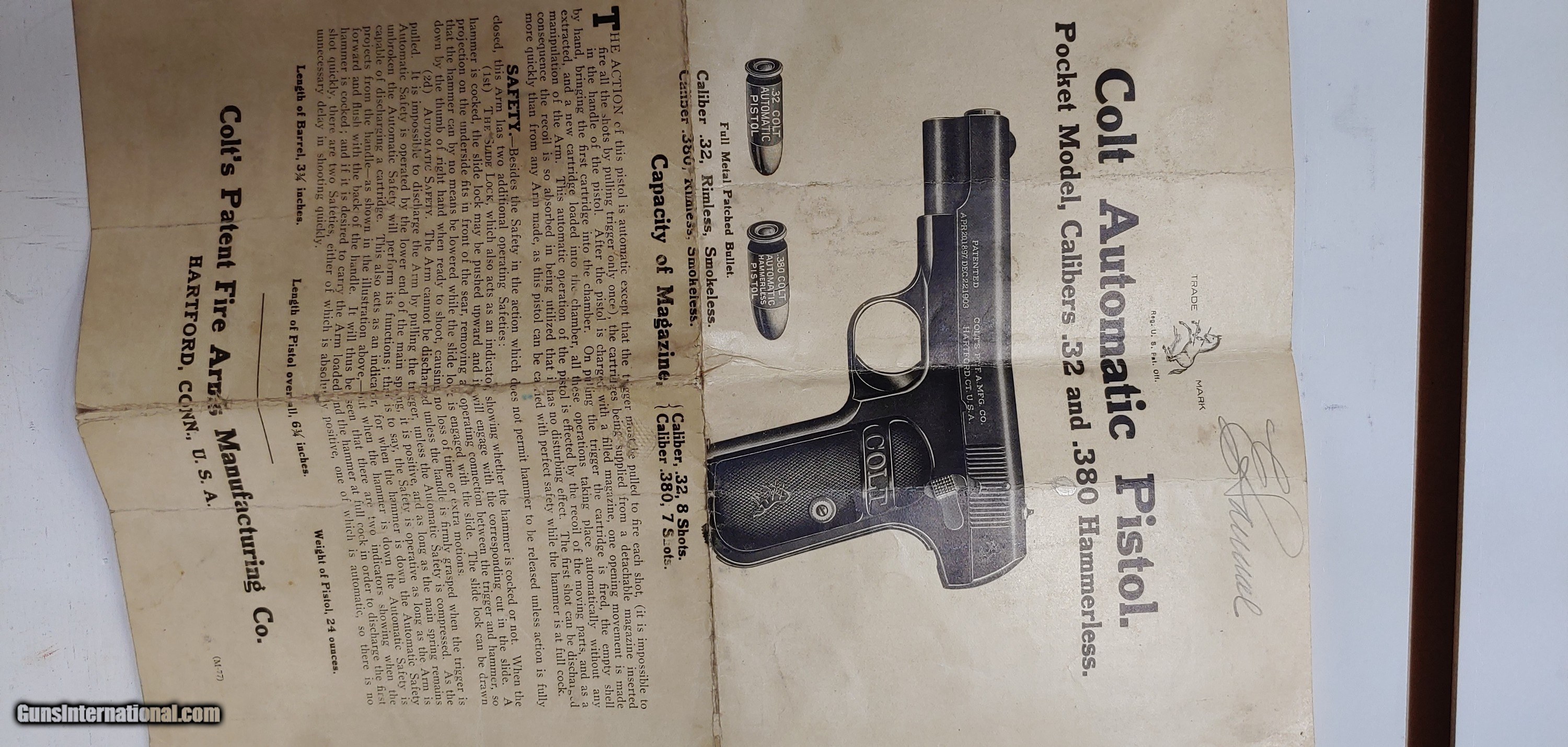 Used Colt 1903 .32acp original box, manuals DOM 1911 good condition very collectible