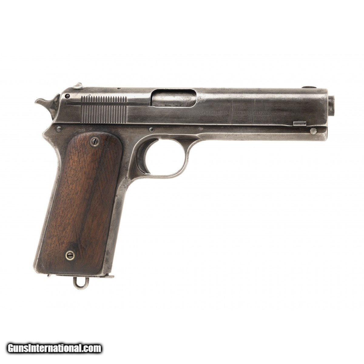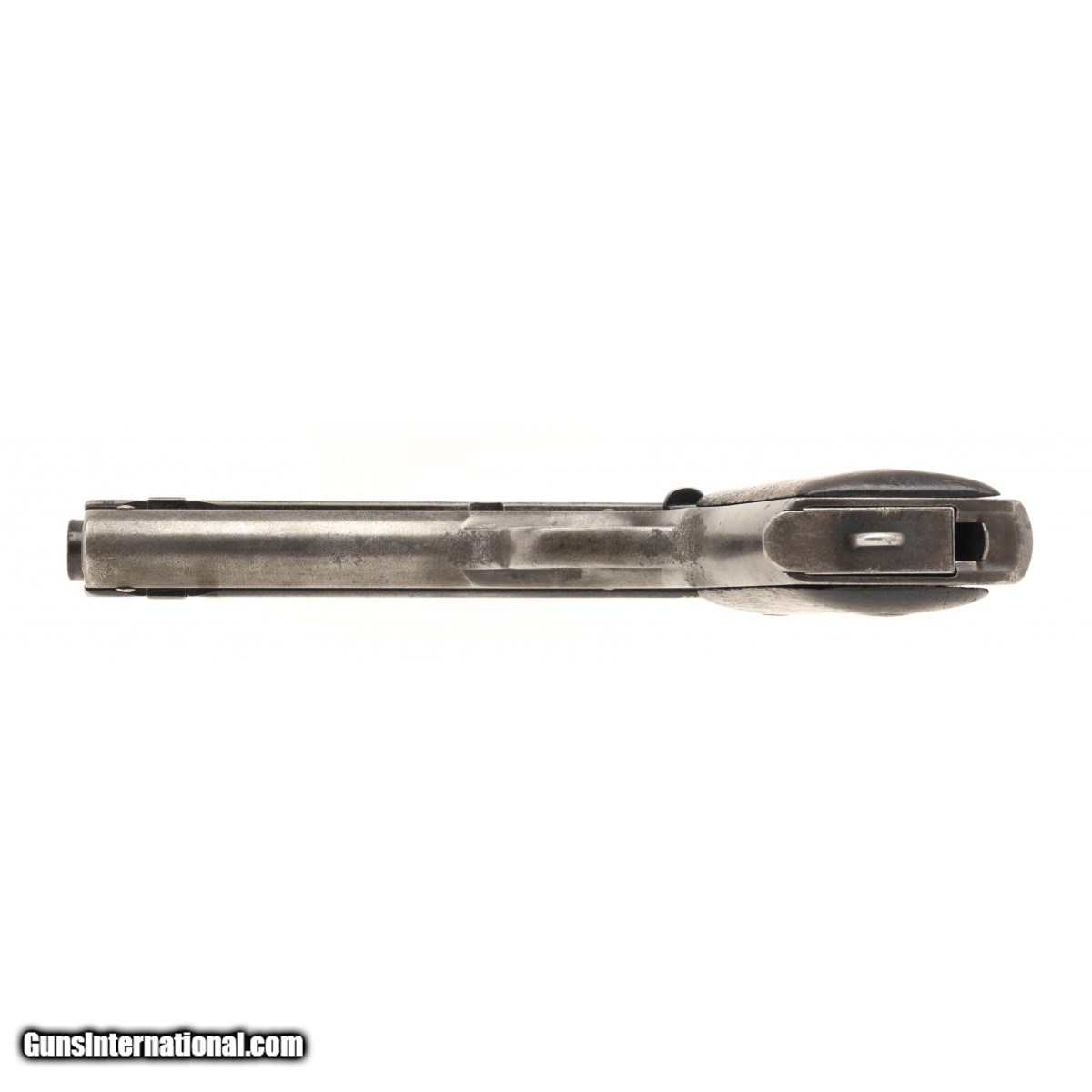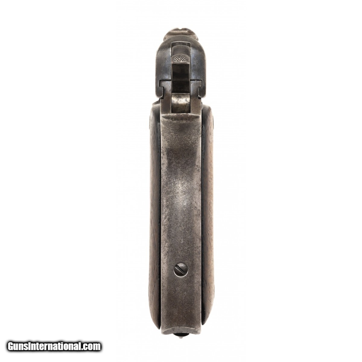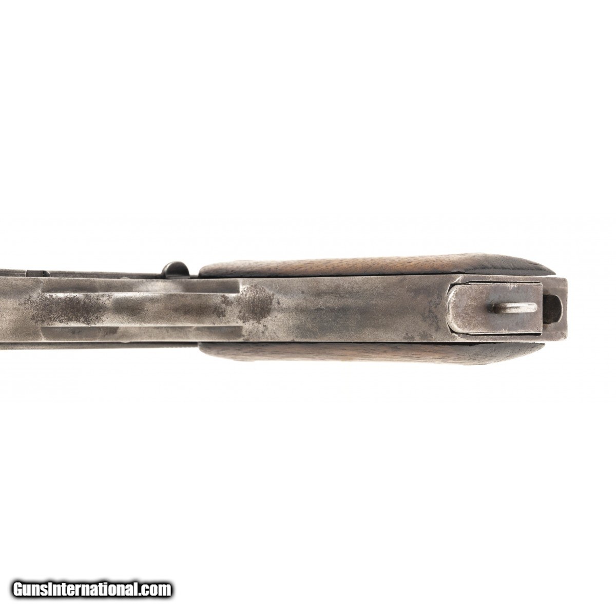 Description: " Early Colt auto pistol manufactured in 1911. Metal has a gray and brown patina. Bore is poor with shallow rifling and pitting. Grips are worn. Magazine is a later replacement, but has similar wear as the pistol. An affordable 1905. SOLD Curio/Relic: Yes |