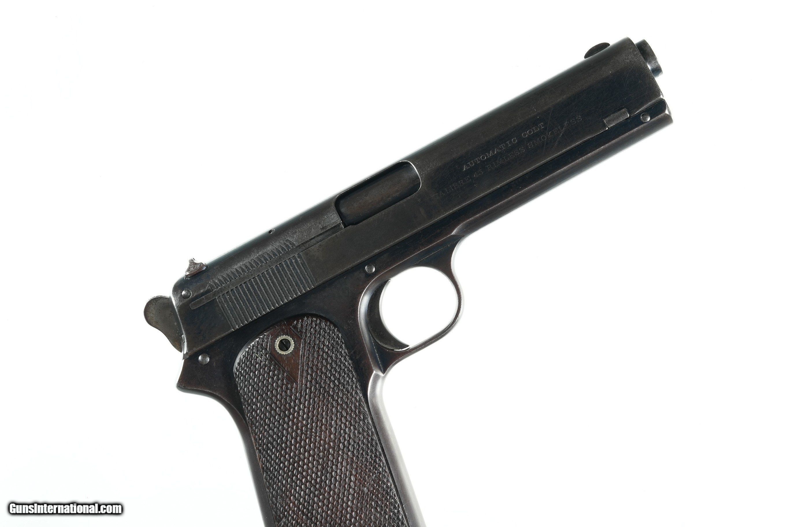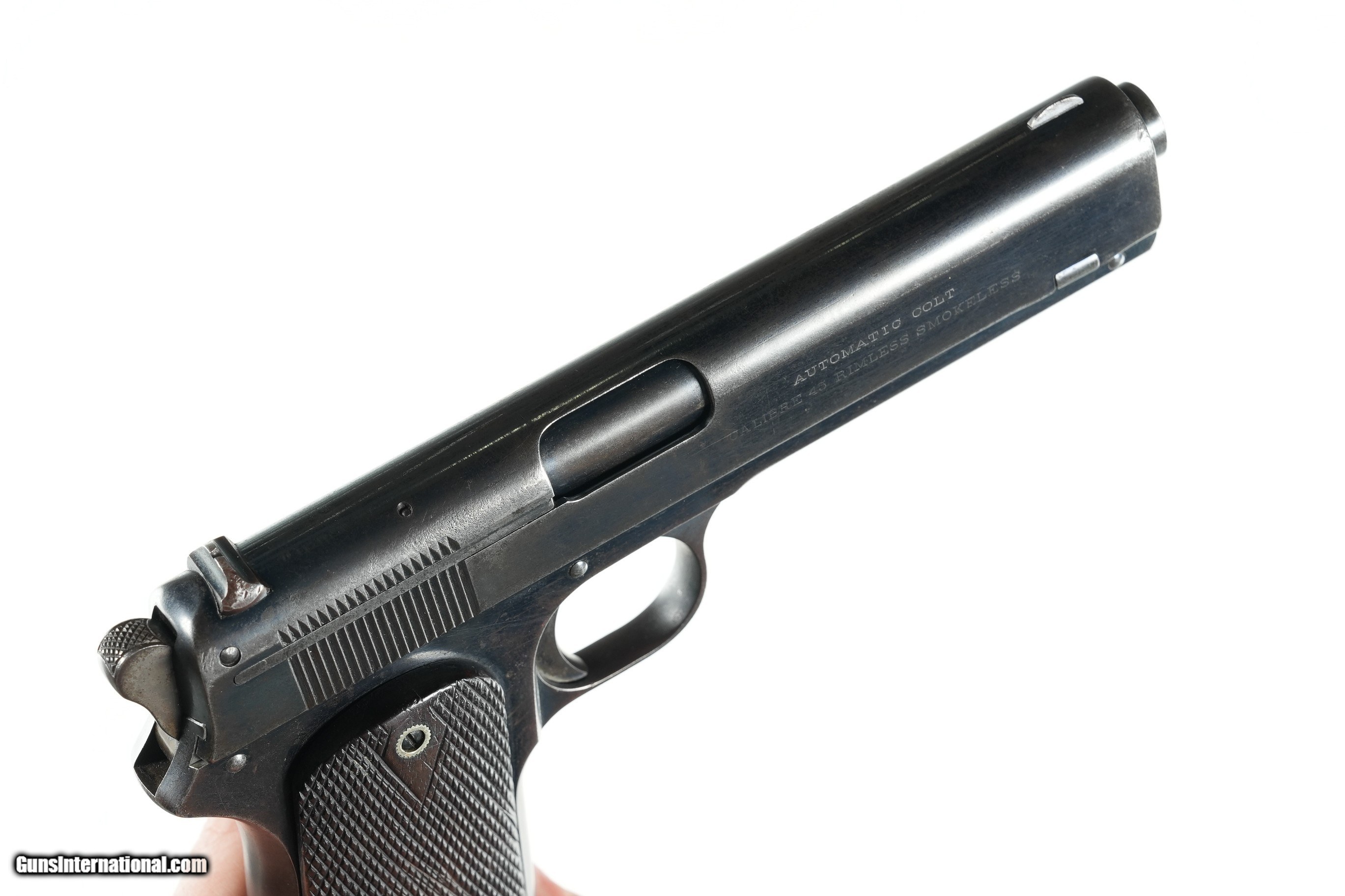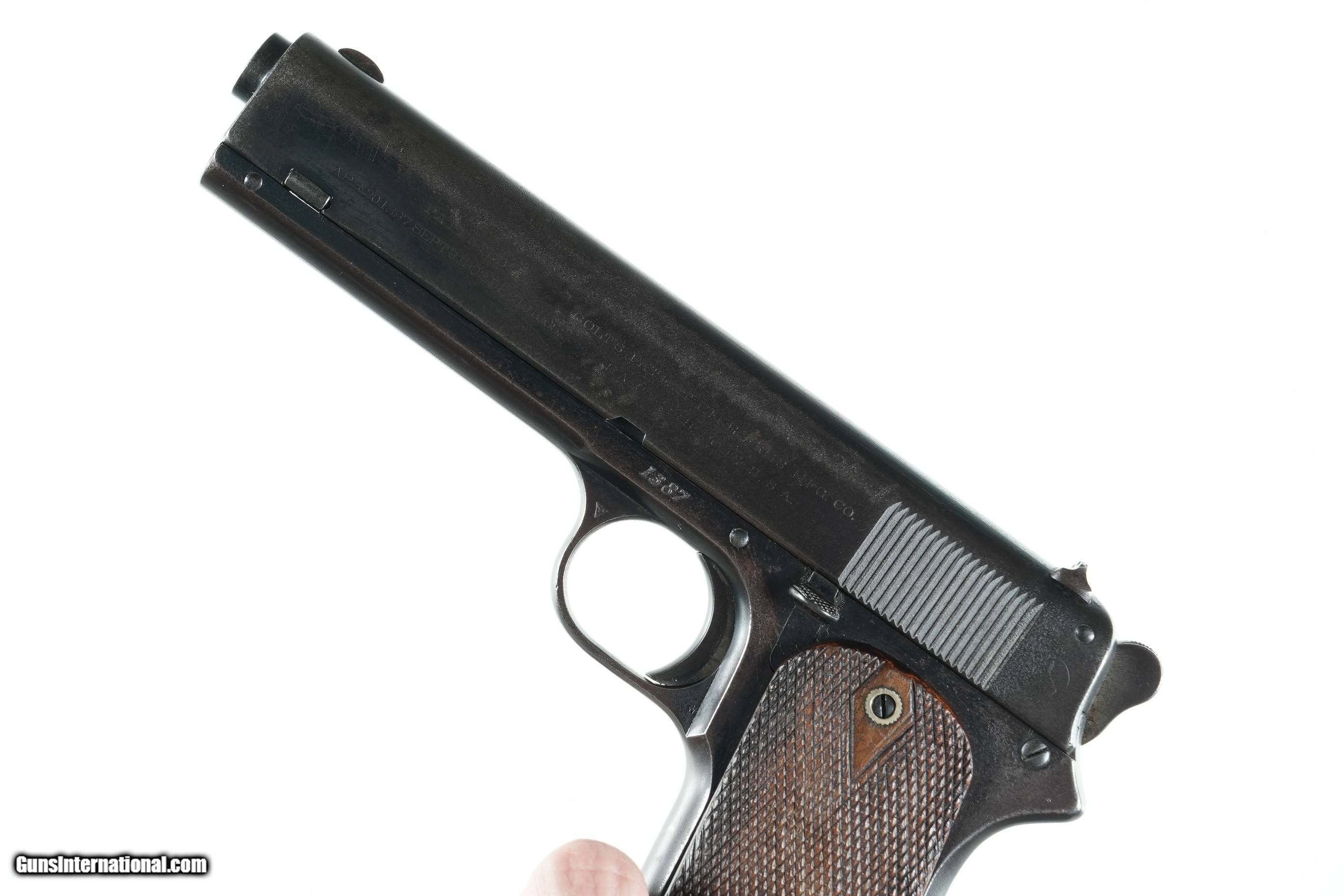 Description: Colt Model 1905 Military .45 Acp with checkered diamond pattern walnut grips. Blue finish. Mfd, 1906. Condition, Very good overall with 20% finish in protected areas. Excellent bore. Crisp markings and legends. Grips are very fine. Magazine is contemporary. Mechanically fine • Free Shipping, No Credit Card Fees. • Lay-a-way available for this firearm. • 1/3 Down, a 1/3 in 30 Days, 1/3 in 60 Days. SOLD Curio/Relic: Yes Manufacturer: Colt Model: 1905 Serial Number: 1387 Barrel Length: 5 |