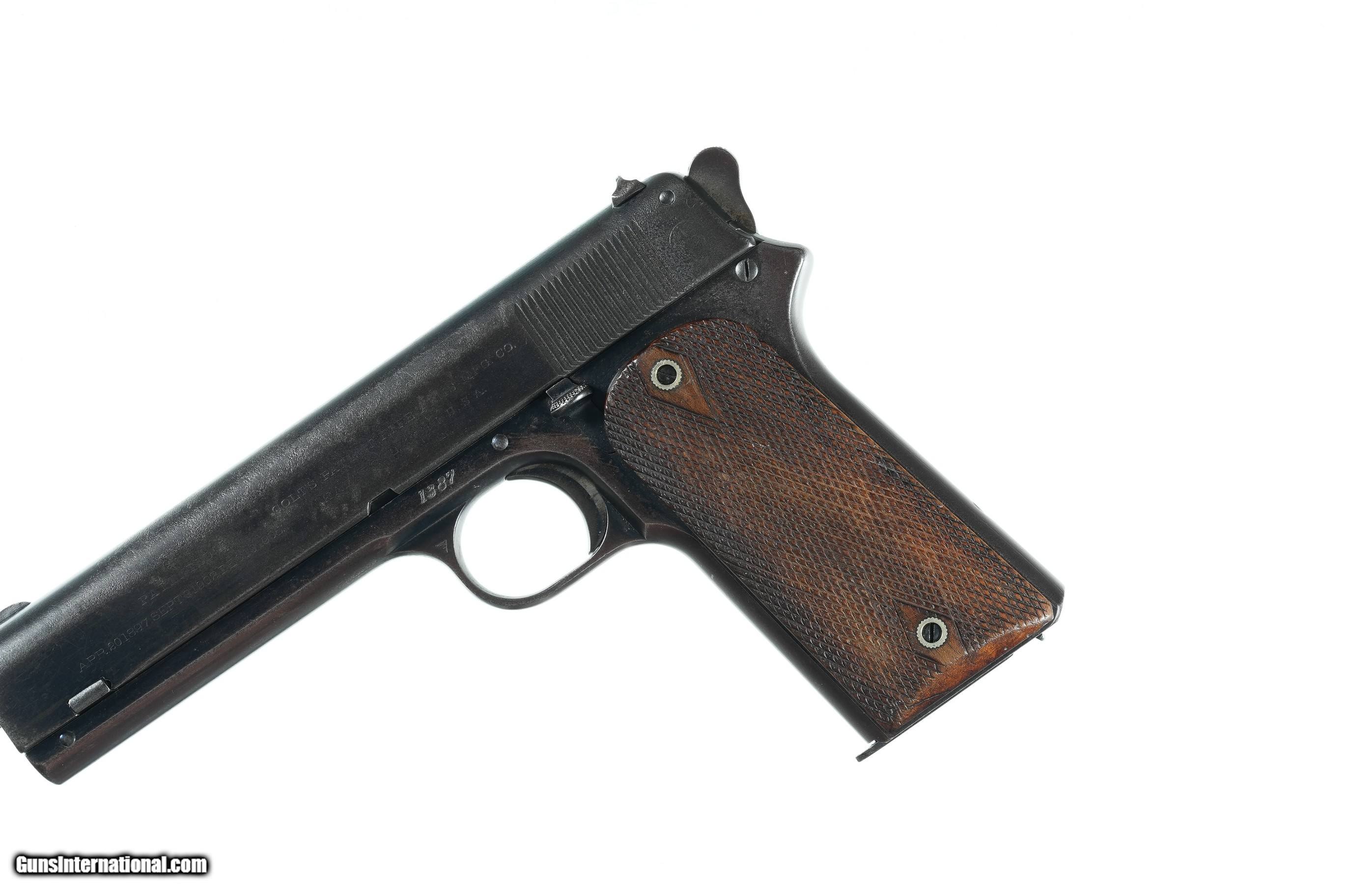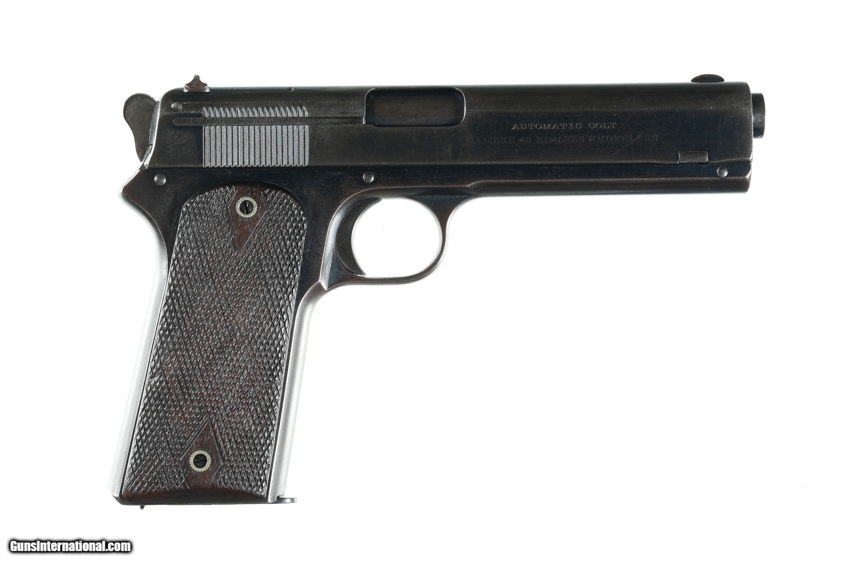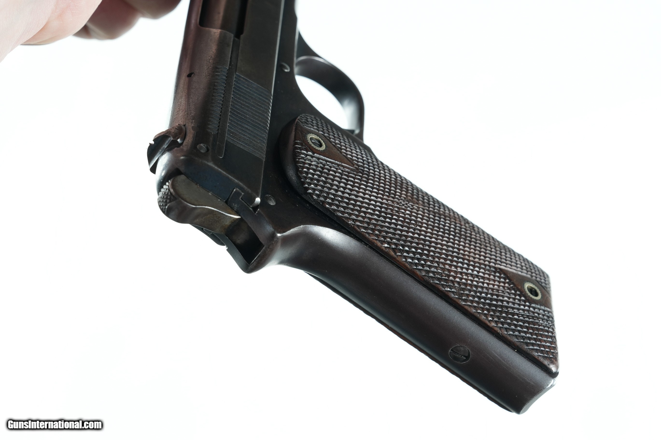 Description: Colt Model 1905 Military .45 Acp with checkered diamond pattern walnut grips. Blue finish. Mfd, 1906. Condition, Very good overall with 20% finish in protected areas. Excellent bore. Crisp markings and legends. Grips are very fine. Magazine is contemporary. Mechanically fine • Free Shipping, No Credit Card Fees. • Lay-a-way available for this firearm. • 1/3 Down, a 1/3 in 30 Days, 1/3 in 60 Days. SOLD Curio/Relic: Yes Manufacturer: Colt Model: 1905 Serial Number: 1387 Barrel Length: 5 |