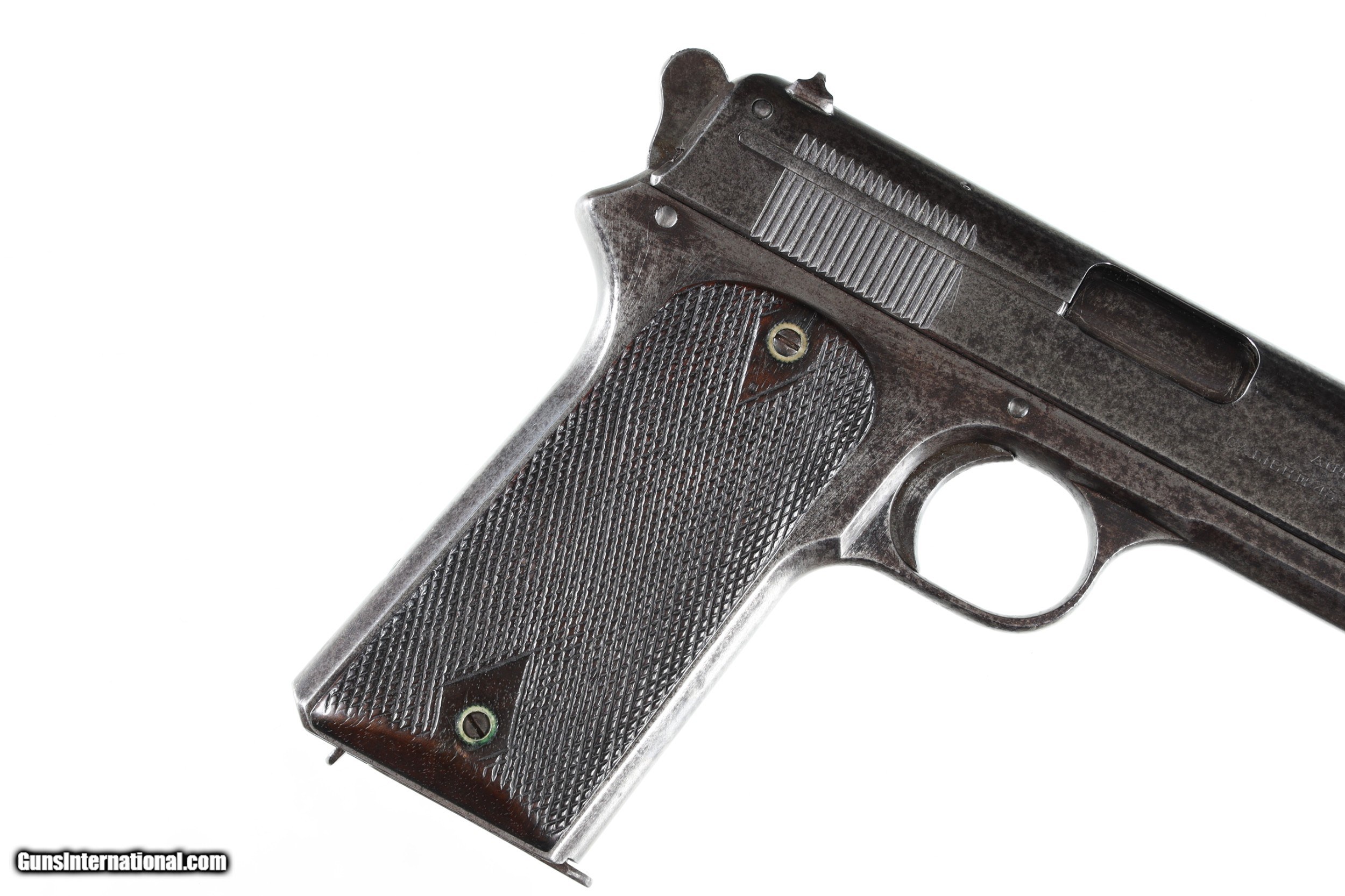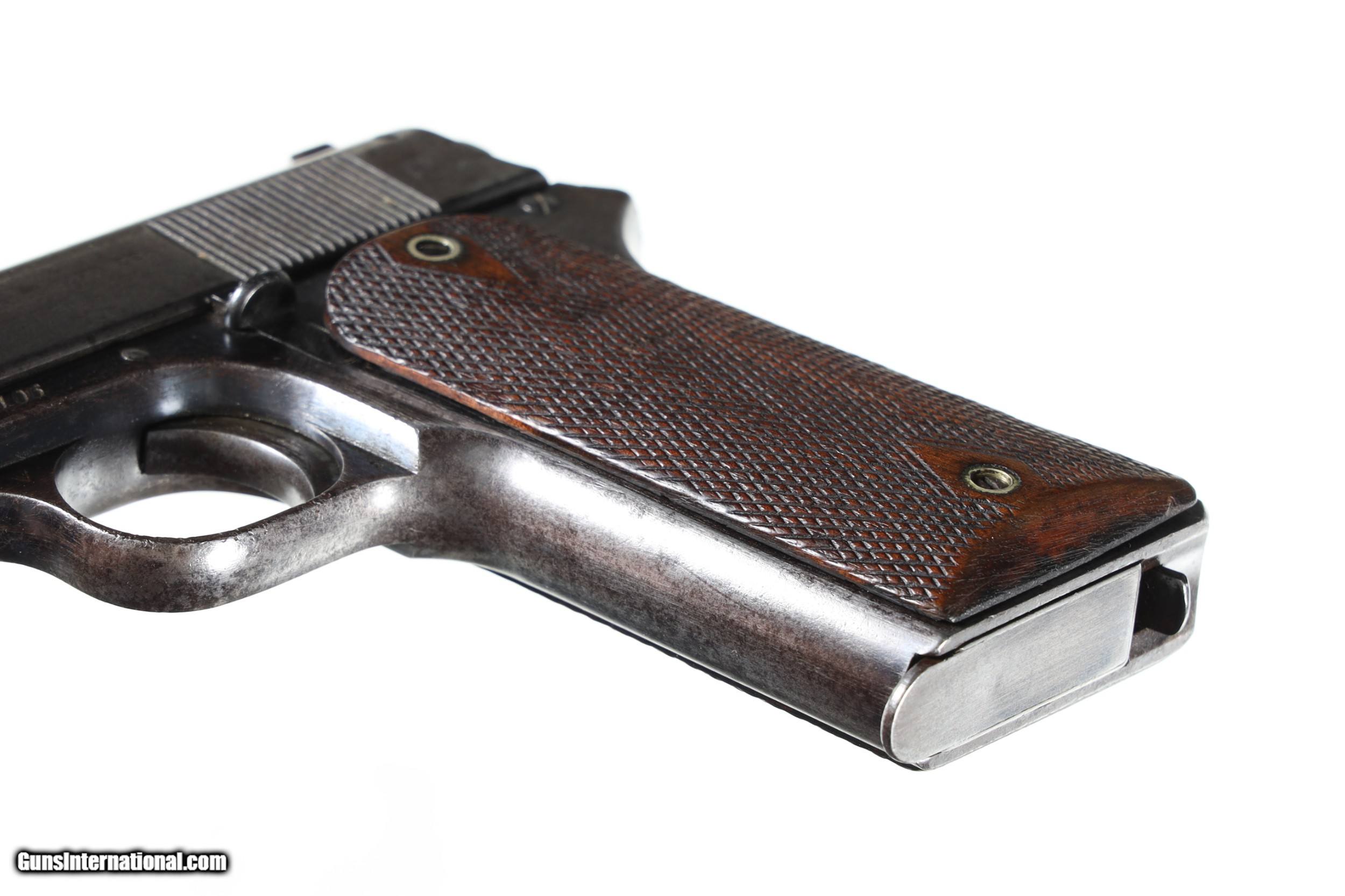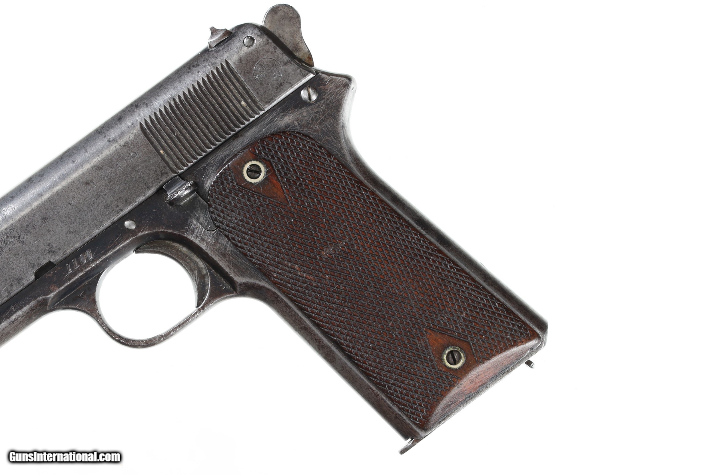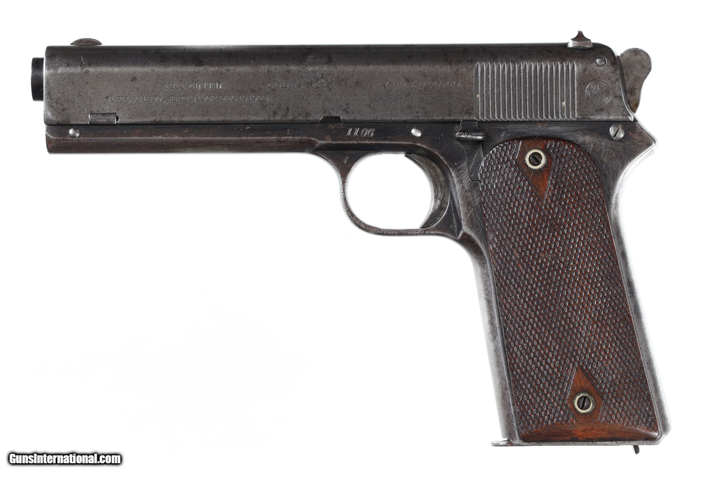Description: Good overall condition, traces of original finish in protected areas. Included factory letter confirms the current configuration of this pistol when shipped to Pacific Hardware & Steel Company in San Francisco, California on August 3, 1906 in a 5 gun shipment. • Free Shipping, No Credit Card Fees. • Lay-a-way available for this firearm. • 1/3 Down, a 1/3 in 30 Days 1/3 in 60 Days. SOLD Curio/Relic: Yes Manufacturer: Colt Model: 1905 Serial Number: 1106 Barrel Length: 5 |