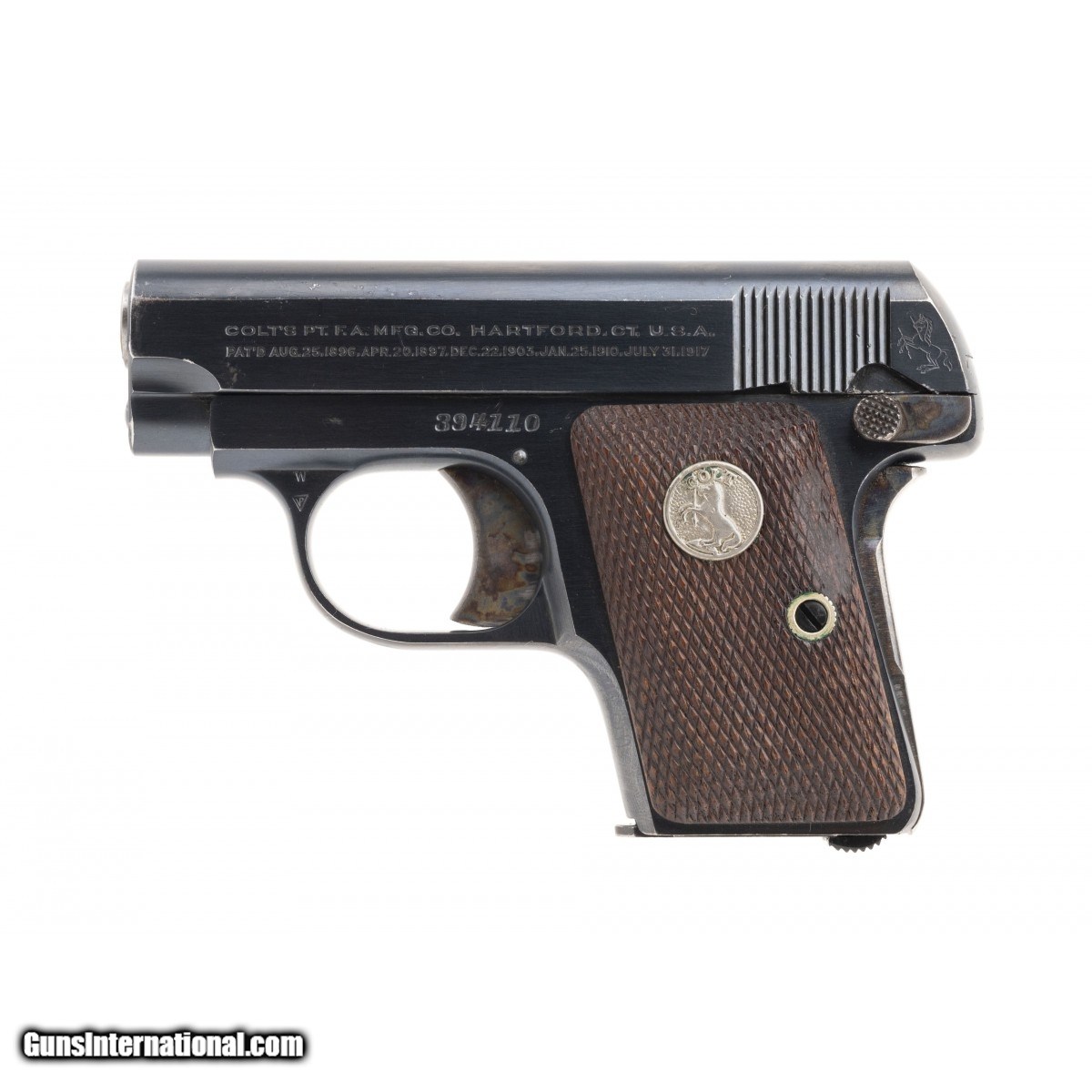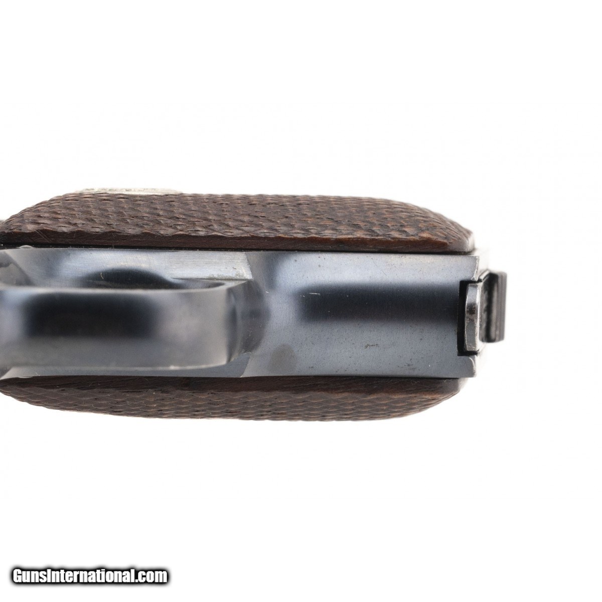 Description: " Pre-war pocket auto made in 1932. Has about 95% original blue with bright case colors. Grips are good with some wear. Bore and action are excellent. SOLD |