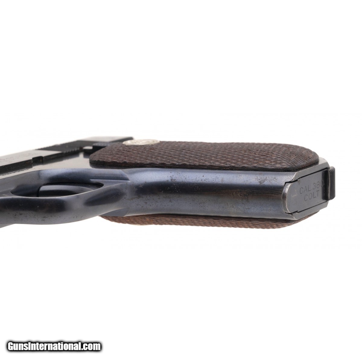 Made in 1932. .380 with a 3.75"" barrel. Bore is bright with strong rifling. Colt Hammerless pistol. Finish is in good condition with areas beginning to thin on the left side of the pistol. Original Colt checkered grips are in good condition with expected handling wear. Action functions correctly. Overall good condition.