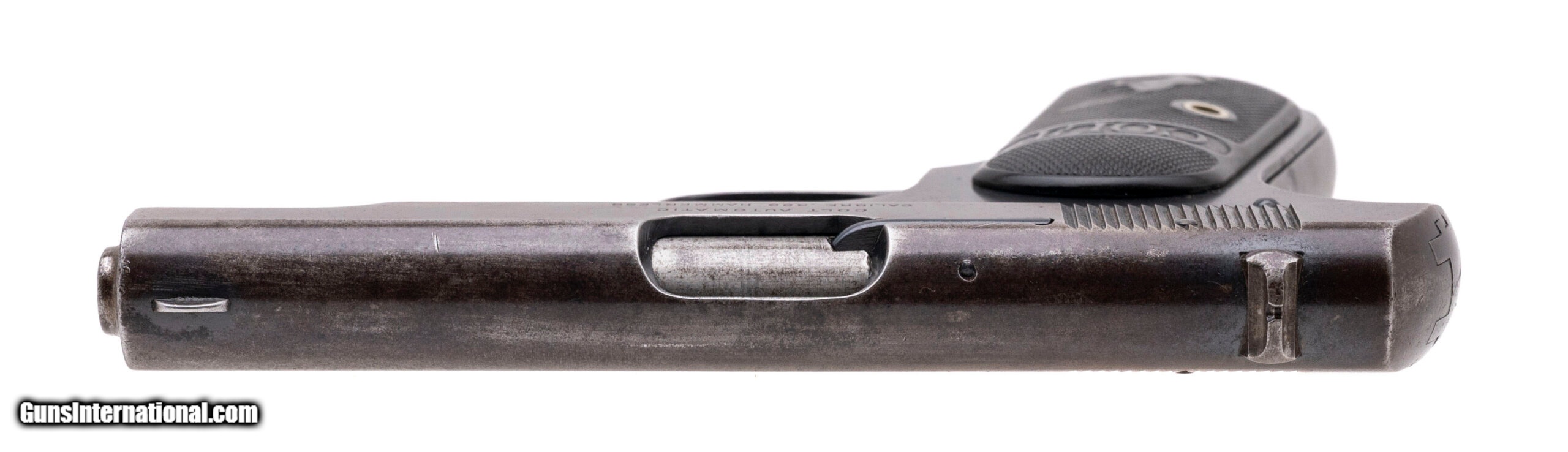 Description: "SN: 41991. Made in 1921, .380 ACP with a 3.75"" barrel. Bore is good, dark with strong rifling. Pocket hammerless auto in popular .380 caliber. Has about 40% blue remaining. The slide has mostly patina. The black rubber grips are very good. A good shooter or project gun. SOLD |