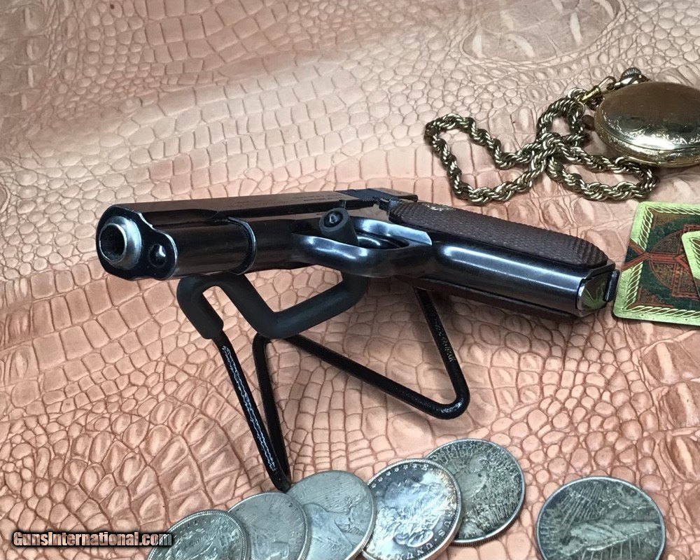 Description: 1908 Colt Pocket Hammerless, Cal. 380 ACP. S #49714. Bbl. 3 3/4". Semi circular front sight. U-notch rear sight. Blue finish. Checkered walnut grips w/ Rampant Colt medallions. 1921 mfg. date. MAGS: 1-7 rd. marked "CAL 380 & "COLT". CONDTION: grips show light handling wear. Metal retains 95% or better original blue w/ some minor thinning on rear grip strap, light high edge wear near muzzle & scattered light handling marks. Bore shows strong rifling with good bore. The design of this Colt model 1908 Hammerless is amazing, thin, light and fits your pocket perfectly. Popular on both sides of the law during US gangster era of the 1920-30s. Every serious Colt collection needs one of these fine pistols. Add 3% if paying with credit card. Free shipping for US Veterans and LEO. God Bless America from a proud American, and a Viet Nam Vet , thankful for our freedoms.. paid for by the Blood ,Sweat and Tears of our brave men and women in uniform. Ten Below Firearms is a Veteran owned and operated business. We specialize in out of production models of high quality firearms. We love to ship! We ship to all states where legal, just give us a call! Handguns normally ship for $35 and Long guns for $45 up to $75 for extra length long guns. That's 2-3 day USPS Priority shipping, Delivery conformation and with tracking number. Optional Postal insurance is additional $1.70 per $100 and highly recommended. We are OPEN BY APPOINTMENT ONLY FOR IN PERSON VISITS, We trade, sometimes. Layaway:If needed we offer a 60 day layaway program. Terms, 1/3 of purchase price down, 1/3 due in 30 days, and the final third to include card fees and shipping due at 60 days. Funds are non transferable and non refundable .Layaway is not available on negotiated prices. SOLD Curio/Relic: Yes Manufacturer: Colt Model: 1908 Pocket Hammerless Serial Number: 49714 Barrel Length: 3.7 inch Condition: Excellent Metal Condition: Excellent Wood Condition: Very good Bore Condition: Very good Action: Semi-auto Finish: Blued Sights: Fixed Manufacture Date: 1921 Item Location: Mn |