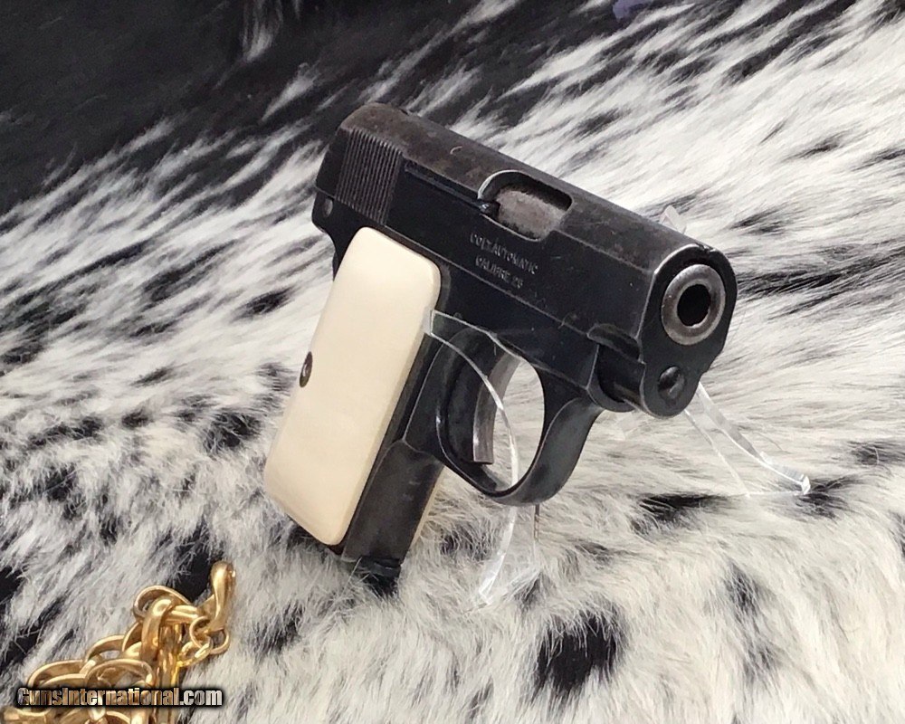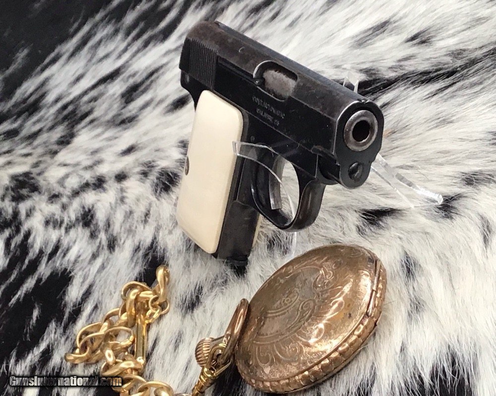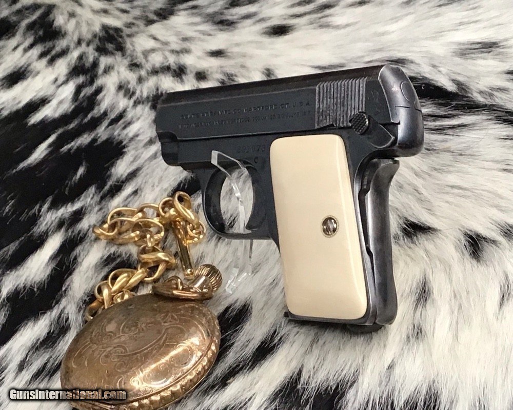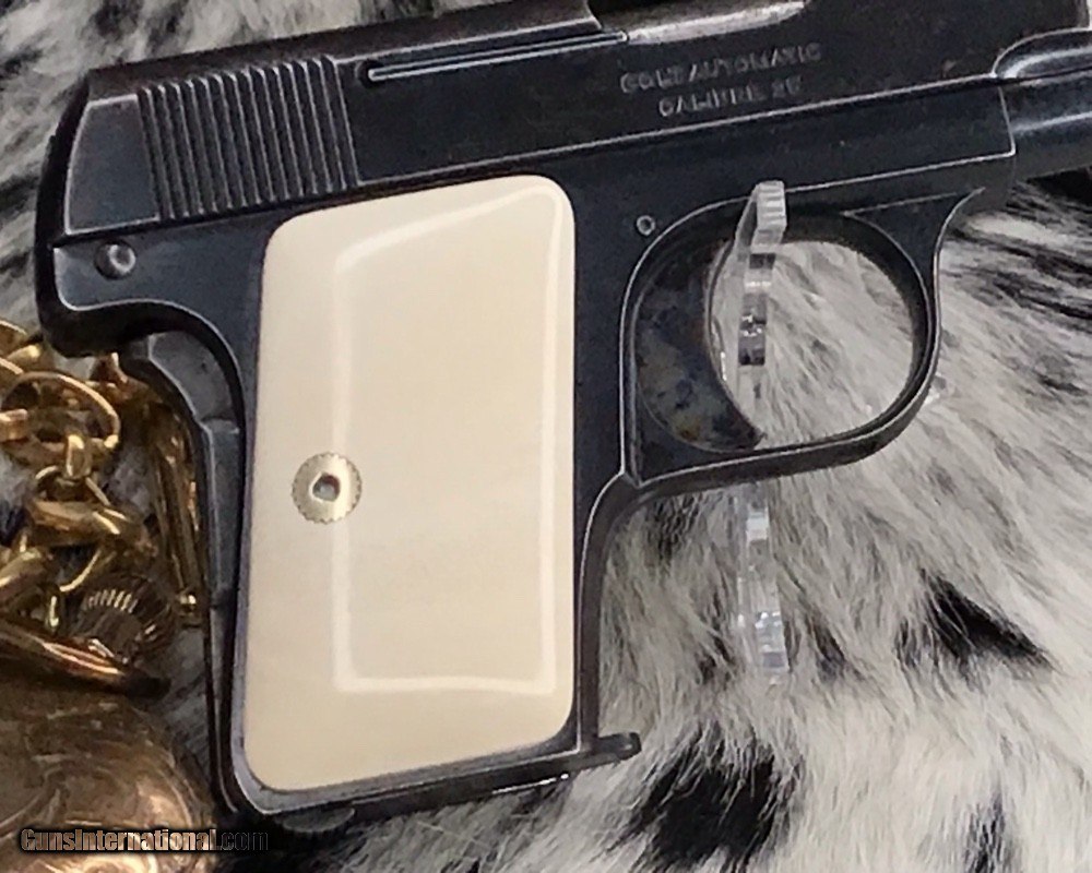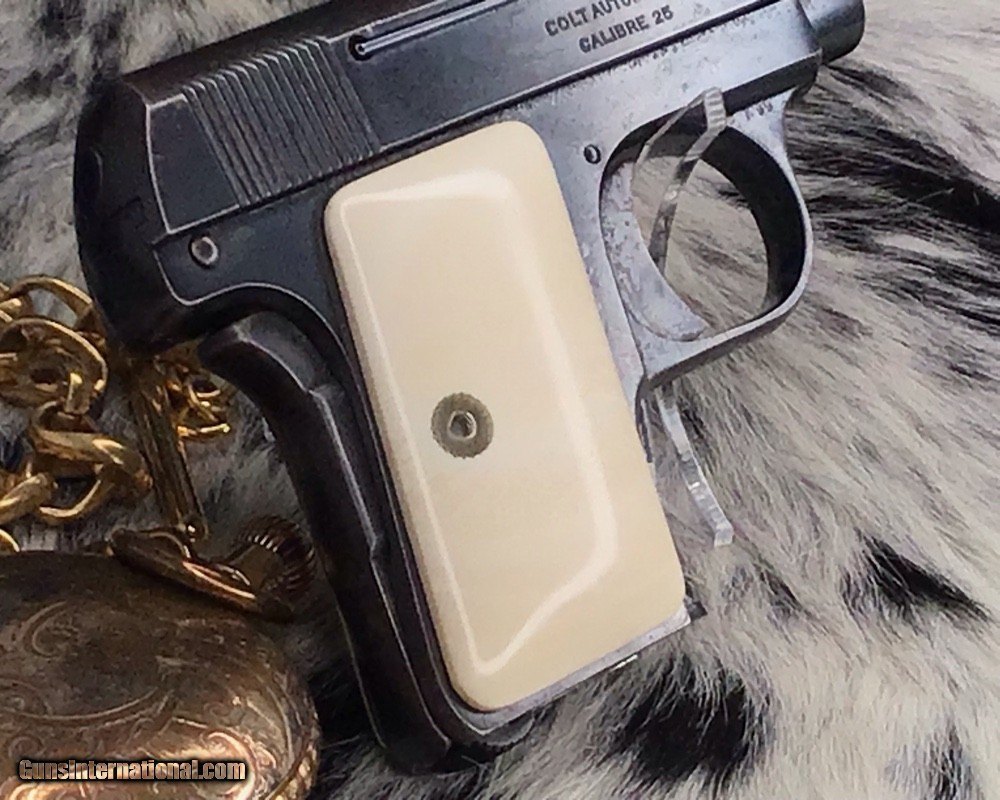 1908 Colt Pocket Hammerless pistol, .25 ACP, Made in 1921, Ivory Grips