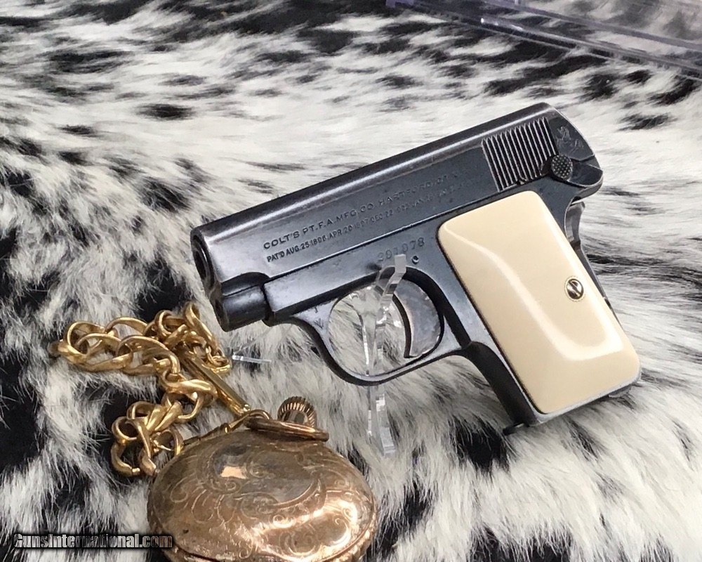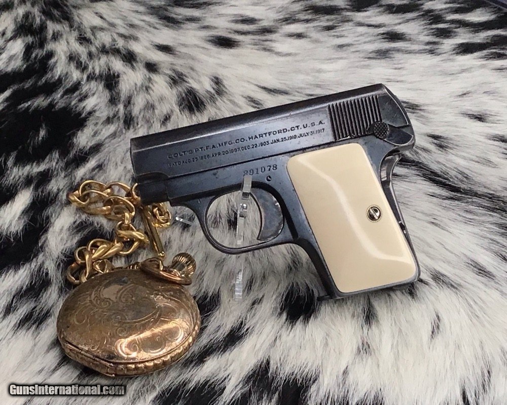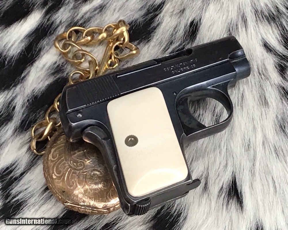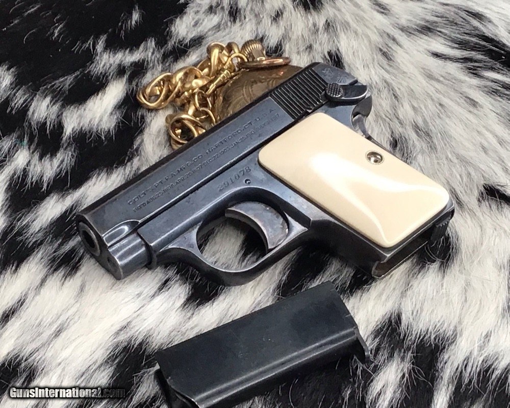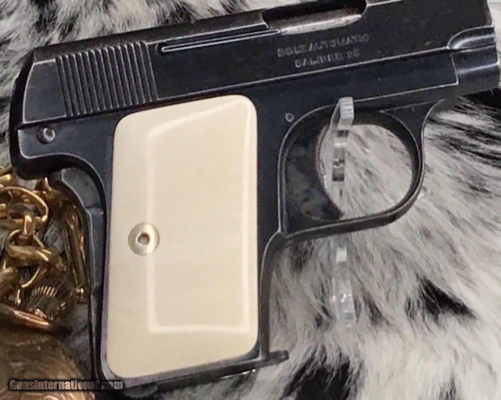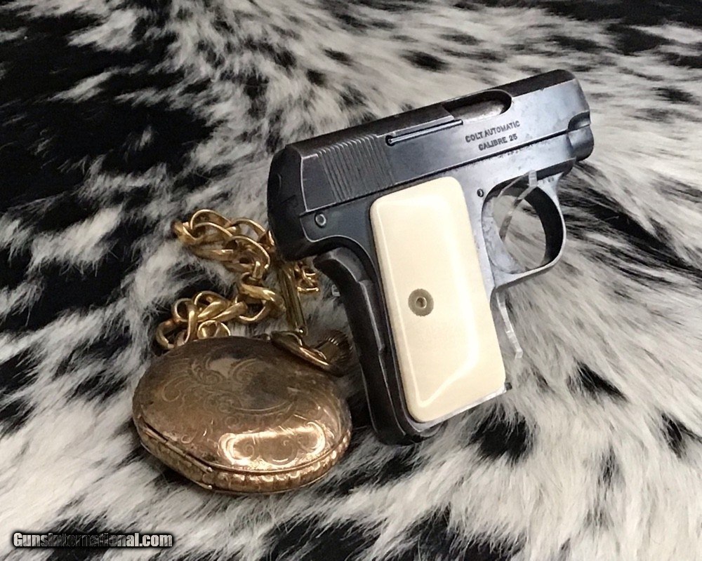 1908 Colt Pocket Hammerless pistol, .25 ACP, Made in 1921, Ivory Grips