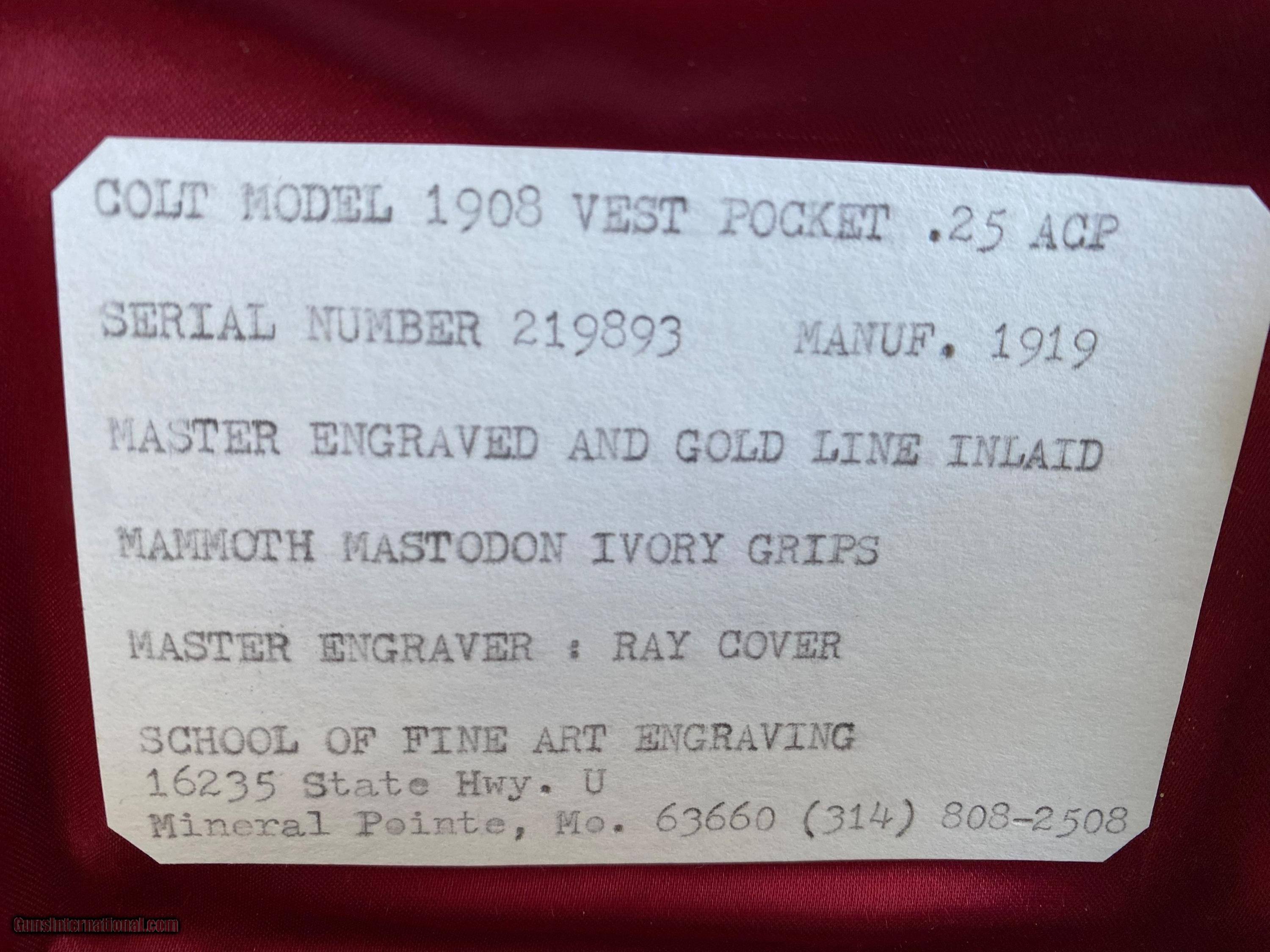 1908 Colt Vest Pocket .25, Gold Inlayed/ Master Engraved by Ray Cover
