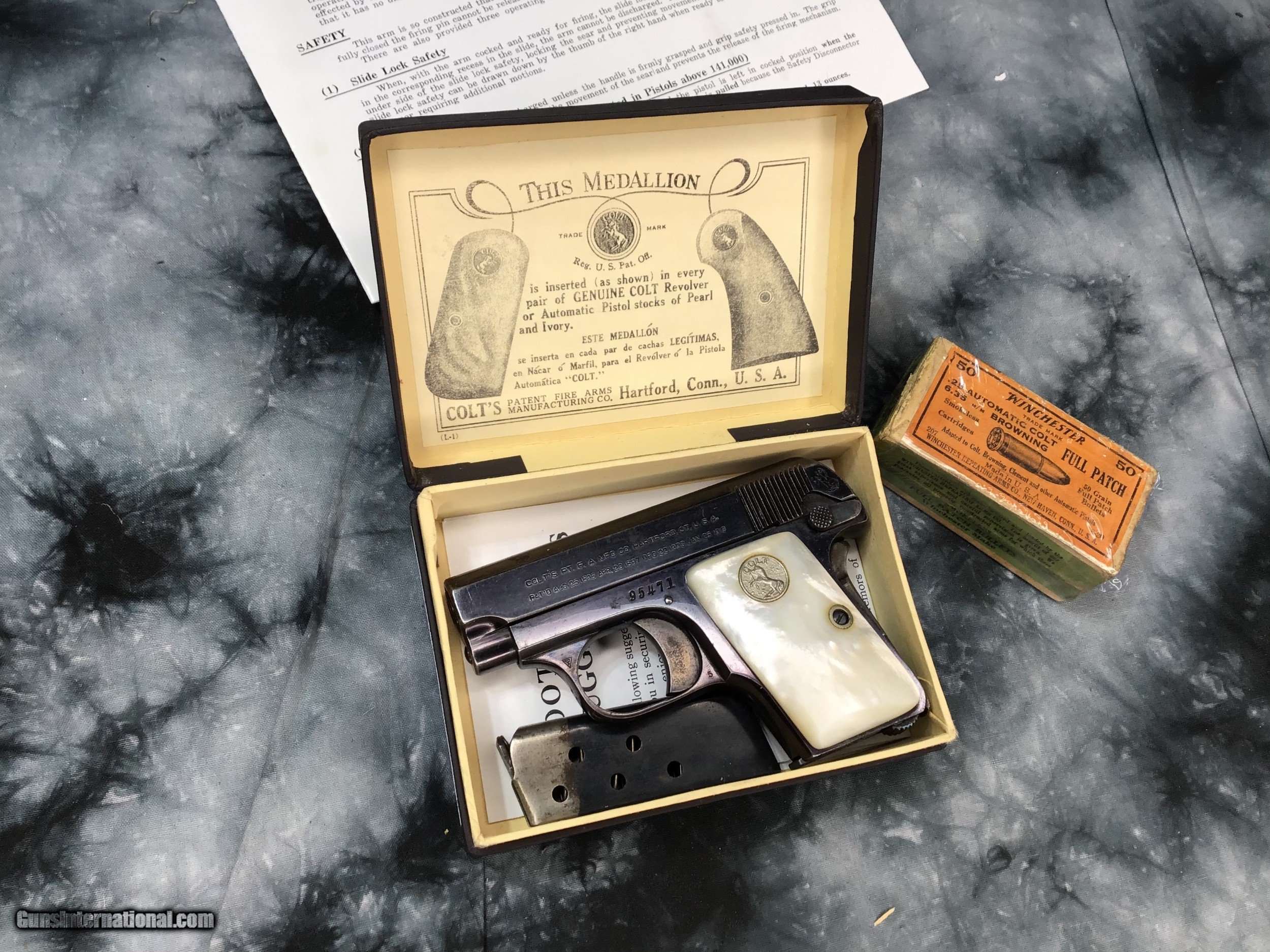 1913 Mfg. M1908 Hammerless .25 Automatic W/MOP Grips, Boxed, 2 mags, Trades Welcome!