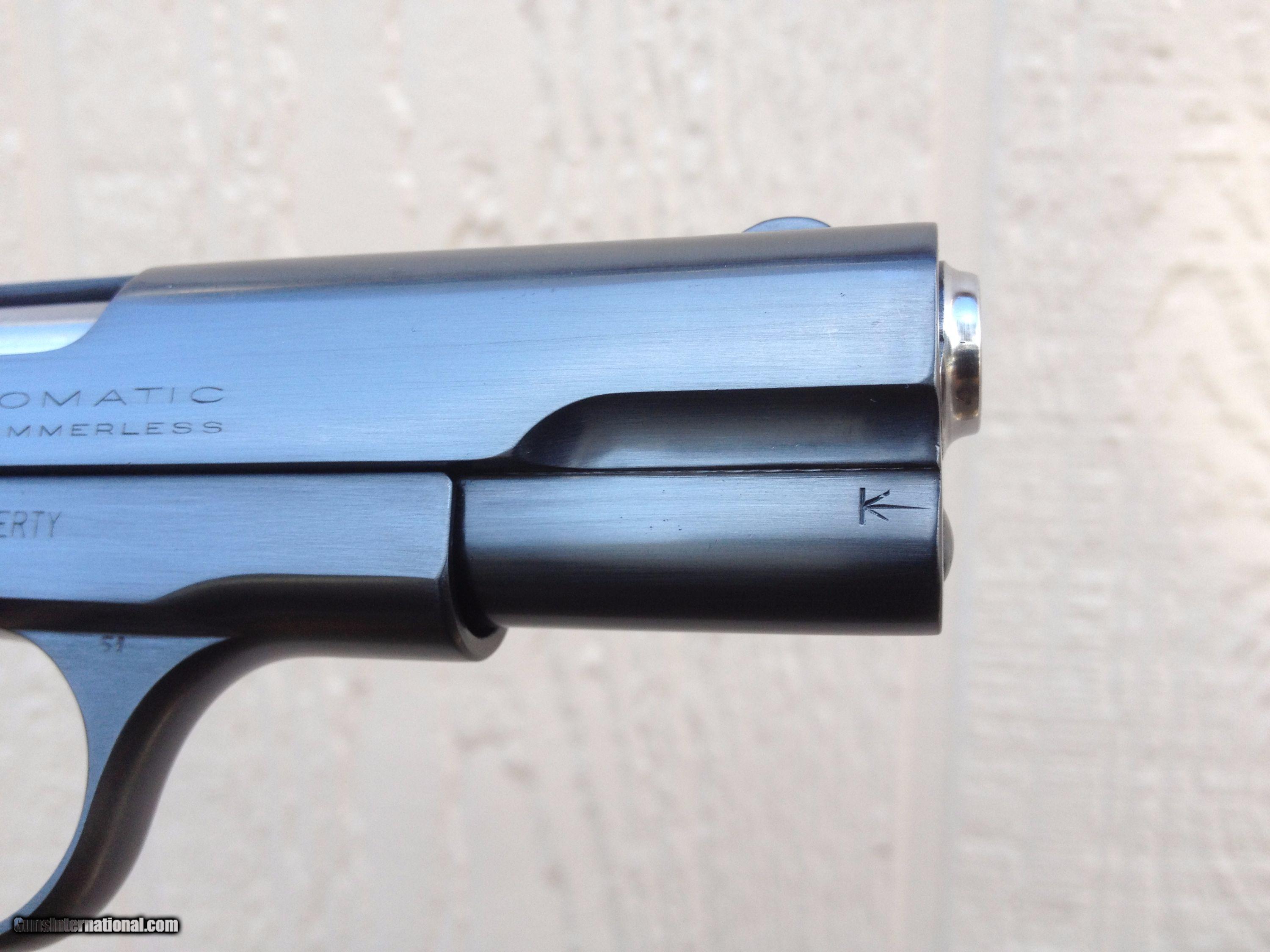 Description: Available for your consideration here is an beautiful 1932 Colt Model 1908 380 auto pocket hammerless. The gun has a nearly flawless blue finish.. 99% condition. Every part of the gun is correct, and I have never found any indication of redo, but others have said it is.. the checkered wood grips are excellent originals as pictured. We have checked with colt about the US property roll mark, they said it is not in-correct, but no reason for why it is found in this era. Generic box is included as well as paperwork, brush, etc... Please let me know if you have any questions or concerns. SOLD Curio/Relic: Yes Manufacturer: Colt Model: 1908 Serial Number: 110272 Caliber Info: 380 Bore: Mint Chambers: 8 Condition: Mint Metal Condition: Mint Wood Condition: V Good Bore Condition: V Good |