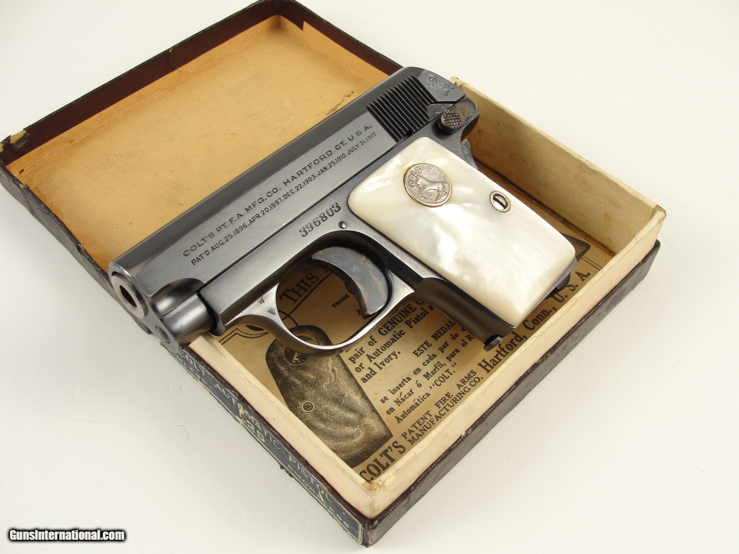 1933 Colt Vest Pocket Model 1908 Hammerless 25 ACP with Pearl Grips and Original Box
