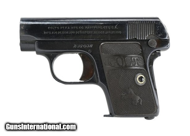 Description: Colt 1908 .25 ACP caliber pistol. 1908 Pocket hammerless made in 1920. Has been refinished. Good overall condition.