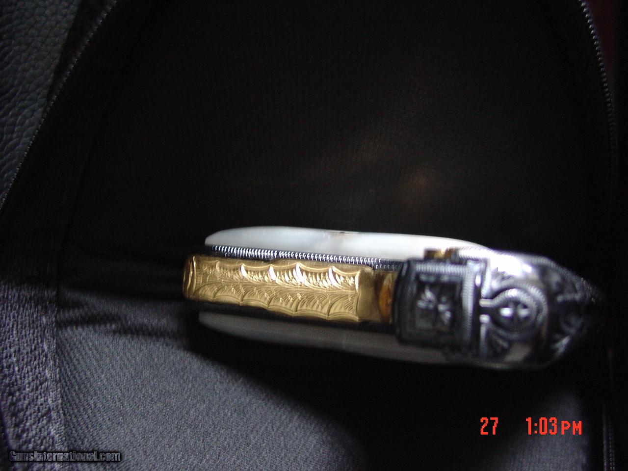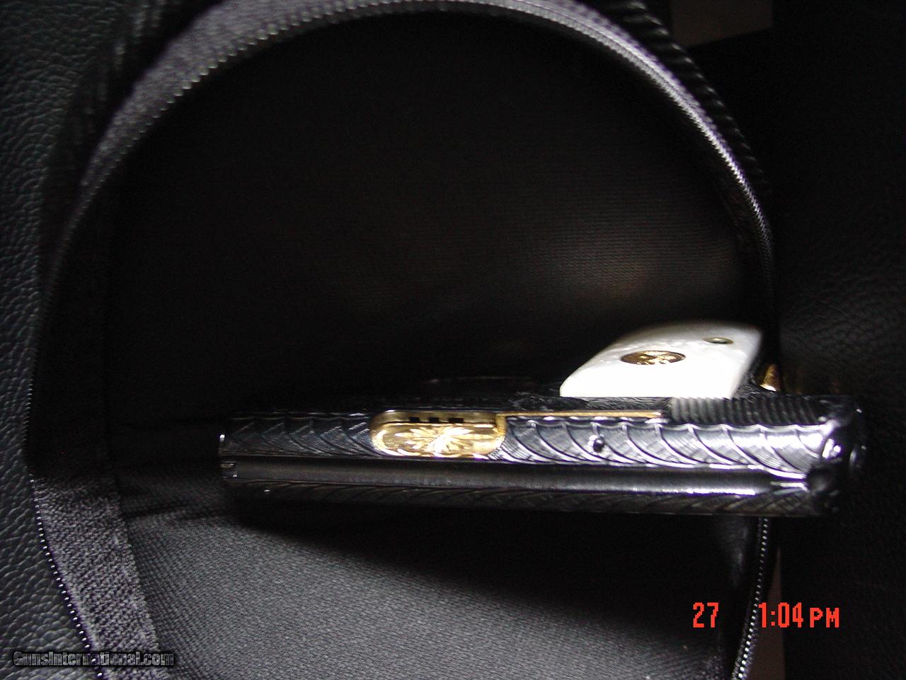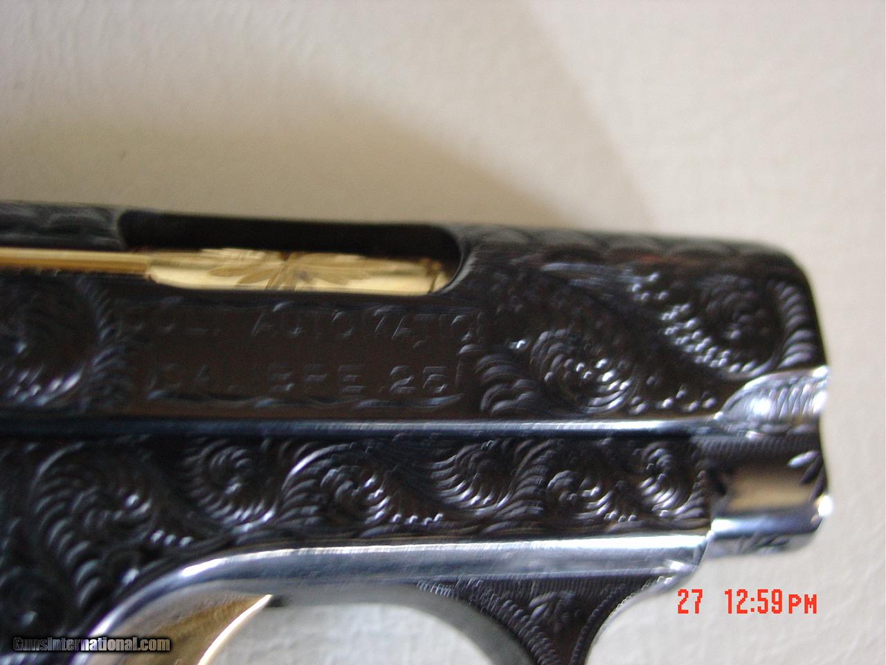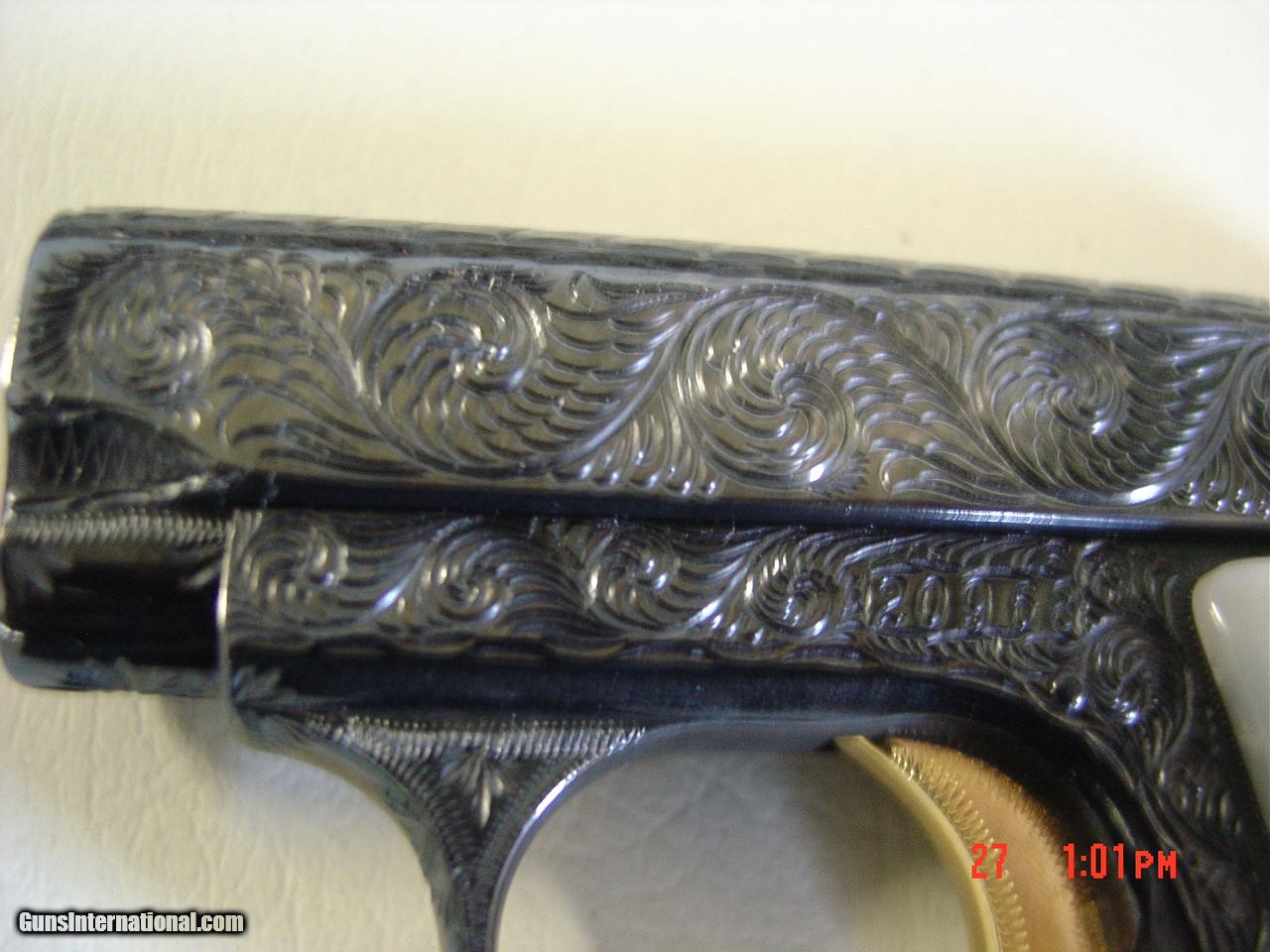 Colt 1908,25 cal,Vest Pocket,fully engraved by Flannery,refinished blue & gold,Pearlite grips,made 1908,a work of art !!