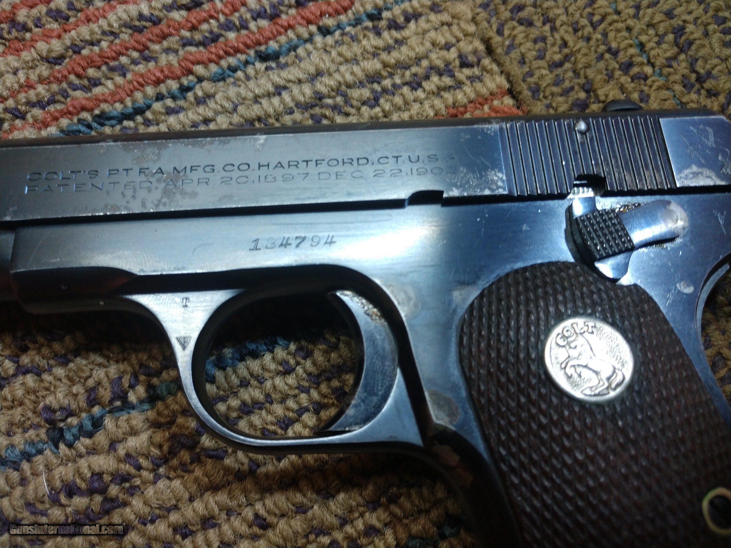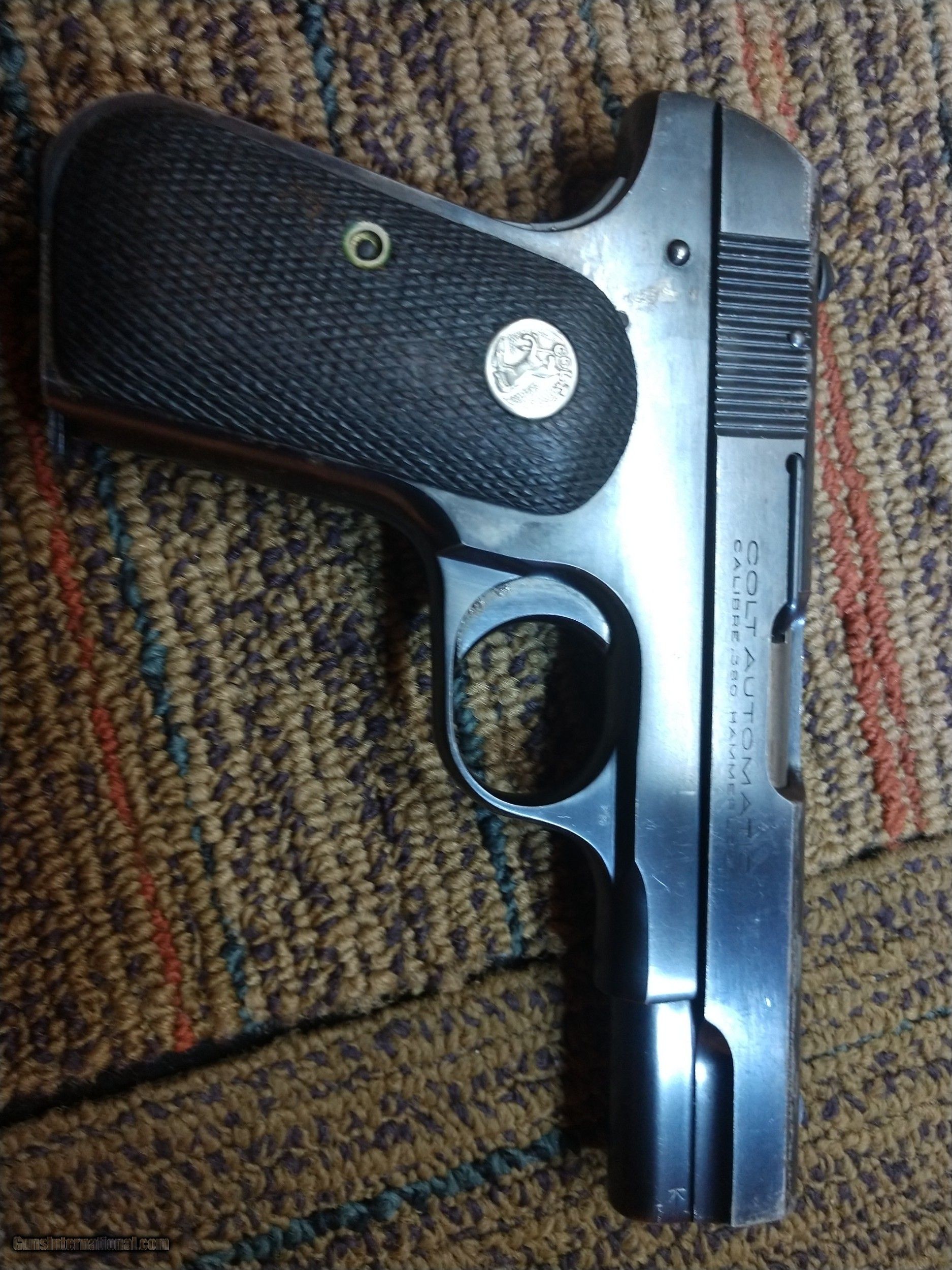 Description: Nice pistol appears to have been fired very little. It seems seems sort of chemical has removed some of the blueing in spots. Any questions call or text Jim at 352-359-5021 SOLD Curio/Relic: Yes Handgun Caliber: .380 ACP (9x17mm Browning Short) Manufacturer: Colt Model: 1908 Condition: Good |