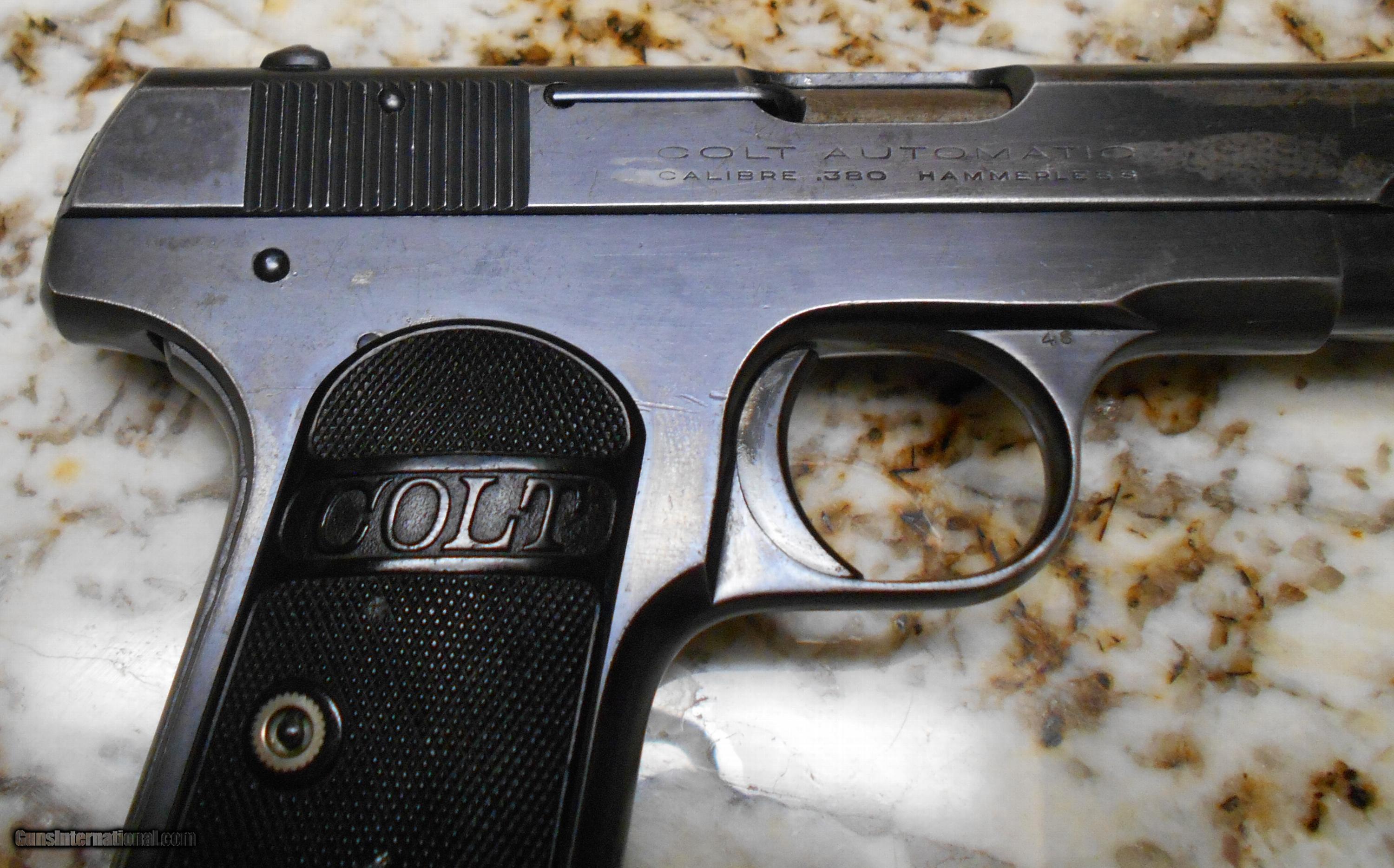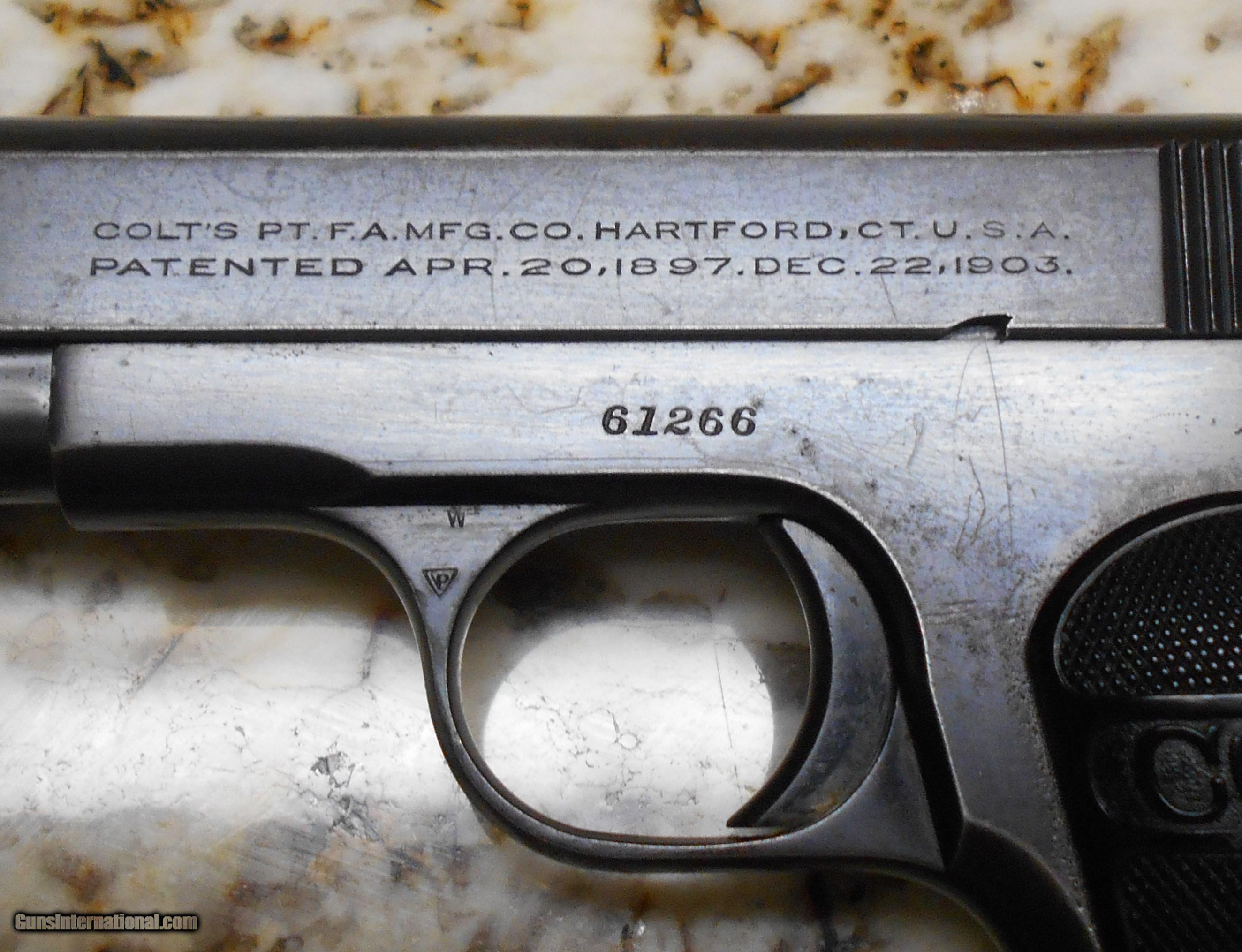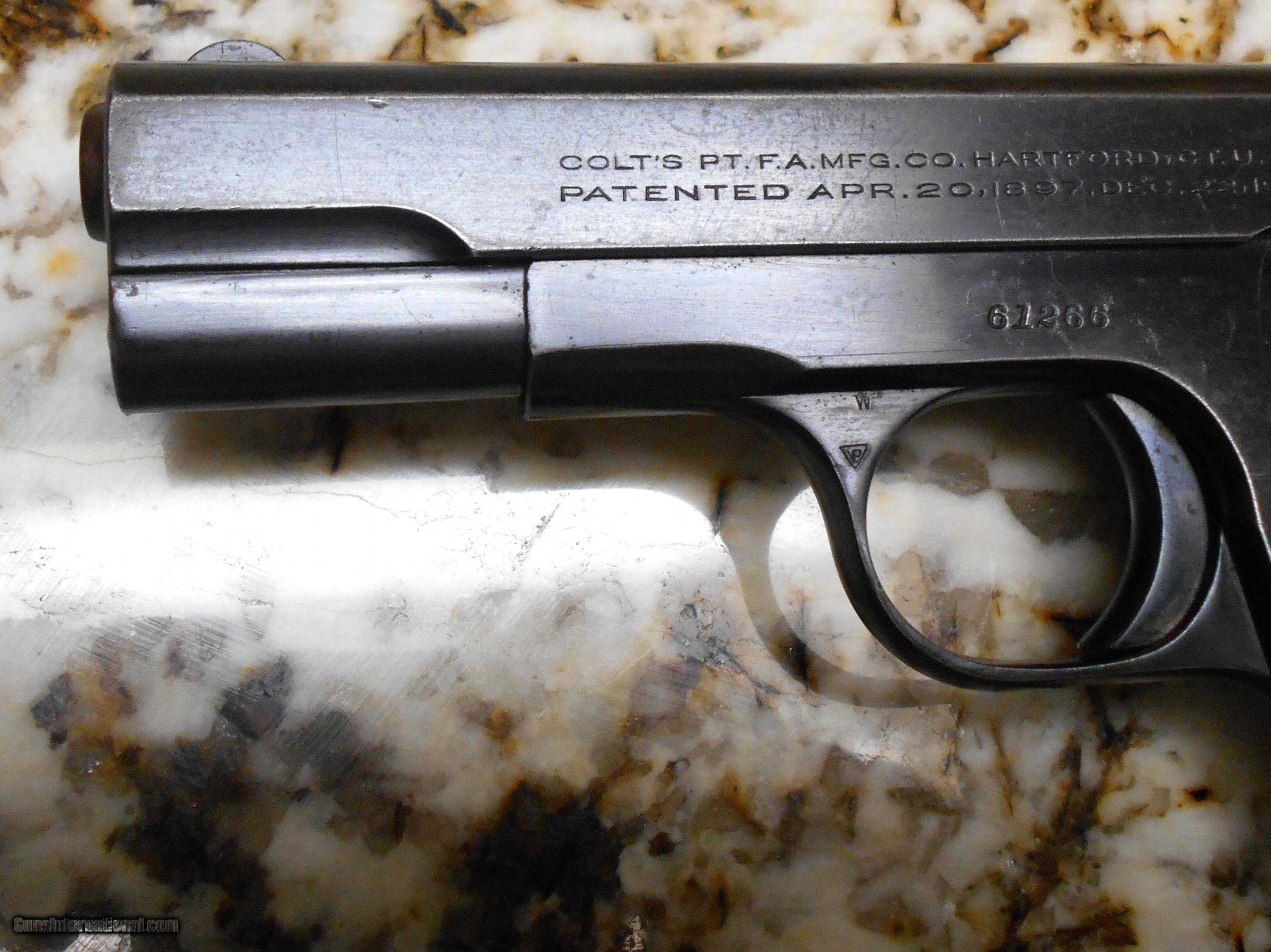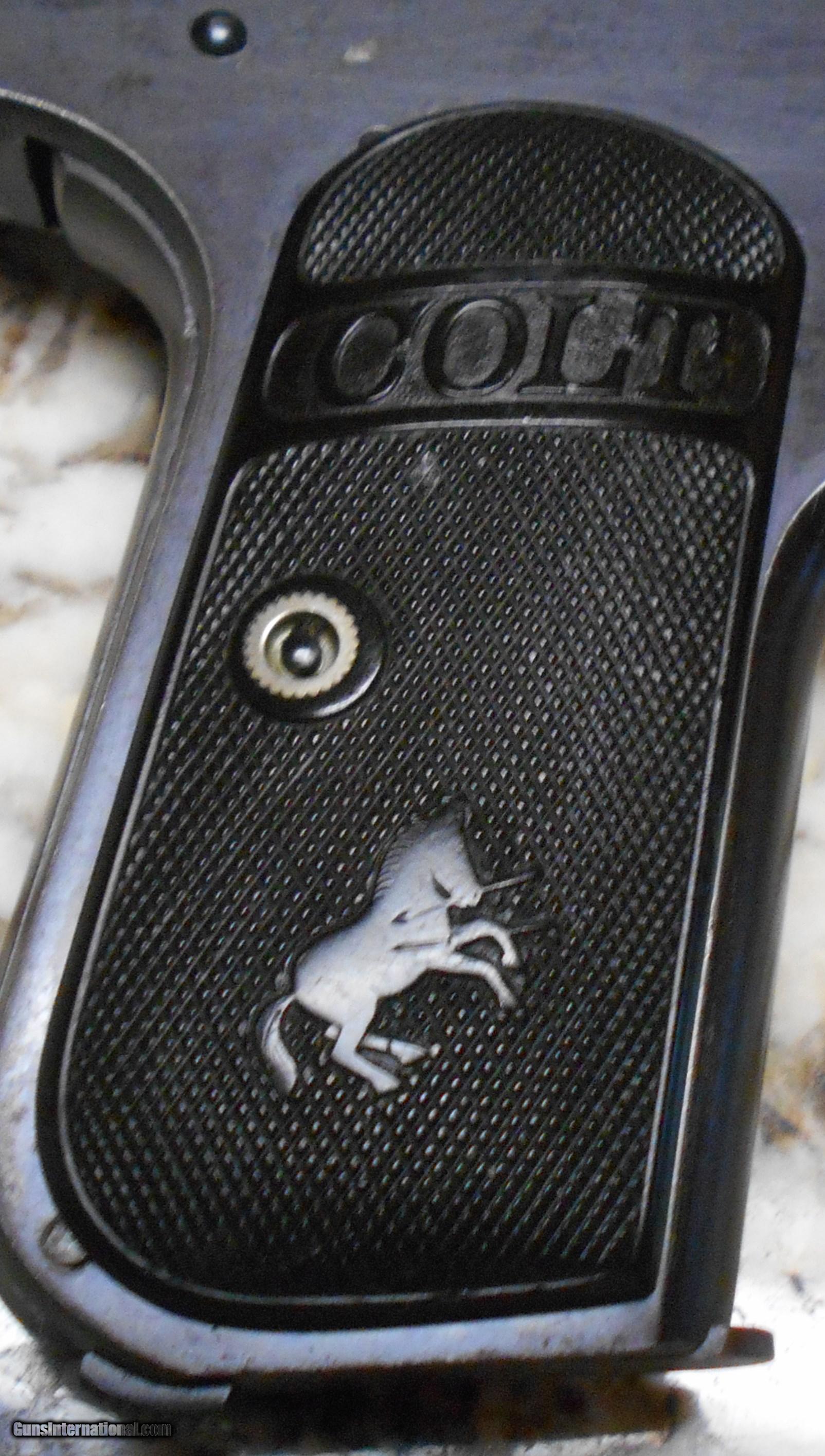 Description: Bore in the 3 3/4" barrel is bright and shiny. It will rate an eight on a one to ten scale. Action works perfectly and is tight. All markings are clear, correct, and original. Grips are excellent and fit perfectly. Magazine is a correct two-tone with a round top and crimped base. The pistol does show some wear. Pictures are accurate as to amount of wear. Year of manufacture is 1923. American Arms & Antiques item #1825 SOLD Curio/Relic: Yes |