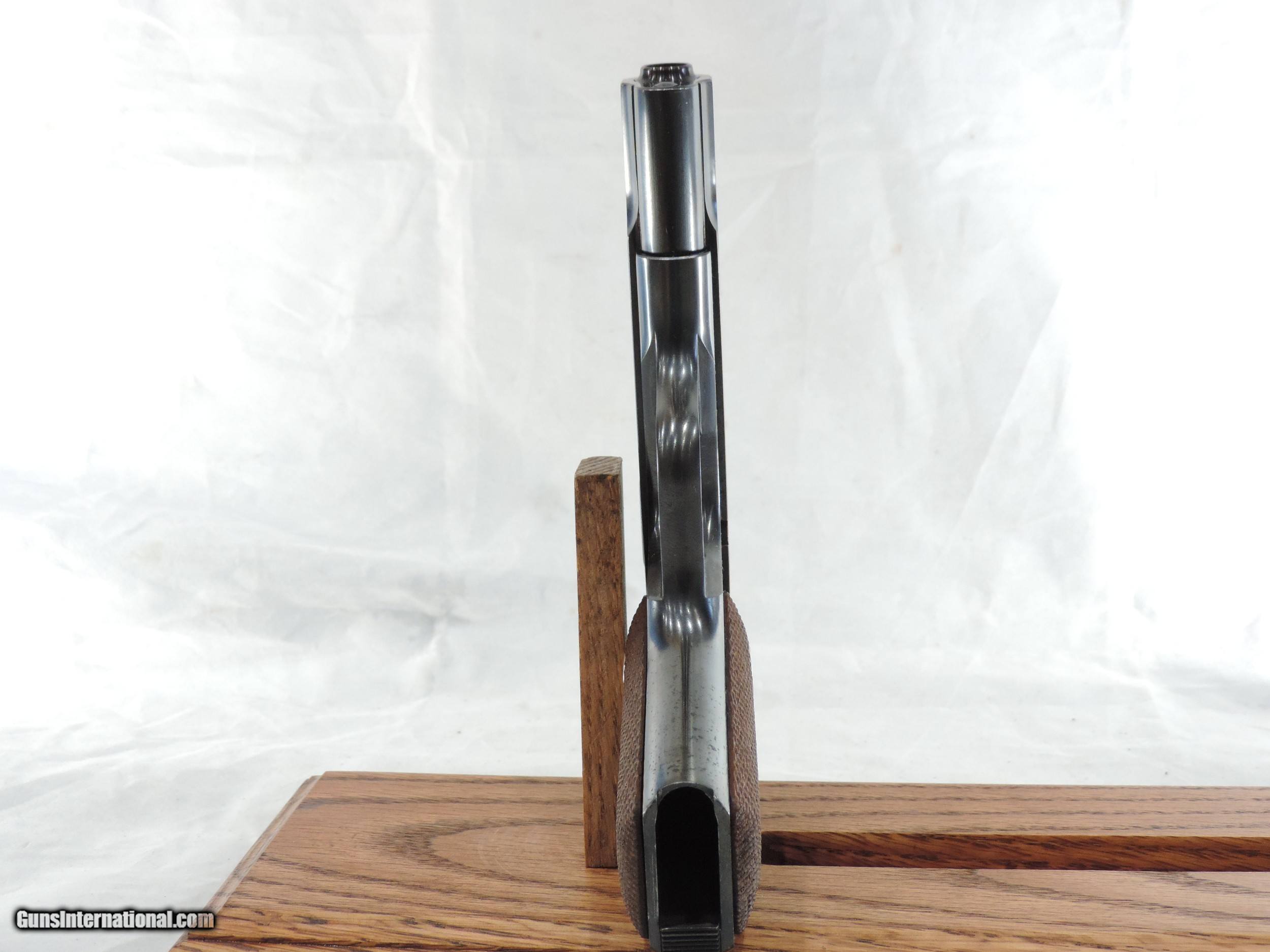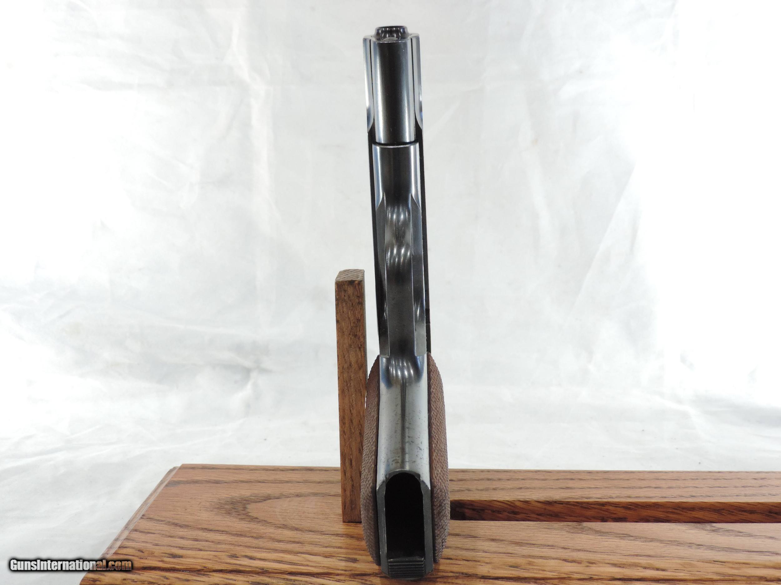 Description: INV. 8651 VIRGINAL, COLT 1908 CAL. .380ACP, SER. 57059, MFG 1922. A VIRGINAL "SAFE QUEEN" LITERALLY. RETAINING 99.99+% OF THE ORIGINAL COLT FACTORY FINISH**. A LITTLE TOUCH SHARP EDGE SIVERING ON THE LEFT FRONT OFTHE SLIDE, THAT'S IT FOR THE VERY TINY LOSS. THE GRIP STRAPS SHOW NO SIGN OF GRAYING. ALL PARTS ARE CORRECT. THE GRIPS AND THE GRIP SCREW ALSO FLAWLESS. THE FEED RAMP, SLIDE RAILS AND BOLT FACE SHOW NO INDICATION OF USE. THE BORE IS AS PRISTINE AS THE REST OF THE GUN. FACTORY BRIGHT WITH RAZOR RAZOR SHARP RIFLING. NOT A TOUCH OF FROST ANYWHERE. IT COMES WITH ONE MINT COLT .380 MAGAZINE. FOR THE VERY CRITICAL INVESTOR/COLLECTOR WHERE CONDITION IS AS IMPORTANT AS RARITY IT IS A SUPER FIND ONLY ...$2295...SHIPPED*** ***SATISFACTION GUARANTEED. **ALL MARKINGS HAVE BEEN WHITE WAXED SO THE BUYER CAN CHECK THEIR AUTHENTICITY. LIGHTER FLUID REMOVES IT QUICKLY.. WE WILL DO IT ON REQUEST. To purchase this firearm or if you want to request more information contact us at: Email ckguns[at]ymail[dot]com Phone 201-512-0002 Cell 201-575-6838 FAX 201-215-4759 We accept most major credit cards. Prices shown are Discounted 3% for Cash or Check. The buyer must be familiar with all the laws governing the purchase and the ownership of firearms in their own city and state. The Yankee Armorer, Inc is not responsible for any failure to comply with or observe these laws. The Yankee Armorer, Inc will only ship after full payment and receipt of all required documents. Shipping: Add $35.00 for handguns, $45.00 for long guns. New Jersey buyers are subject to a 7% sales tax. The Yankee Armorer, Inc offers a 3 day inspection period with full refund upon return of intact firearm and in the original condition. The Yankee Armorer, Inc offers a no interest lay away program - 25% down; 25% in 30 days; 25% in 60 days; and full payment in 90 days. Any violation of this policy is subject to restocking and forfeiture of all payments. Any variation from this policy must be agreed to in advance. Unshipped Cancelled sales are subject to a 20% restocking fee. Be advised that all firearms sold by The Yankee Armorer, Inc. or the Gun Exchange, LLC (SELLER) are sold as collector’s items. They have not been fired or tested for safety and must be examined by a license gunsmith prior to use. By purchasing any item from the (SELLER), you are agreeing to hold the (SELLER) free from any damages or lawsuits of any nature. Any item left for transfer or storage will be charged to $25.00 per month, per item from the day of its receipt. Any variation from this policy must be agreed to in advance. Store hours 10:00 am to 5:00 pm Tuesday -Saturday. It's always best to call for appointment. Store 201-512-0002, cell 201-575-6838. SOLD Handgun Caliber: .380 ACP (9x17mm Browning Short) |