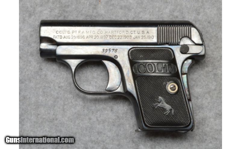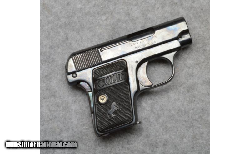 Description: Colt 1908 Hammerless chambered in .25 ACPNice grips with shiny finish. SOLD Curio/Relic: Yes Manufacturer: 1910 Caliber Info: .25 ACP Metal Condition: Very good Bore Condition: Excellent Barrels: 2 Inches Triggers: Single action Weight: 4 Ounces Sights: Fixed sights Item Location: Tualatin, OR |