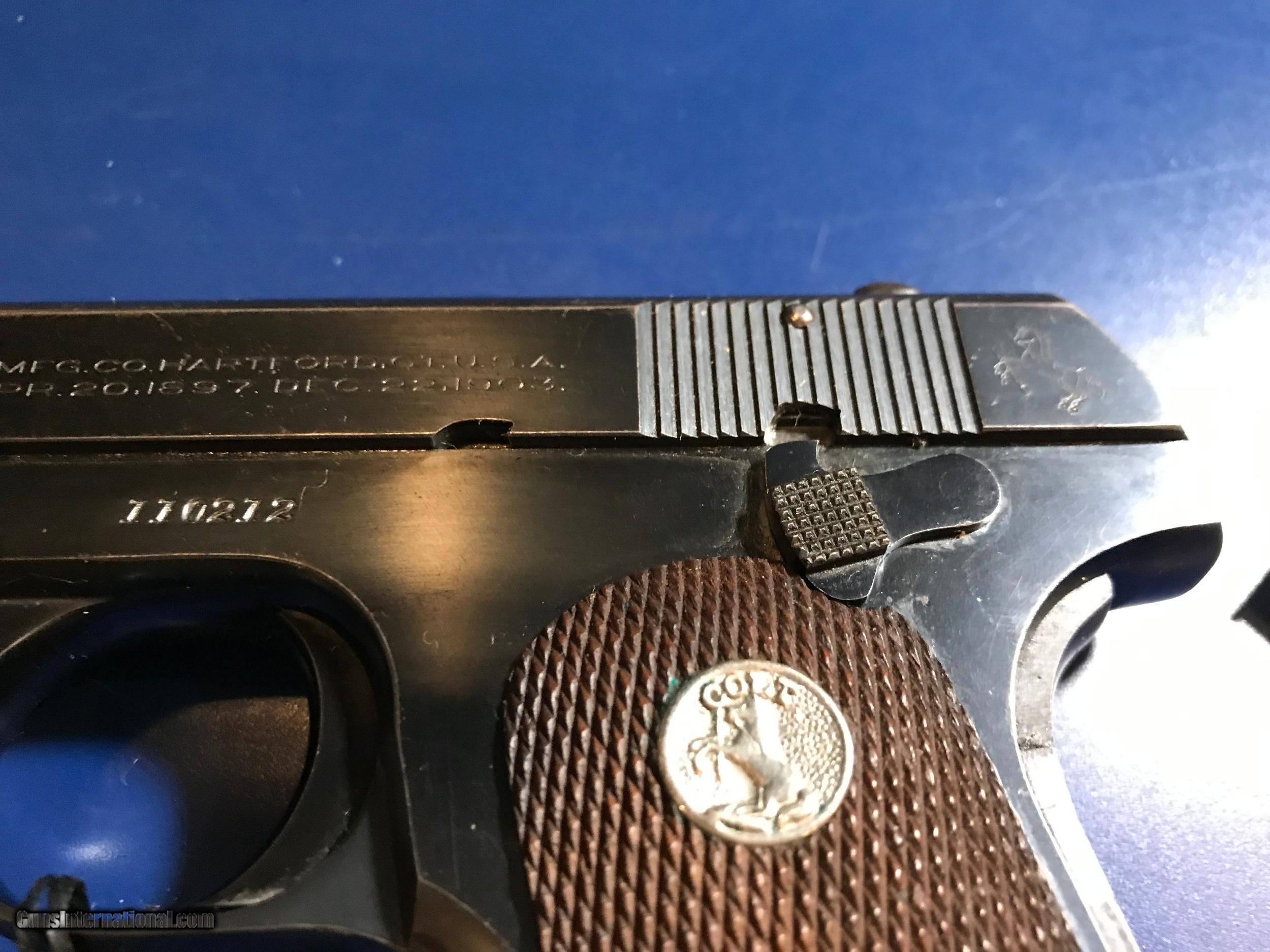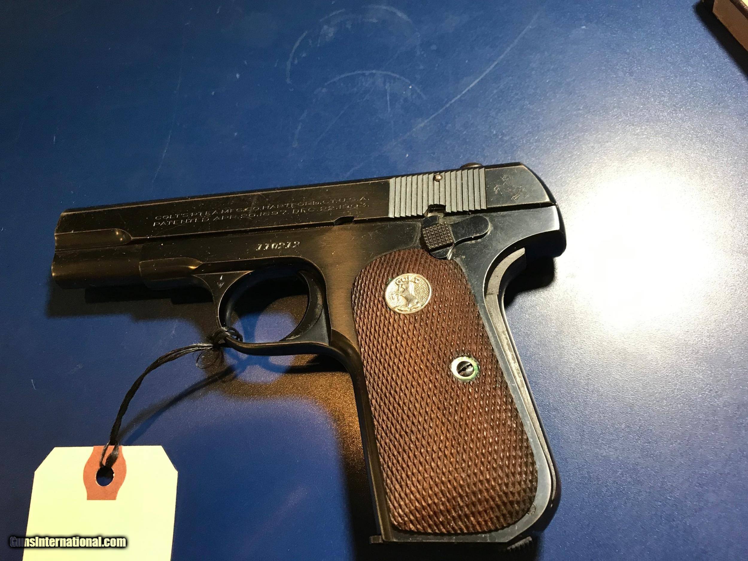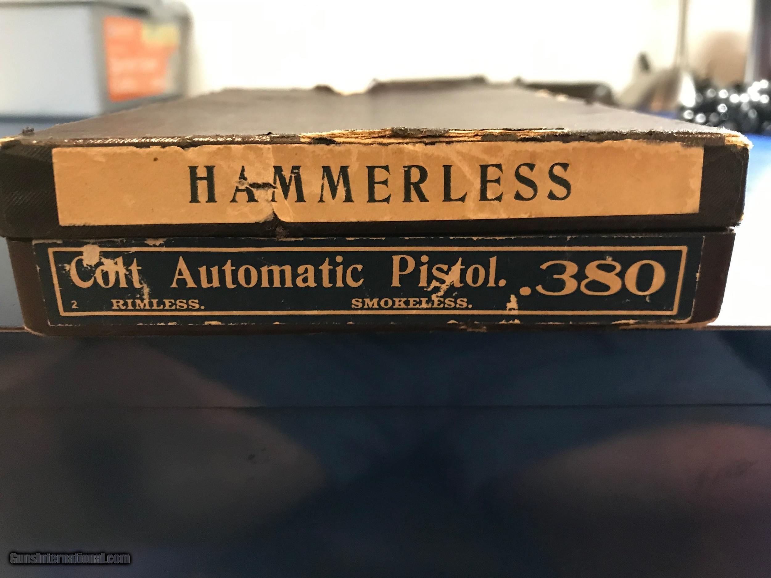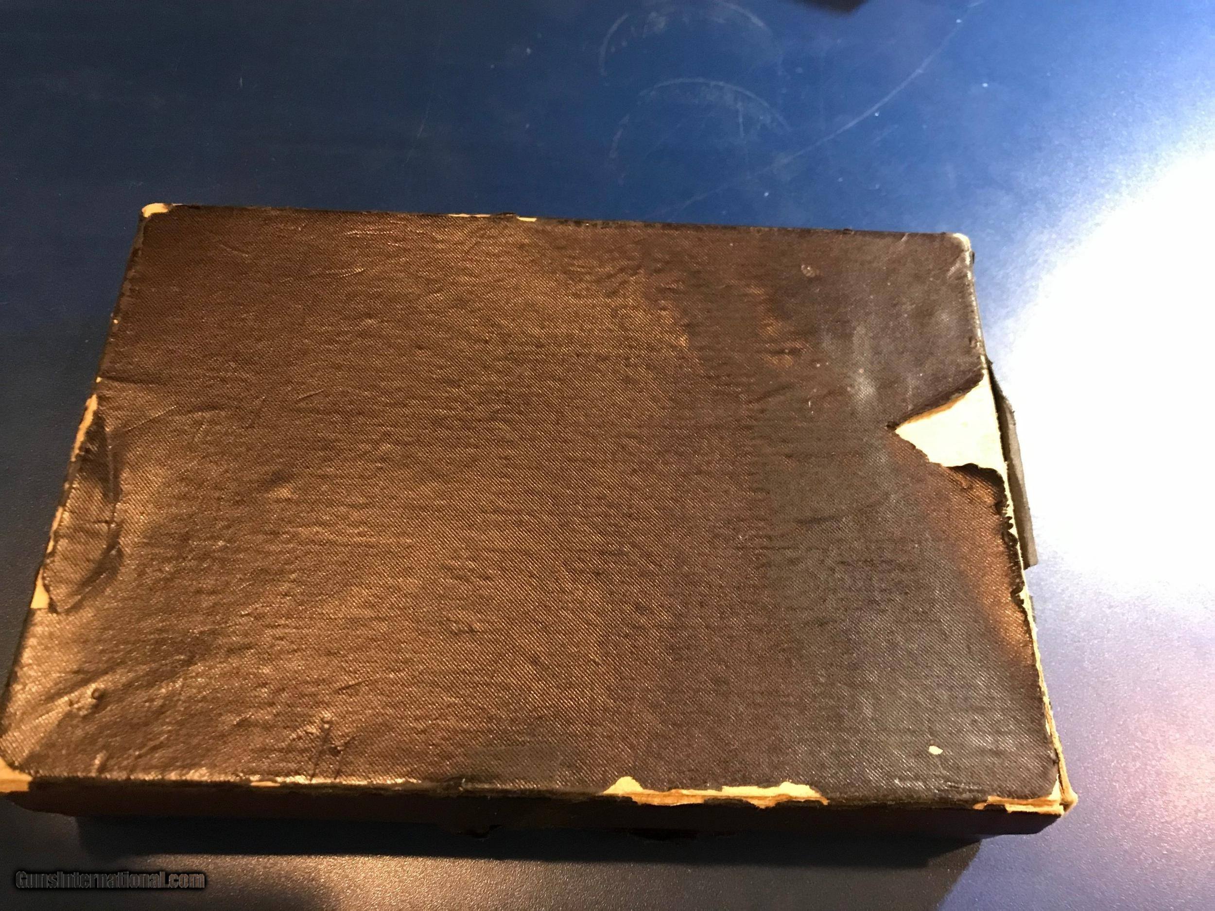 Description: Really nice 380 Colt in original box with labels intact. Grips are perfect. Very slight blue wear on muzzle. Made 1932. SOLD Curio/Relic: Yes |