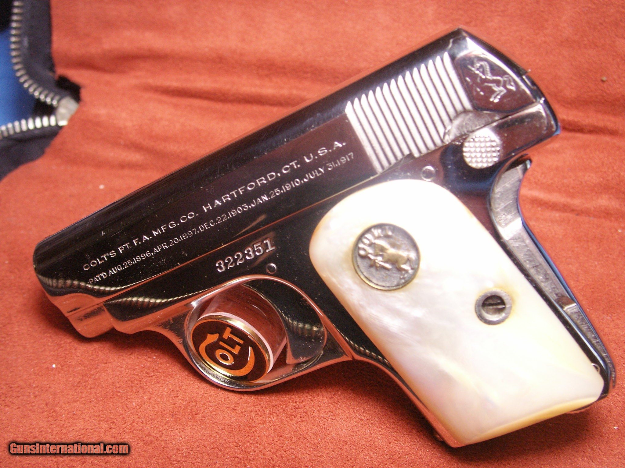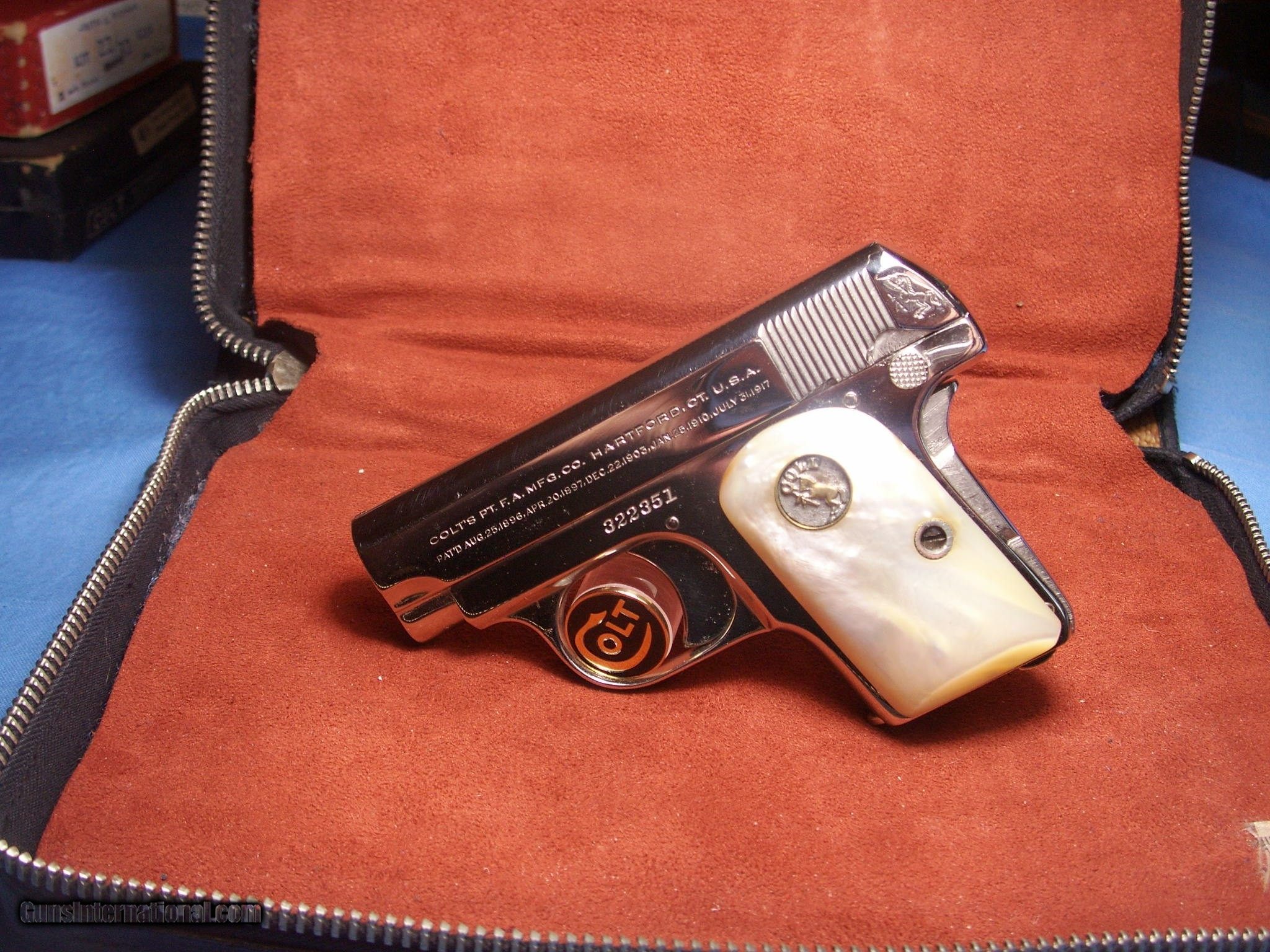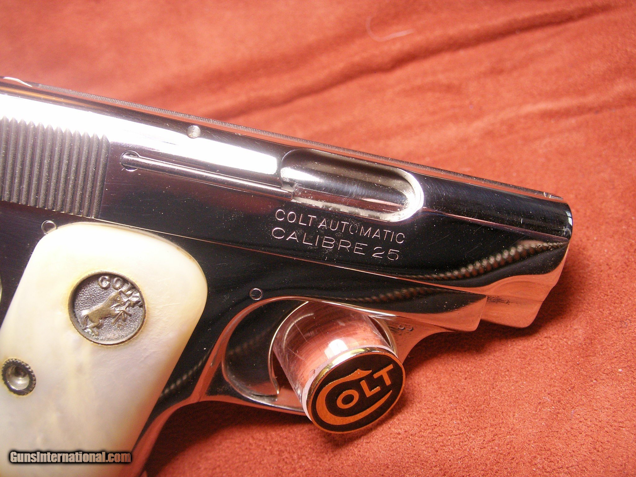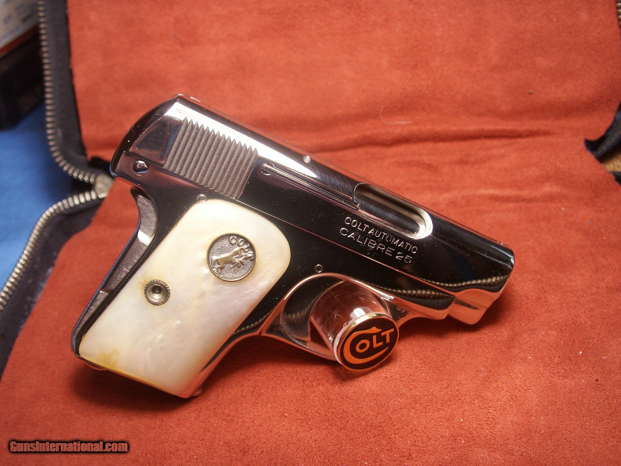 Colt 1908 Model N prewar Nickel Pocket Auto Pistol .25 ACP Pearl Grips BEAUTIFUL