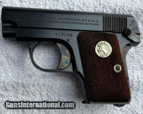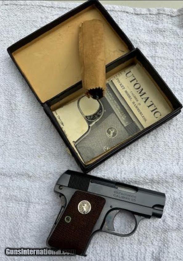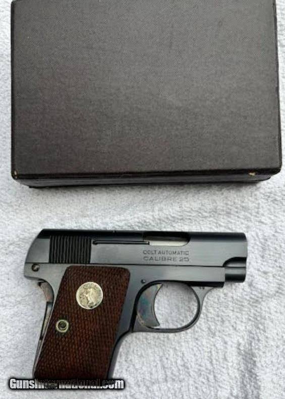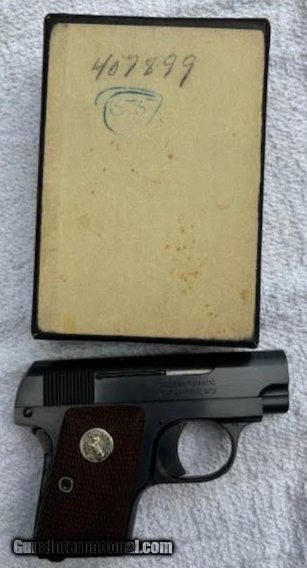 Colt 1908 pocket hammerless .25 Mfg 1940 Absolute Mint condition, wood grip panels