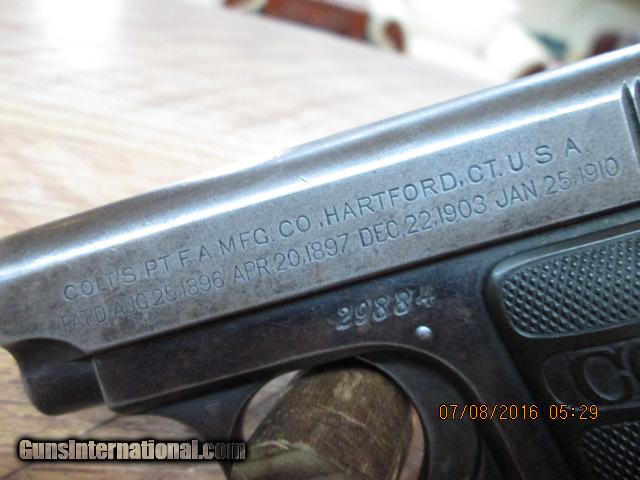 COLT 1908 POCKET HAMMERLESS 25ACP. (MFG.1910) PISTOL ALL ORIGINAL