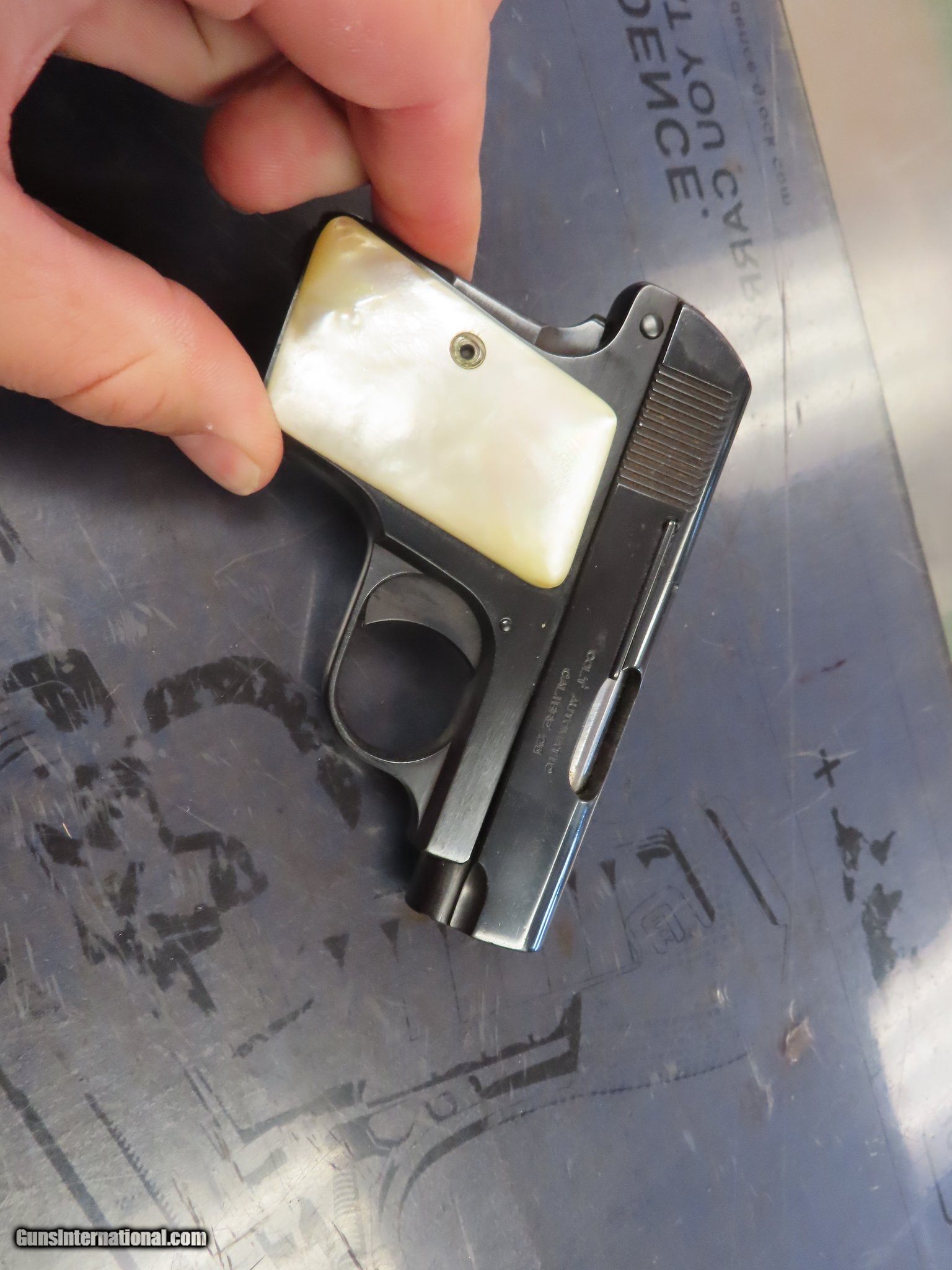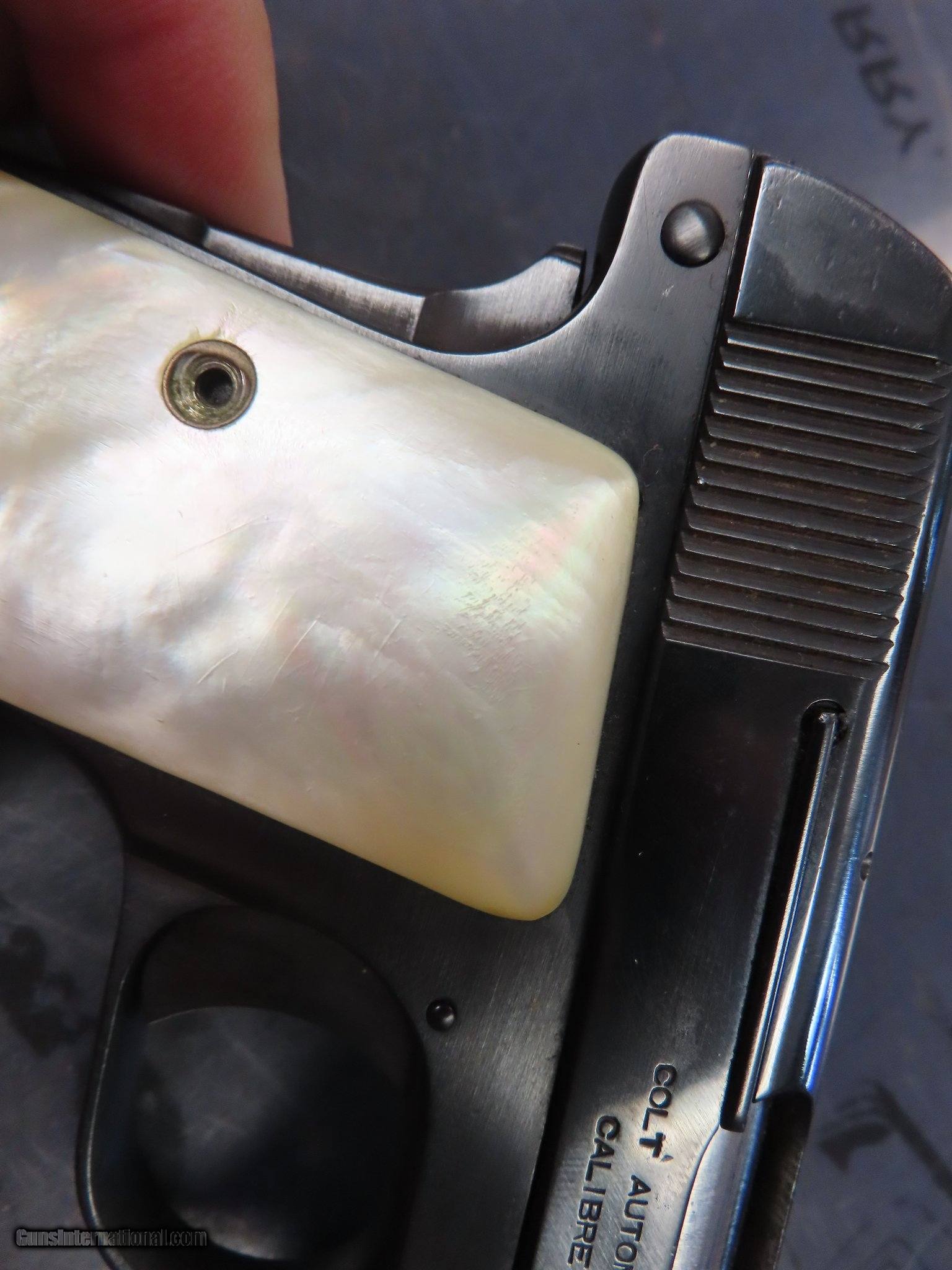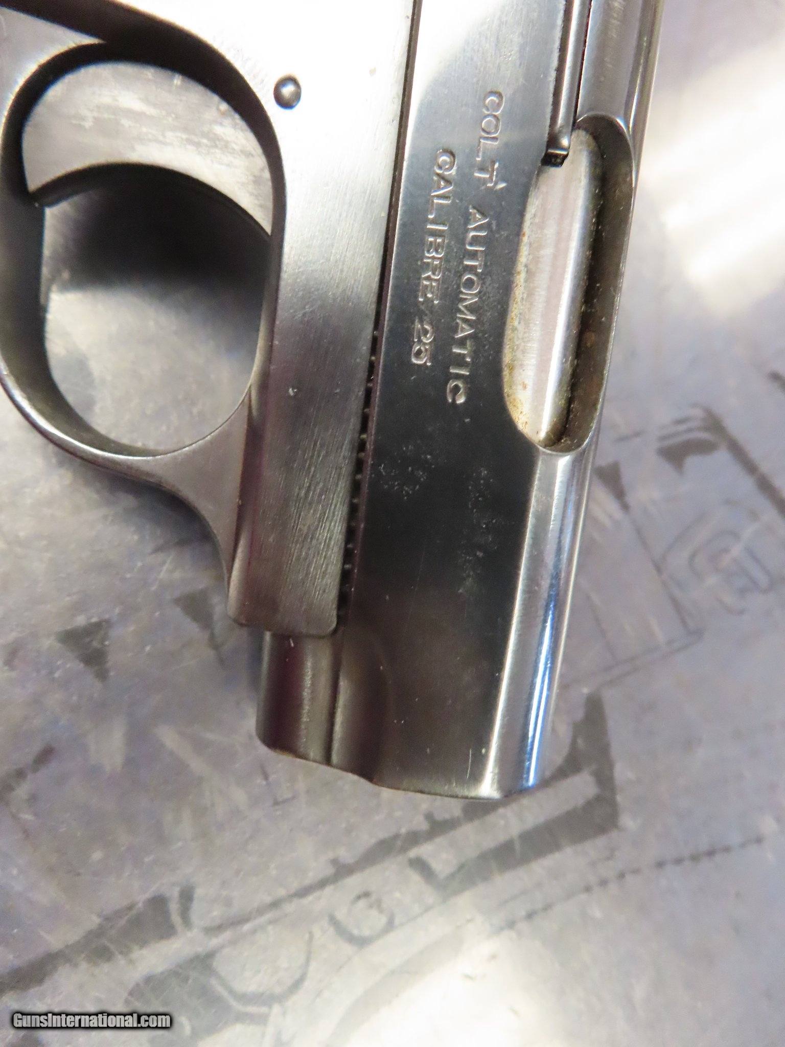 Description: Guns Listing ID: 548811 Colt 1908 Vest Pocket .25 acp. Gun was made in 1917. Comes with 1 mag and in good shape for 100+ years old. SOLD Manufacturer: COLT Model: 1908 Vest Pocket Caliber Info: .25 ACP Condition: Used - Non-Certified Barrels: 2.75 BARREL Action: SEMI AUTOMATIC Finish: blued |