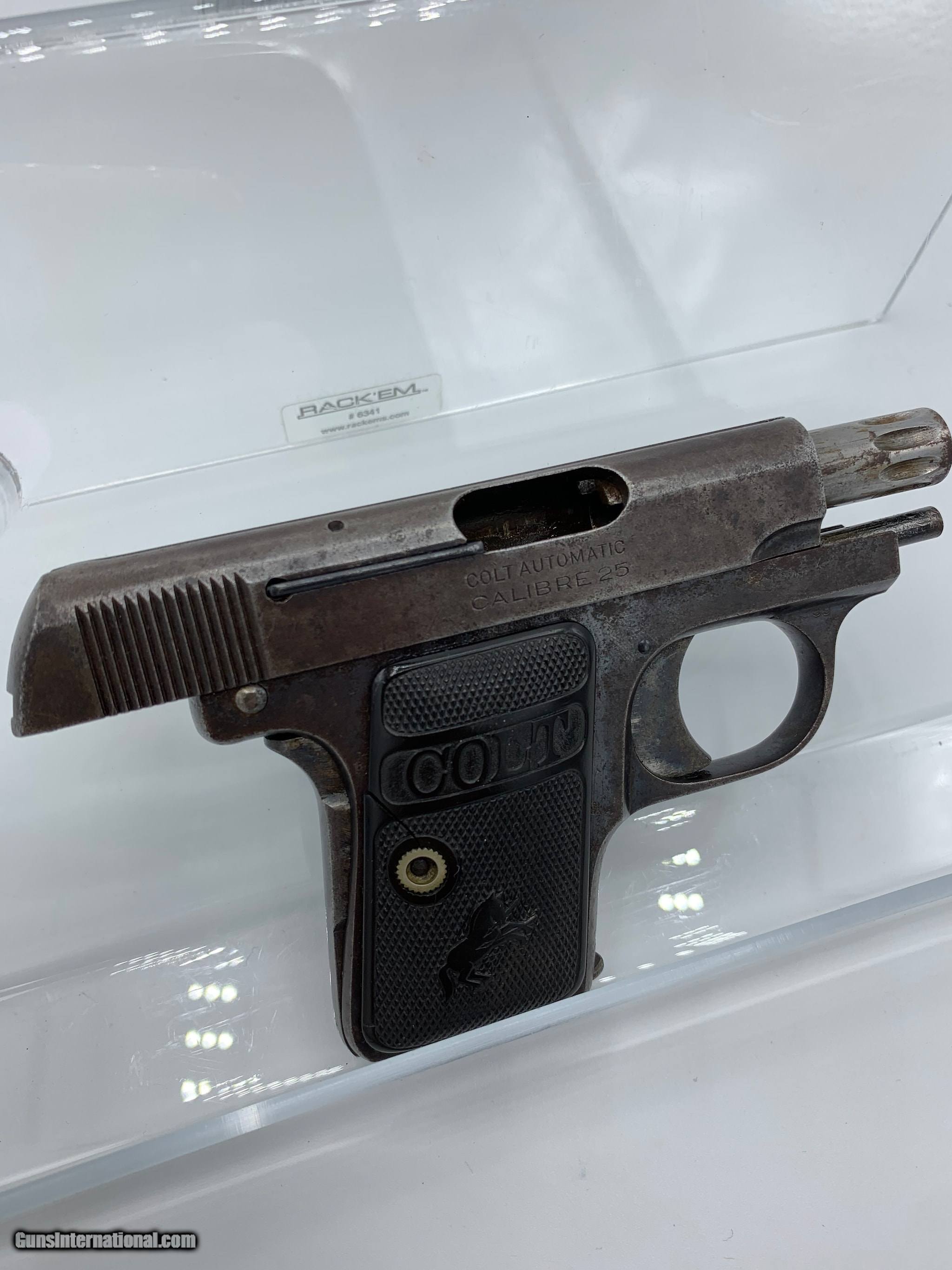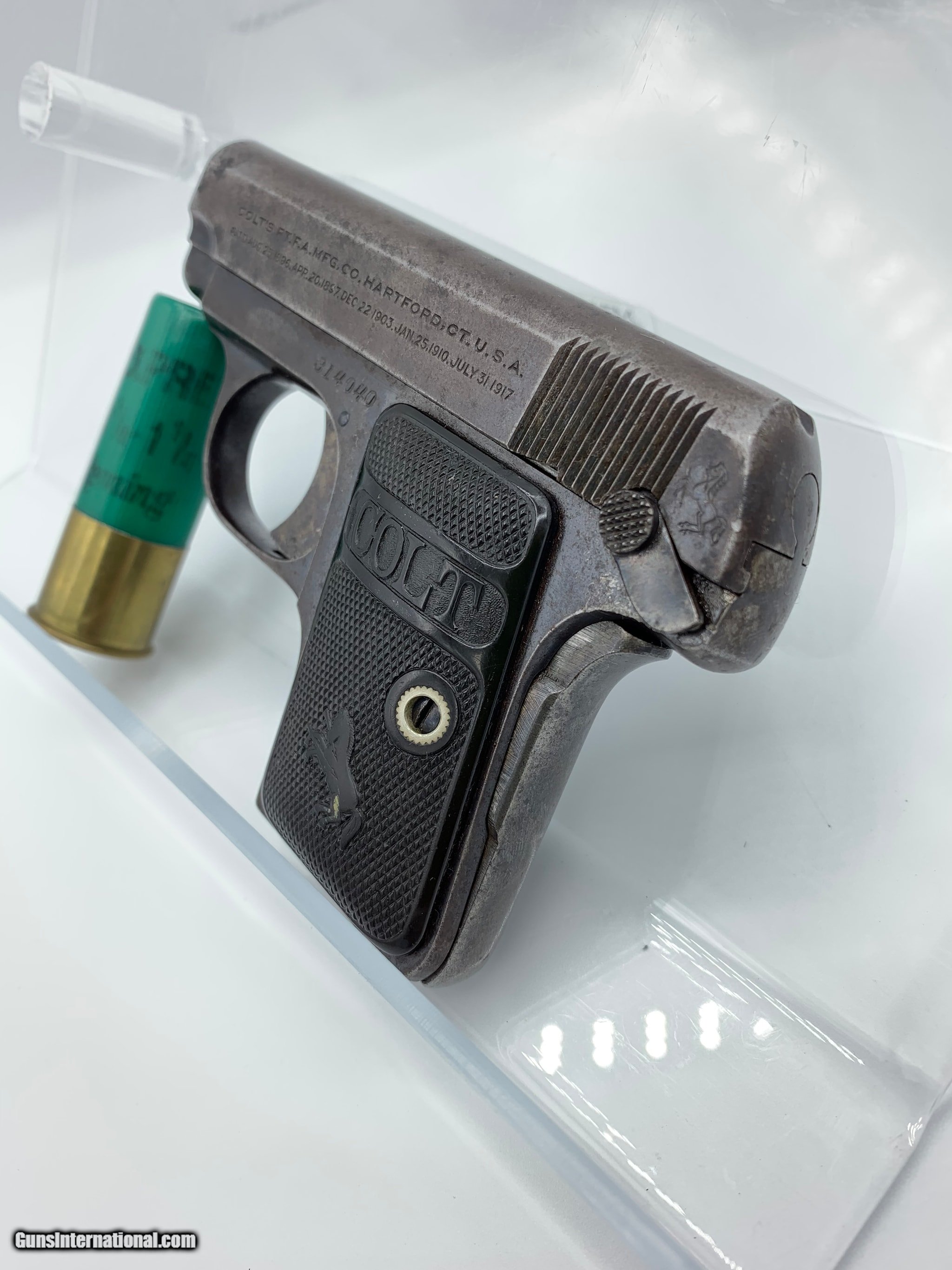 Description: Guns Listing ID: 241574 Manufactured in 1922, COLT 1908 "VEST POCKET" .25ACP pistol in good condition. Comes as pictured with 1 magazine. I#0166481-NMM SOLD Manufacturer: COLT Model: 1908 "VEST POCKET Caliber Info: 25 ACP Condition: Used - Non-Certified Barrels: 2 BARREL Finish: BLUE |