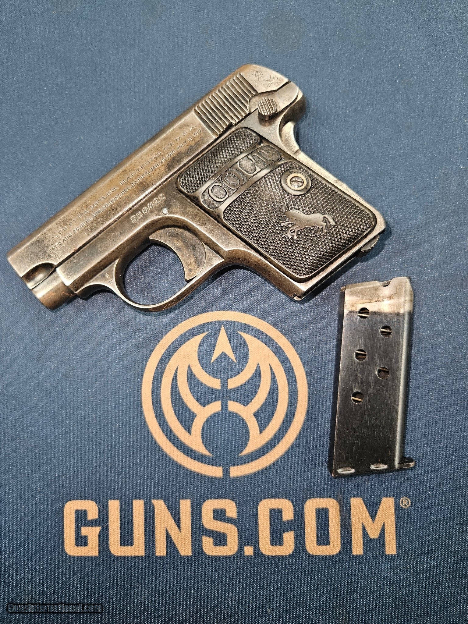 Description: Guns Listing ID: 1305871 INCLUDES: (1) 6 ROUND MAGAZINE, NO BOX. NOTE: THE FIREARM IS NOT RUSTY THAT IS FROM THE LIGHTING OF THE CAMERA, FIREARM HAS A PATINA BLUED FINISH. SOLD Manufacturer: COLT Model: M1908 Caliber Info: .25 ACP Condition: Used - Non-Certified Barrels: 2 BARREL Finish: PATINA |