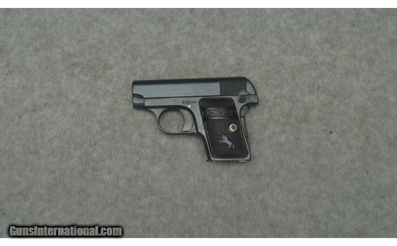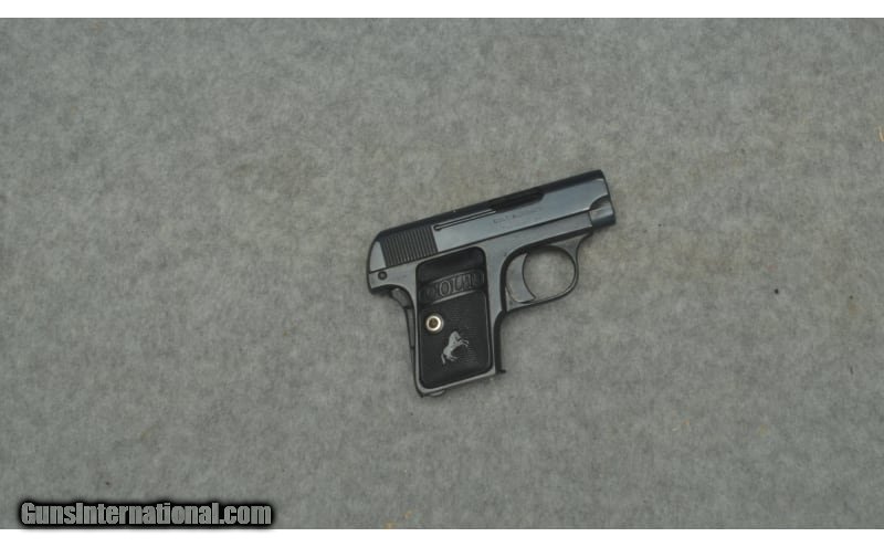 Description: Colt 1908 Hammerless Automatic. Chambered in .25 ACP. Overall condition is very good. The gun has been re blued and some of the markings on the slide are missing.. With all this the gun is in really good shape considering it was manufactured in 1911. Serial # 60244 .25 ACP SOLD Chambers: 6 Metal Condition: V good Bore Condition: V good Barrels: 2 Weight: 1 lb Item Location: Sun Prairie, WI |
