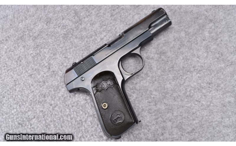 Description: Slide shows areas of thinning blue and bore remains excellent. Grips show only light wear and remain free of cracks. No box. SOLD Manufacturer: S/N 33XX Caliber Info: .380 Auto Metal Condition: Good Bore Condition: Excellent Barrels: 3 3/4 Triggers: Factory Stock: Checkered Black Bakelite Grips Weight: 24 OZ Sights: Blade Front - Notch Rear Item Location: Wheeling, WV |