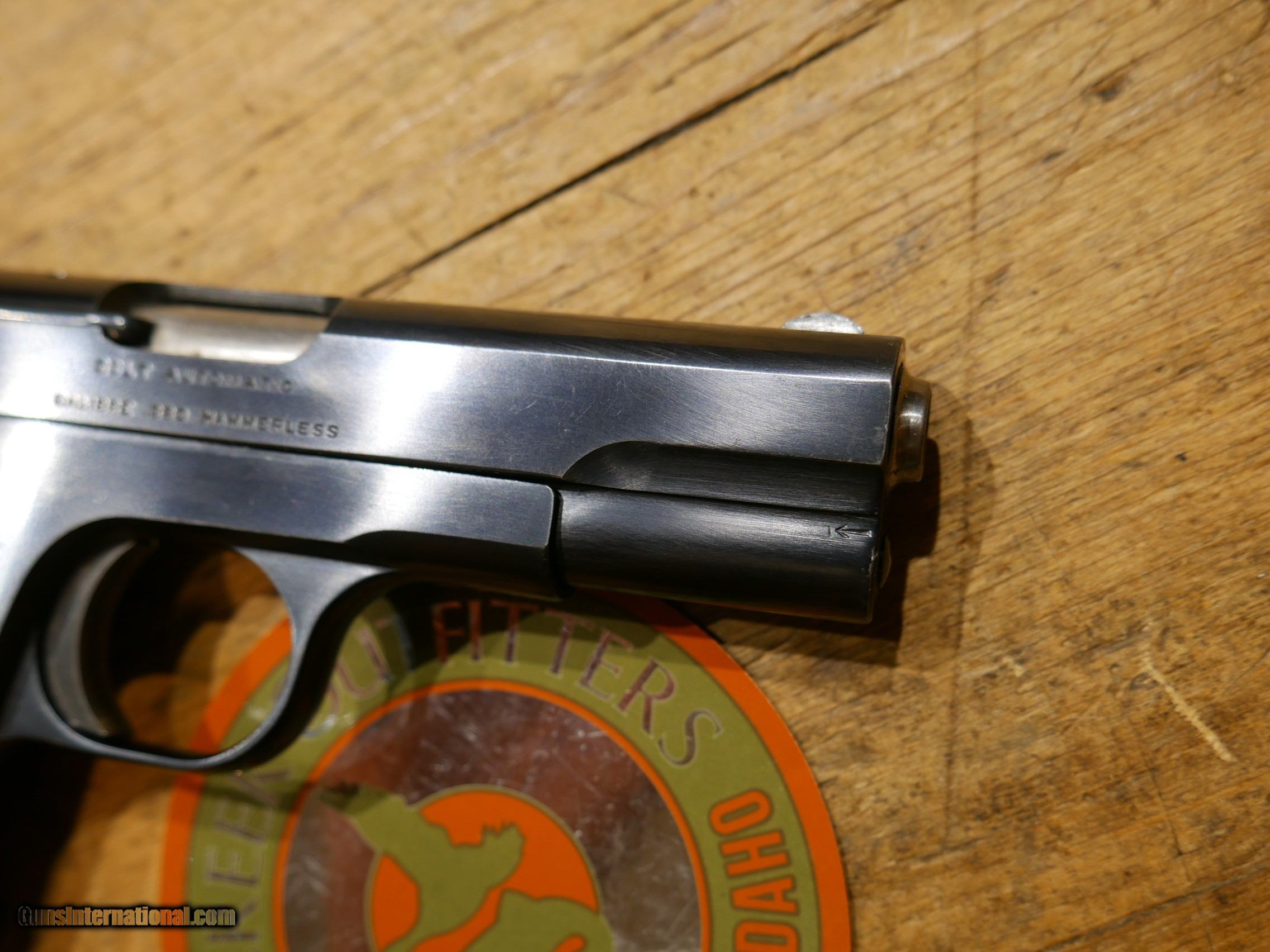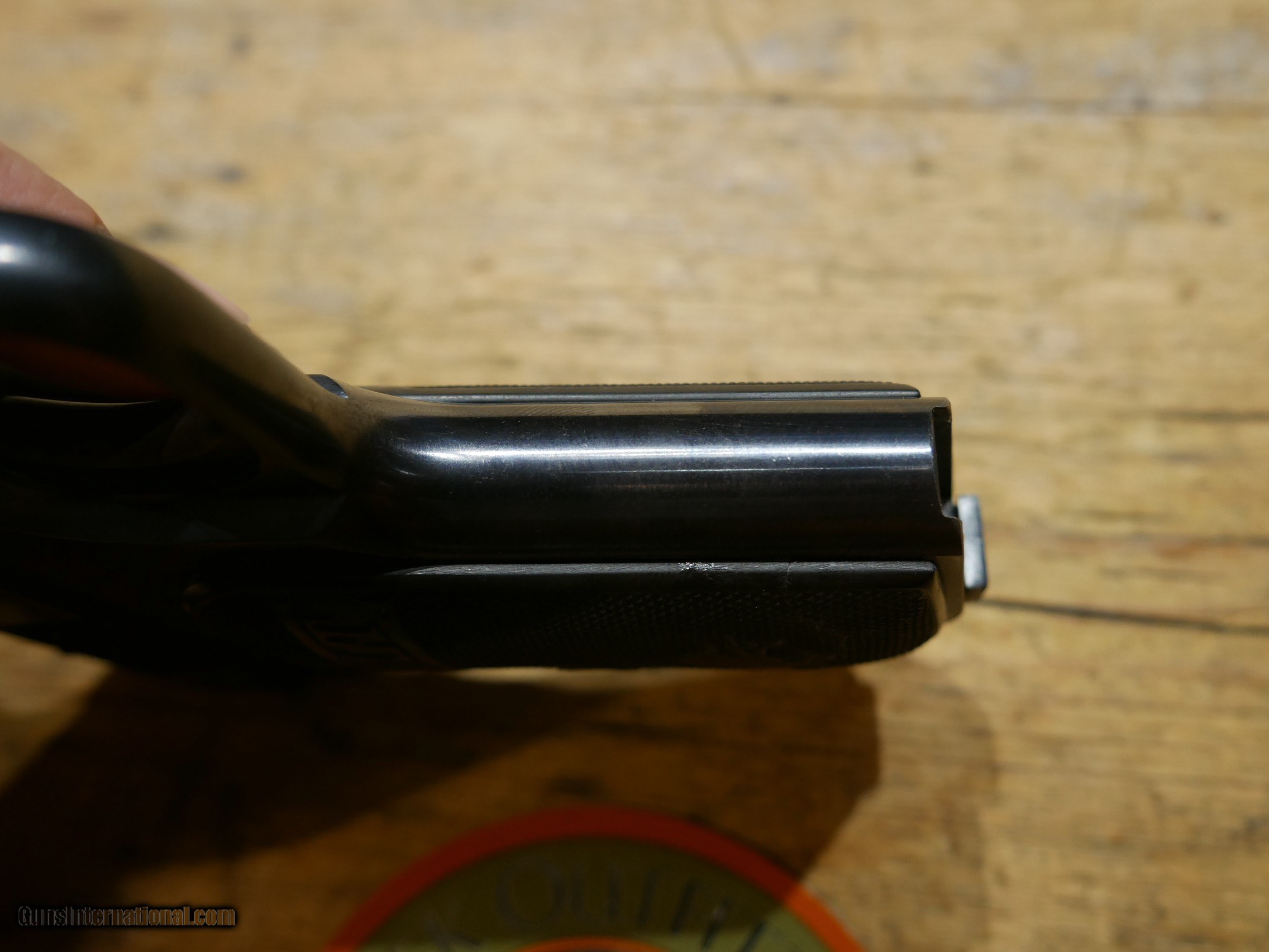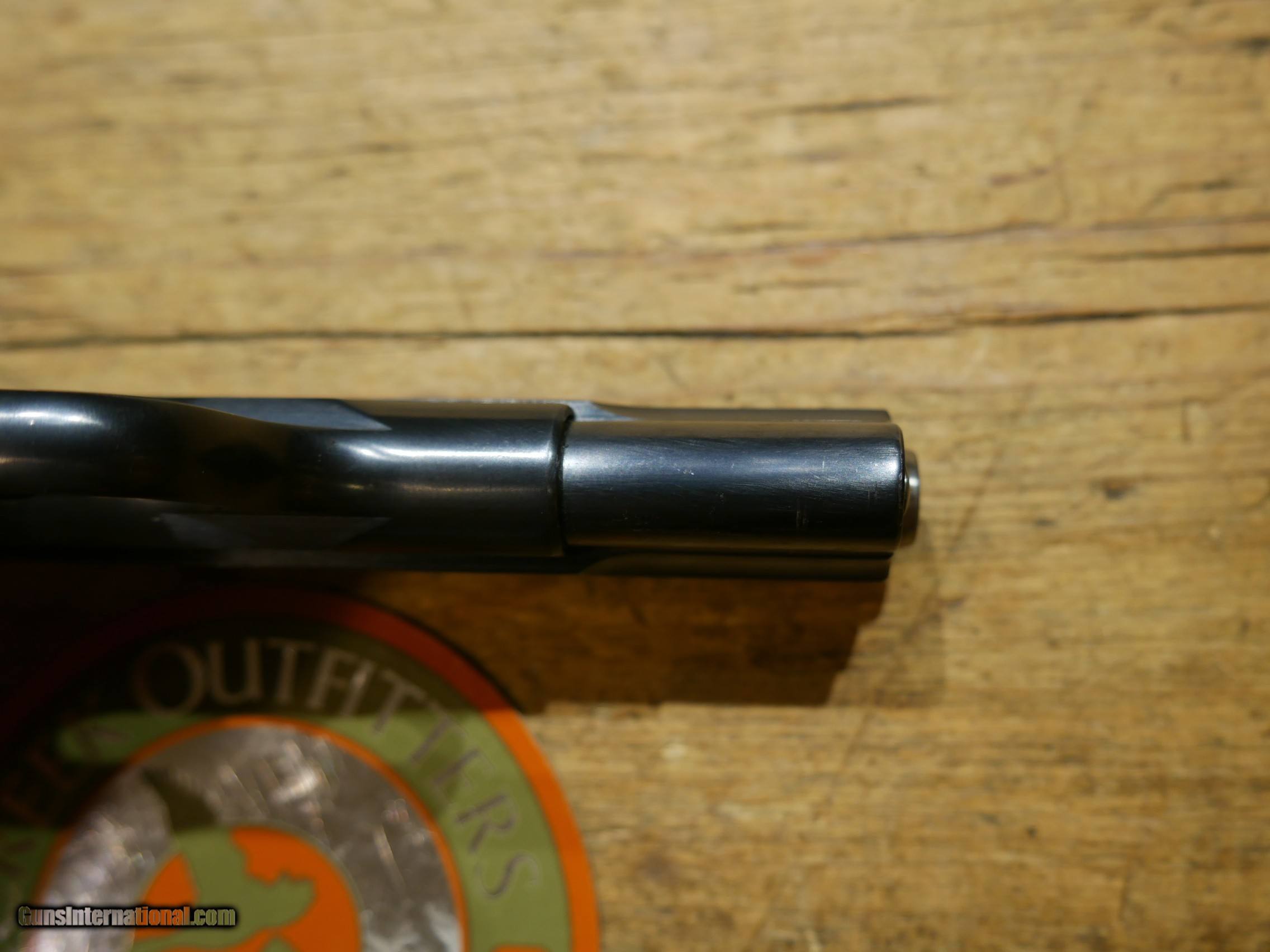 Description: Colt 1908 Hammerless Pocket Pistol in .380ACP. 3 3/4" barrel. Slide lock and grip safeties. Charcoal blued frame and slide. Checkered hard rubber grips. Colt's SN lookup suggests 1920 date of manufacture. Beautiful and classic .380 in very good condition. Still very solid bluing throughout with a few light blemishes, shown in pics. Very light holster wear at some point in the past 100+ years. Crack through the right side grip that may need some glue on the back side at some point. Shiny strong bore ***$40 SHIPPING AND INSURANCE*** ***NO CREDIT CARD FEES*** ***ALL WARRANTIES ARE HANDLED BY THE MANUFACTURER*** ***NO WARRANTIES THROUGH SILVER CREEK OUTFITTERS IMPLIED OR EXPRESSED*** ***MUST CALL TO COMPLETE TRANSACTION*** ***PLEASE BE IN CONTACT WITH A RECEIVING FFL AND BE PREPARED TO PROVIDE THEIR EMAIL ADDRESS OR AT LEAST THEIR PHONE WHEN MAKING PAYMENT*** SOLD Manufacturer: COLT'S MFG CO. Model: 1908 Condition: USED, VERY GOOD |