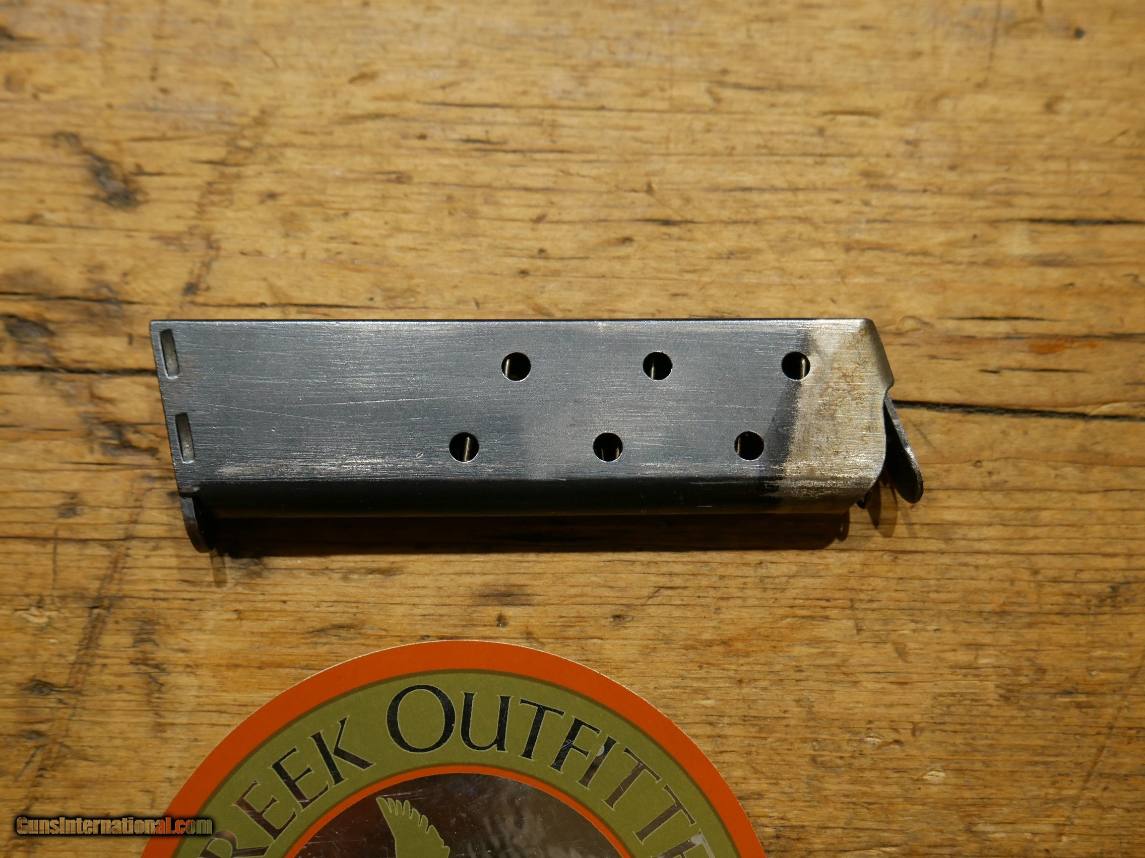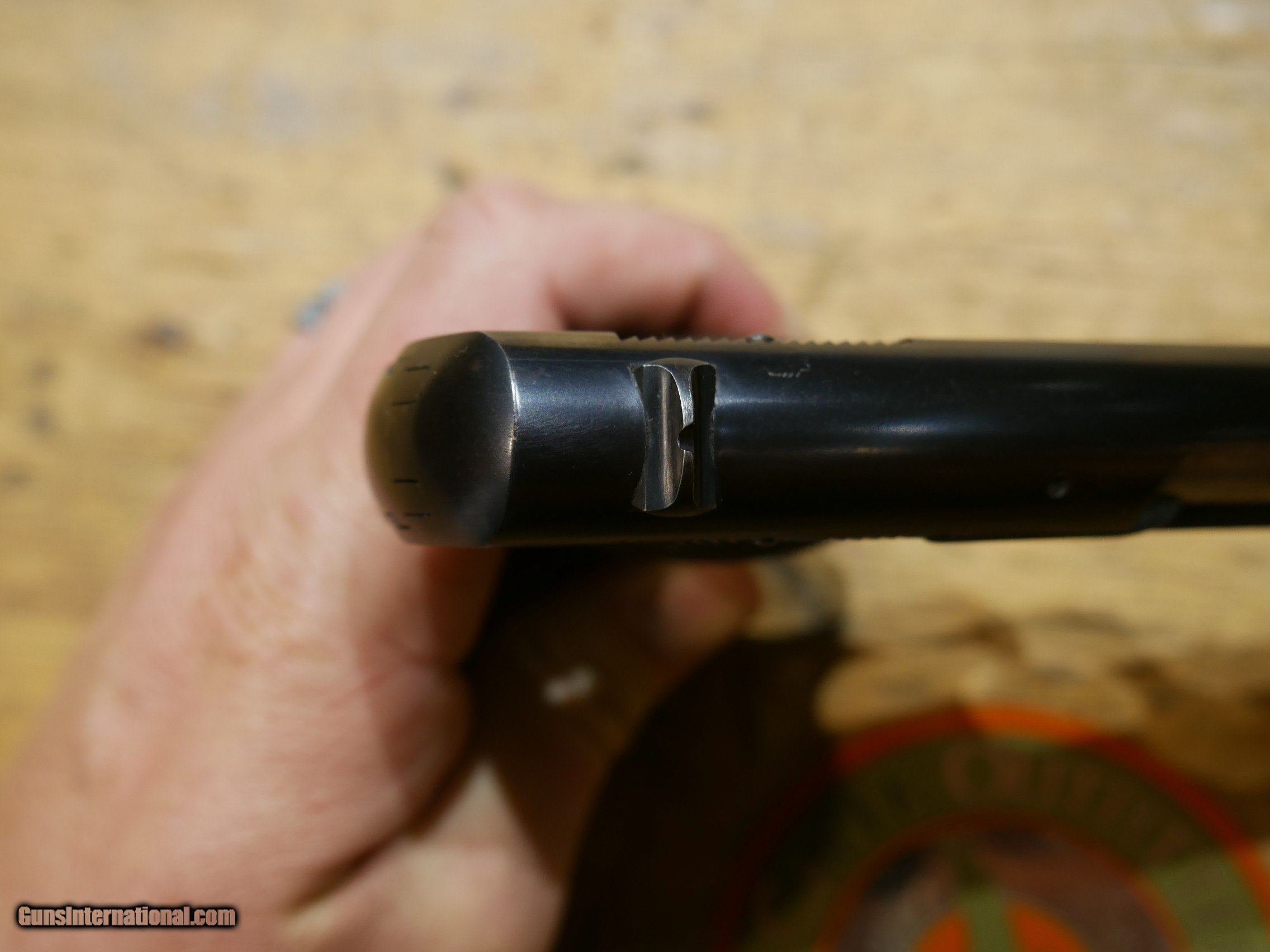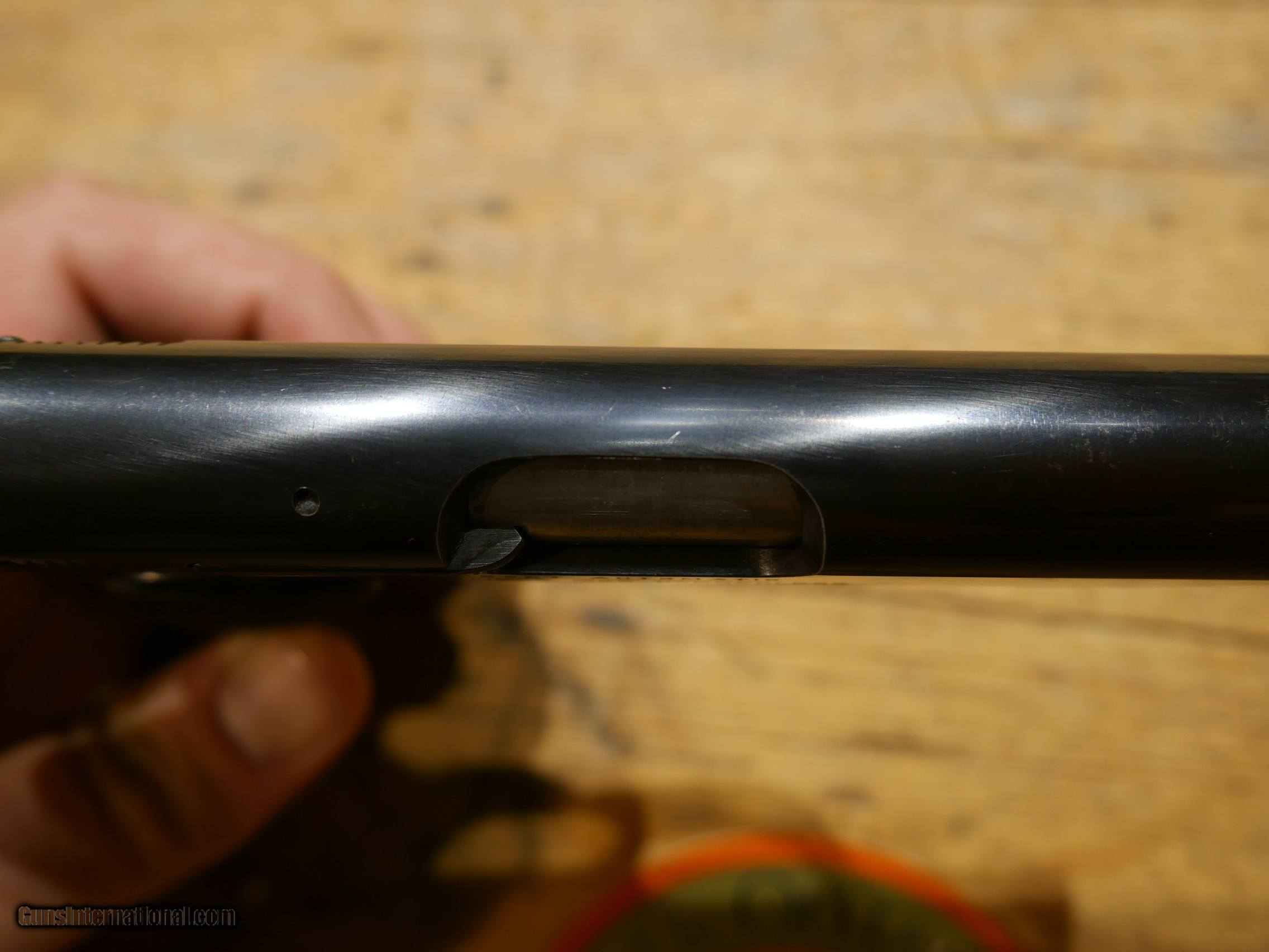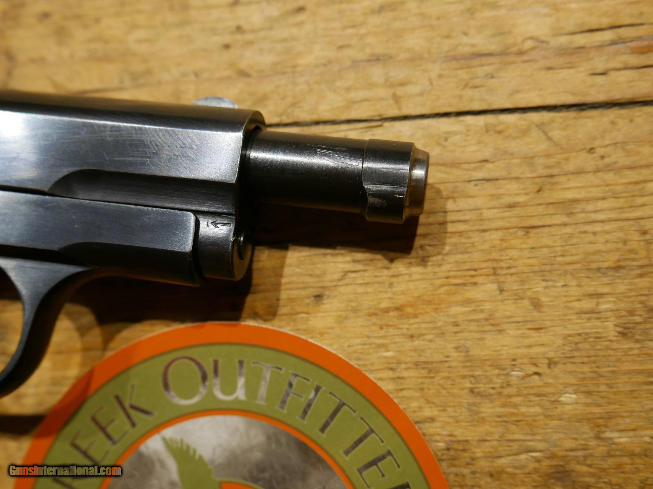 Description: Colt 1908 Hammerless Pocket Pistol in .380ACP. 3 3/4" barrel. Slide lock and grip safeties. Charcoal blued frame and slide. Checkered hard rubber grips. Colt's SN lookup suggests 1920 date of manufacture. Beautiful and classic .380 in very good condition. Still very solid bluing throughout with a few light blemishes, shown in pics. Very light holster wear at some point in the past 100+ years. Crack through the right side grip that may need some glue on the back side at some point. Shiny strong bore ***$40 SHIPPING AND INSURANCE*** ***NO CREDIT CARD FEES*** ***ALL WARRANTIES ARE HANDLED BY THE MANUFACTURER*** ***NO WARRANTIES THROUGH SILVER CREEK OUTFITTERS IMPLIED OR EXPRESSED*** ***MUST CALL TO COMPLETE TRANSACTION*** ***PLEASE BE IN CONTACT WITH A RECEIVING FFL AND BE PREPARED TO PROVIDE THEIR EMAIL ADDRESS OR AT LEAST THEIR PHONE WHEN MAKING PAYMENT*** SOLD Manufacturer: COLT'S MFG CO. Model: 1908 Condition: USED, VERY GOOD |