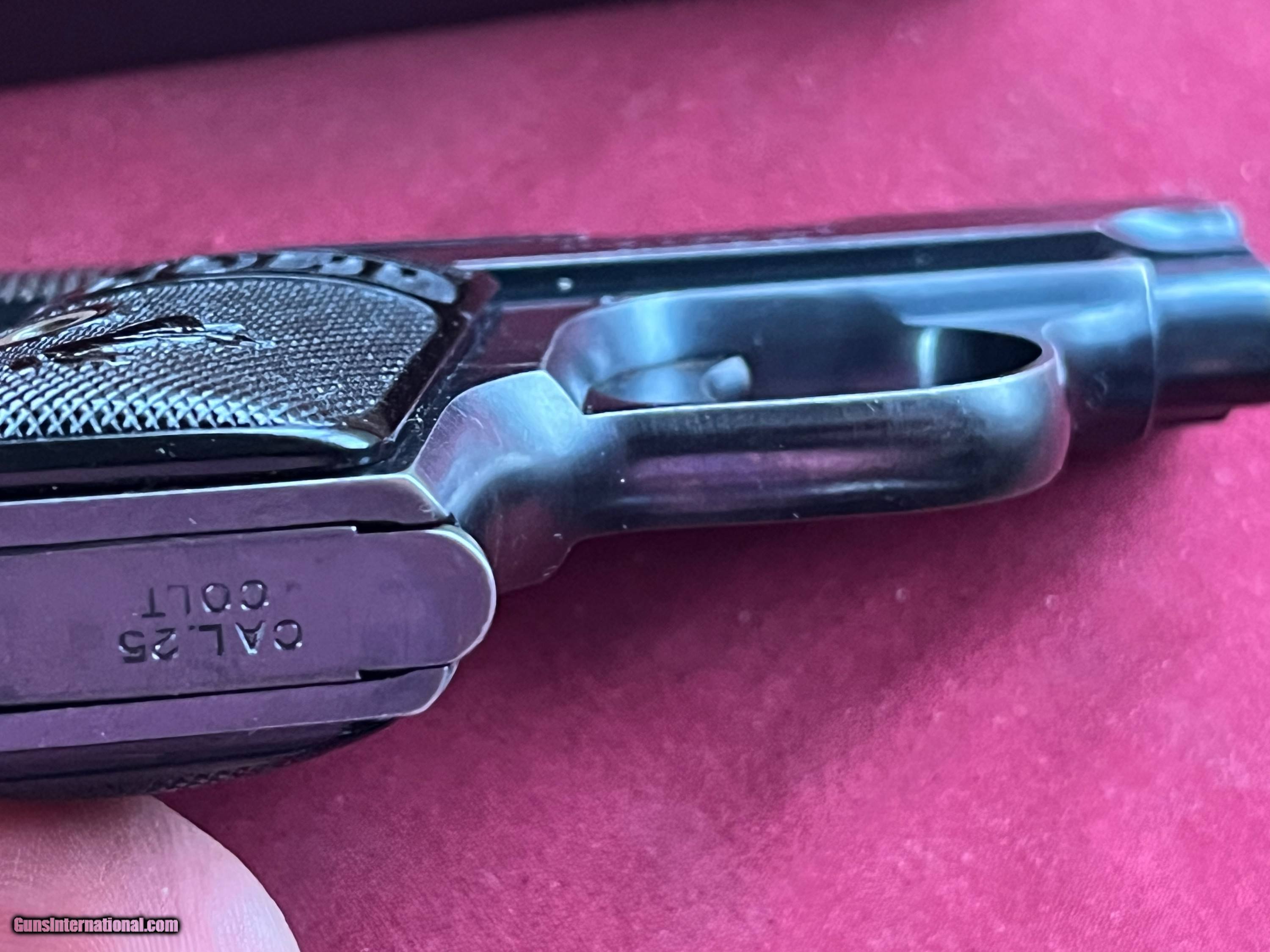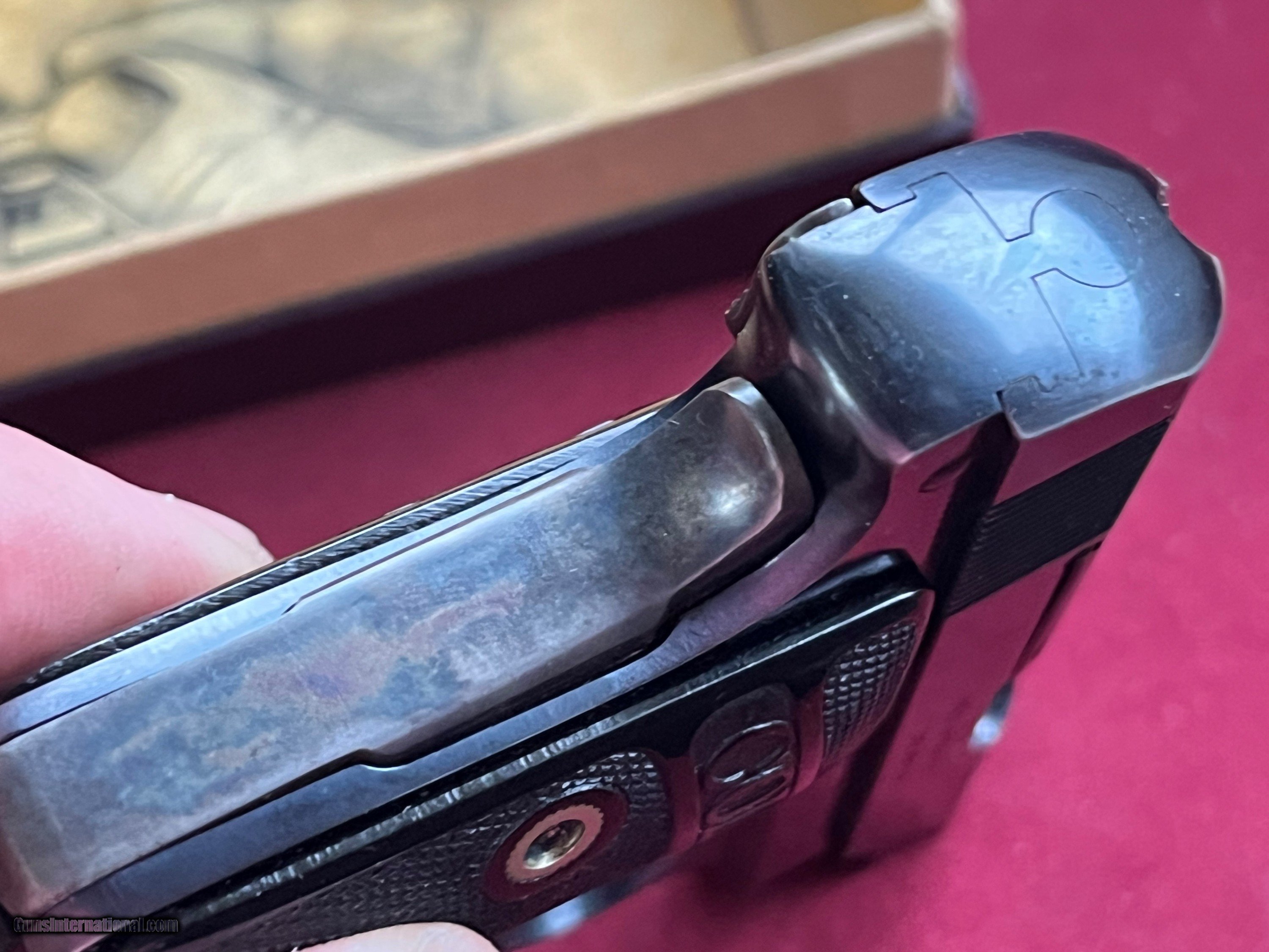 Description: COLT MODEL 1908 VEST POCKET SEMI AUTO PISTOL. SER#128871 MADE IN 1915. CALIBER 25ACP .GUN IS IN EXCELLENT ORIGINIAL CONDITION . COMES WITH BOX AND MANUAL , EASTERN BRANCH FIREARMS ADD 40.00 SHIPPING – NEXT DAY AIR SHIPPING ADD 50.00 SHIPPING – LONG GUNS GROUND OPTIONAL INSURANCE IS AVAILABLE AT 1.25 PER 100.00 Questions e-mail or call Glen at Eastern Branch Firearms 207-215-5021 TERMS – PLEASE READ BEFORE I DO NOT HAVE A LAYAWAY OPTION ( WE ACCEPT CREDIT CARDS ) -- I GET ALOT OF REQUEST FOR TRADES, I WOULD PERFER NOT TO DO TRADES ON MY INTERNET LISTINGS PAYMENT OPTIONS- We accept money orders, cashier’s checks , bank checks. sorry no personal checks. We accept all major credit cards please add 3% to the ’s cash discount price.(Shipping within the state of Florida - Florida Residents must pay sales tax) .Handguns and long guns do need to be shipped separate. PLEASE do not send payment via FED EX . USPS & UPS are fine. Thank you. We include a signed copy of our FFL with each firearm shipped. SAFTY NOTICE- Buyer is solely responsible for determining that a used gun is safe to shoot. The firearms offered have not been test fired but have been given a visual inspection only for purposes. It is a requirement that every used firearm is inspected by a qualified gunsmith before firing. By , the buyer agrees to hold seller harmless against damages, injury, or death caused by defective merchandise. RETURN POLICY- All firearms come with a 3-day non firing , non messing with ( turning srews ,taking apart,removing parts, scoping. firing, cleaning or messing with in anyway) inspection/return privilege.Inspection is based on a visual review of the gun to confirm the gun is in the condition stated. In the case of a return, buyer pays all shipping charges & if paid for with a credit card buyer absorbs the 3% credit card charges . So please ask questions BEFORE you bid. Thanks for Looking and Good Luck!! U.S. sales only, no exports…this includes antiques. I will ship to third party for exporting SOLD Curio/Relic: Yes |