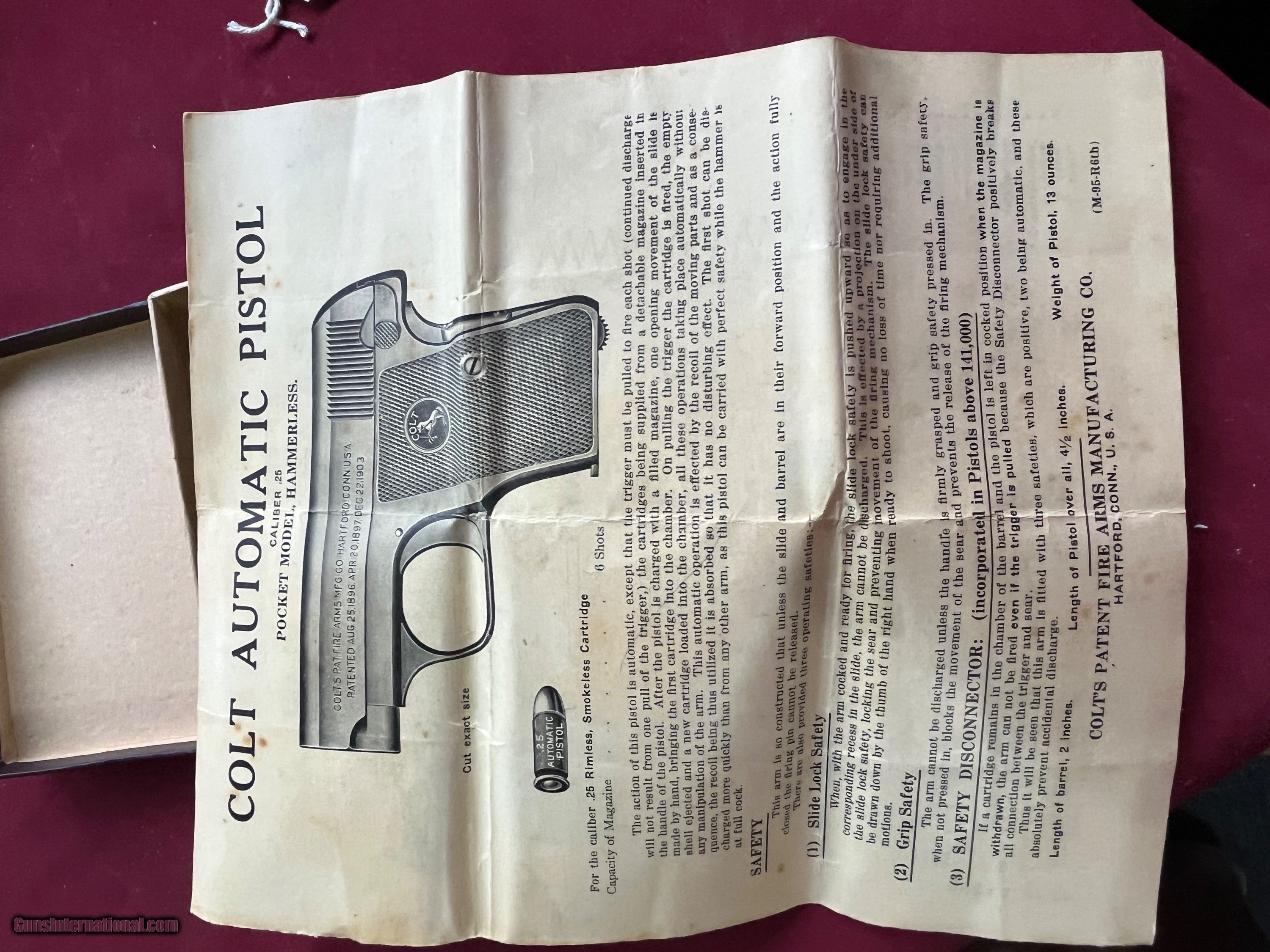 COLT MODEL 1908 VEST POCKET SEMI AUTO PISTOL 25ACP