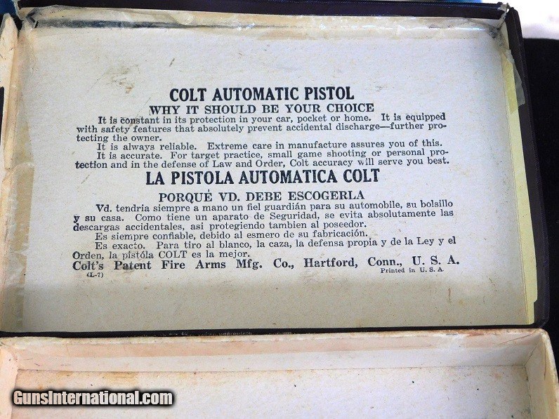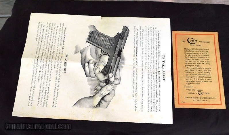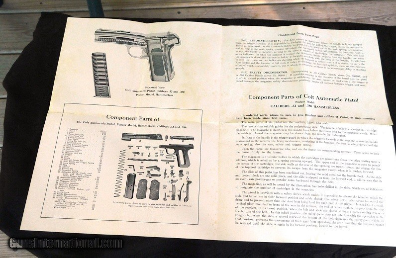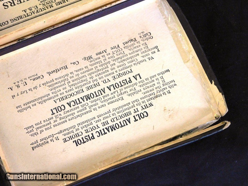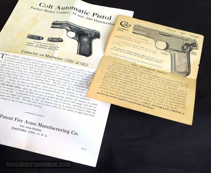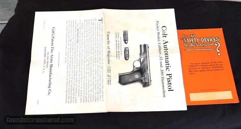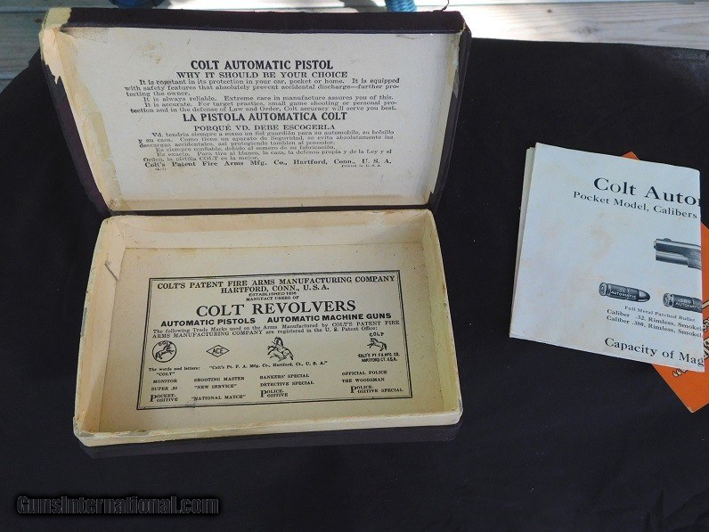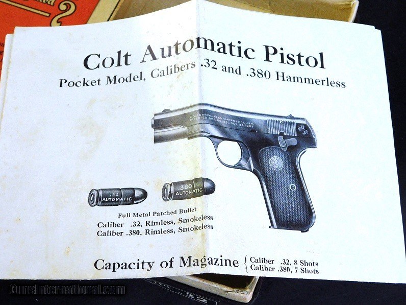 Colt Pocket Automatic Model .32 & .380 cal. Hammerless original Box w/papers