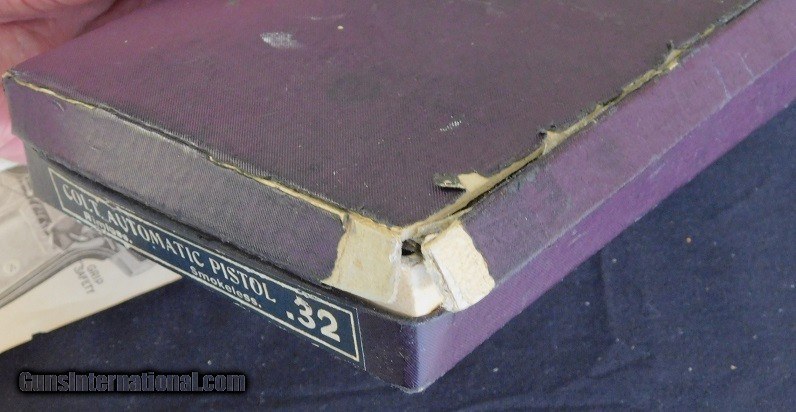 Description: Vintage original Colt Automatic Pocket Model Hammerless Pistol box with original Colt papers. Papers say for the .32 or .380 caliber Automatic pistol. Box end label says for.32 Automatic Rimless. The lid is complete but needs some repair to 1 corner, see pictures. Please feel free to ask any questions. Please note this box is also for sale in a local Antique Store so if interested please inquire if it is available. Shipped priority mail with tracking number, signature reqd. at delivery $12.75 Payment by MO or Cashiers Check. Condition is as shown in pictures, upper left corner needs repair, the box is complete and solid except for as noted. SOLD Manufacturer: Colt Model: Colt Hammerless Automatic Caliber Info: 32 or 380 Condition: as shown Manufacture Date: 1903 to 1908 |