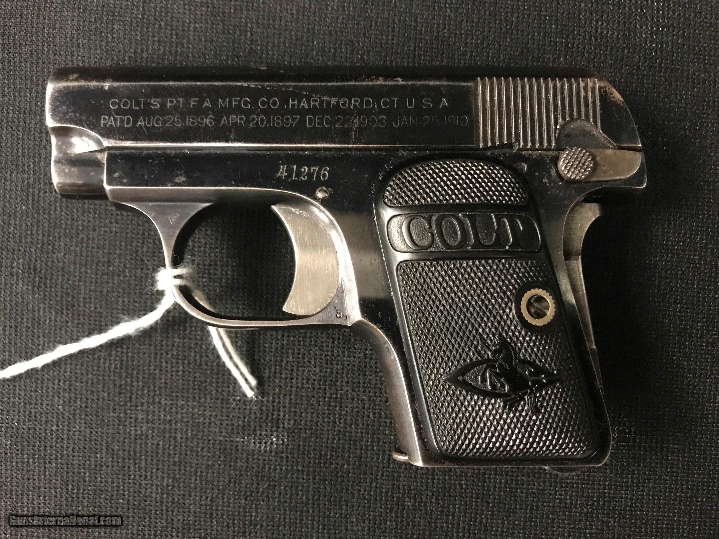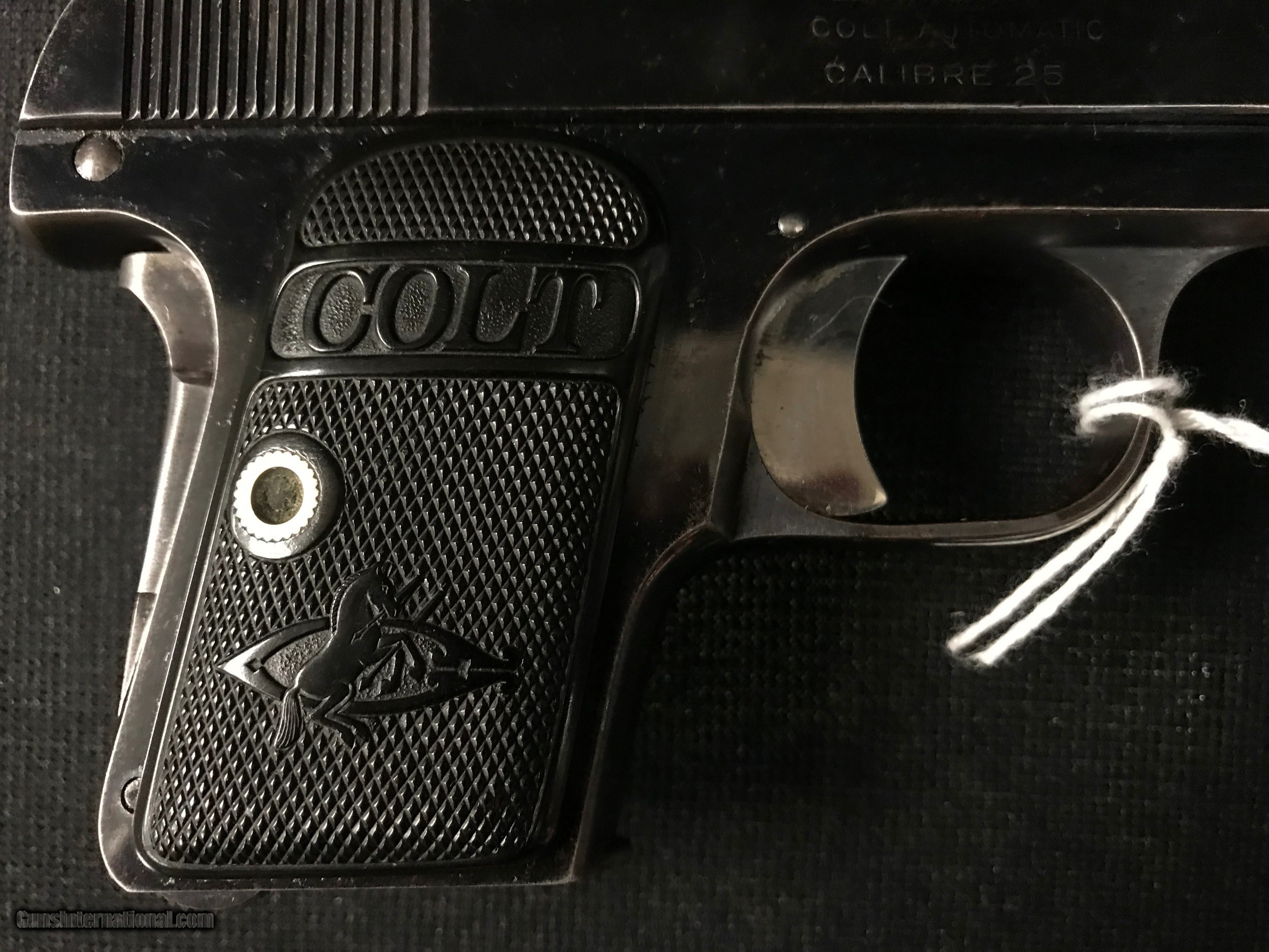 Description: Manafactured in 1911, Colt Vest Pocket model 1908. Chambered in .25acp . FOR MORE INFORMATION ABOUT THIS HANDGUN OR PURCHASING PLEASE GIVE US A CALL AT 1(479)-968-4106. PRICE - $750.00 + Shipping Reduced Price $575 + Shipping SOLD Caliber Info: .25 acp Manufacture Date: 1911 |