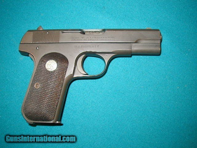 Description: ****** SPF ****** THIS IS AN EXCELLENT 1944 WW 2 ISSUE COLT .32 U.S. PROPERTY . IT RETAINS 98% OF IT'S GREENISH ORIGINAL PARKERIZED FINISH. EXCELLENT GRIPS, ALL NUMBERS MATCHING, MINTY BORE. HAS LEND LEASE BRITISH PROOFS. CORRECT ORIGINAL BLUE COLT MARKED MAG. C&R OK SOLD Curio/Relic: Yes |
