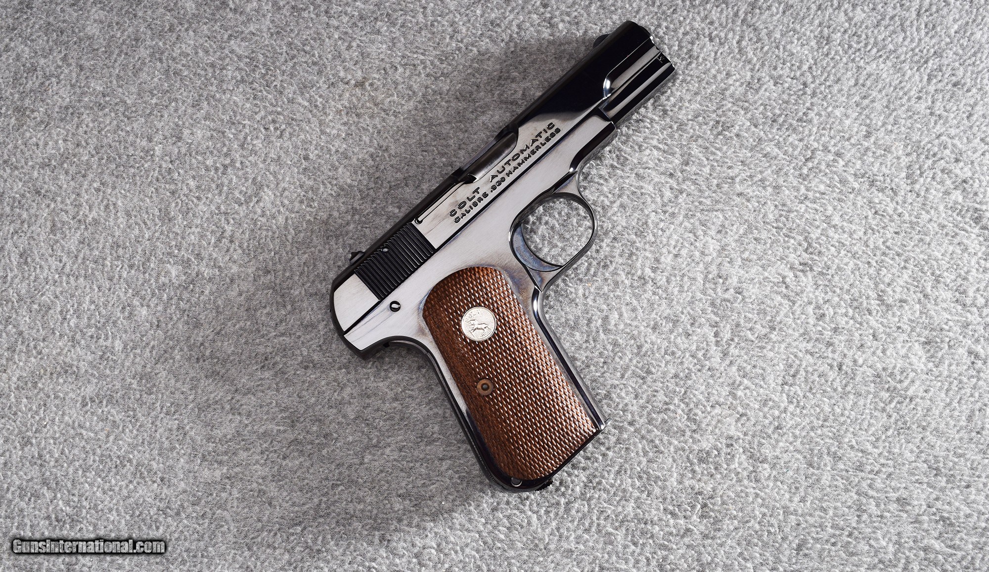 Description: This U.S. Armament MFG. produced Colt Model 1908 in .380 ACP remains in excellent / as new condition. Only 300 of these pistols were manufactured by U.S. Armament MFG. This one is new in box with a soft zippered case, Colt owner's manual and other paperwork. A very nice pistol! No MIM or cast parts. .380 ACP SOLD Metal Condition: Excellent Wood Condition: Excellent Bore Condition: Excellent Barrels: 3 5/8 Triggers: Factory Butt Pad: Checkered Two Panel Grips Weight: 24 Oz Sights: Blade Front - U Notch Rear Item Location: Wheeling |