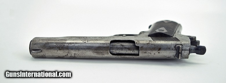 Description: Colt 1911 .45 ACP caliber pistol. Made in 1918. Metal has a spotted gray patina. Grips are free of cracks and chips, but show honest wear. Nice honest WWI era gun that has been carried and just does not have any of its finish remaining. SOLD Curio/Relic: Yes |