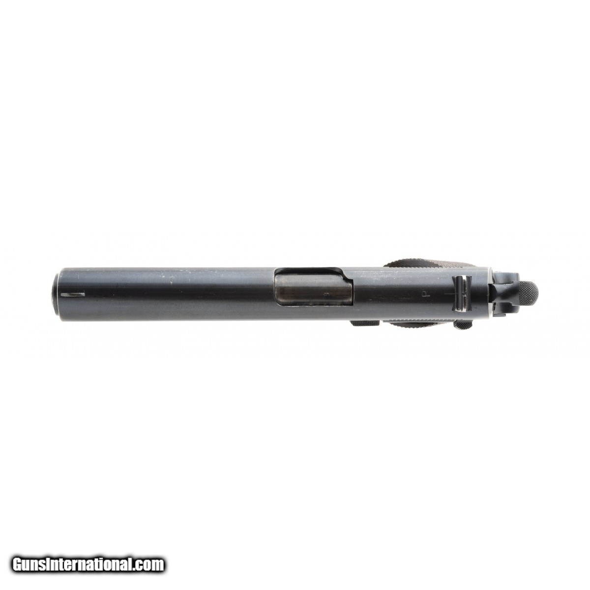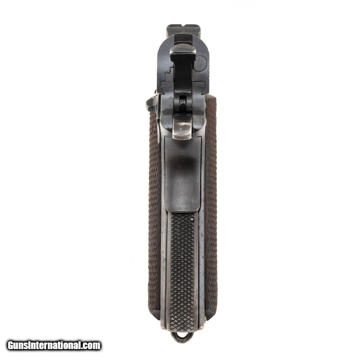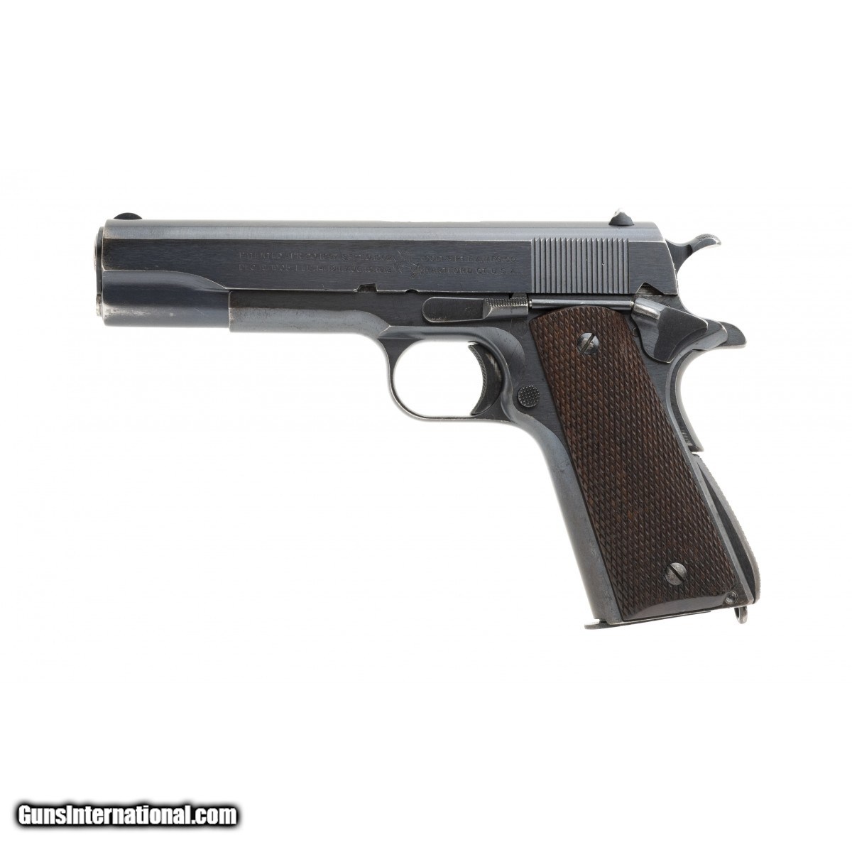 Description: "Serial number 705652. Made in 1924. 45 ACP with a 5" barrel. Absolutely beautiful condition with 97% of the original blued finish. Grips are excellent with nice sharp checkering. Bore is excellent. This is rare transitional model which has the 1911A1 features with a blued finish. This gun was part of a 10,000 gun contract from Springfield Armory that was awarded to Colt on June 12th of 1923. All of these guns were assigned the serial number 700,000 – 710,000. This contract was delivered across 1924. This gun comes with a factory letter. This gun comes with paperwork that this gun was sent to the USS Charleston from the Springfield research records. Absolutely beautiful 1911 Transitional. Hard to improve upon! SOLD Curio/Relic: Yes |