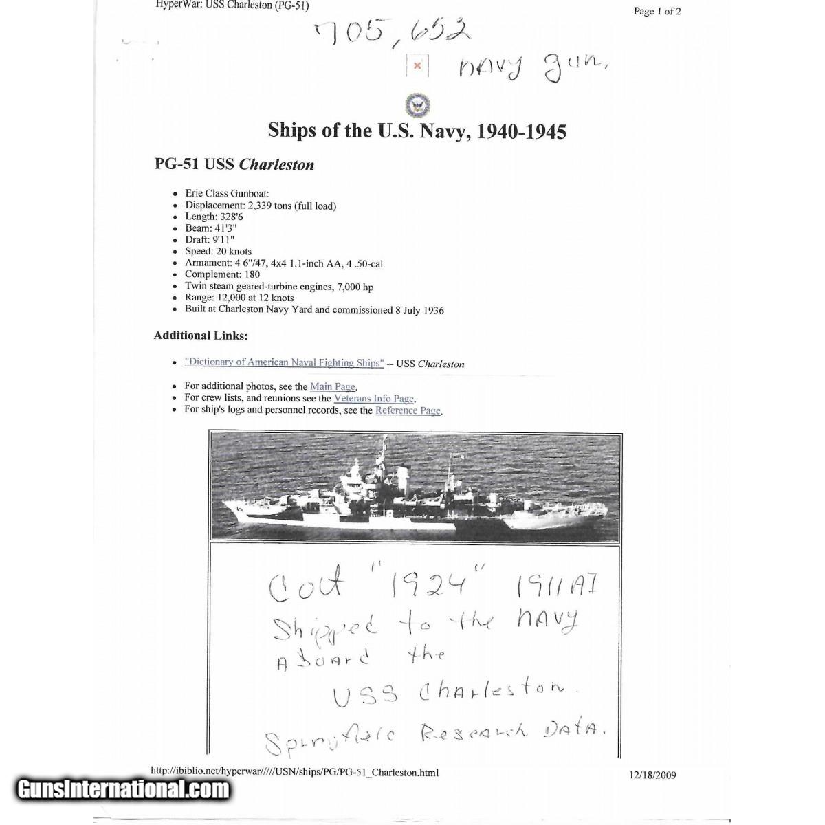 "Colt 1911 Transitional Model USS Charleston (C17381)