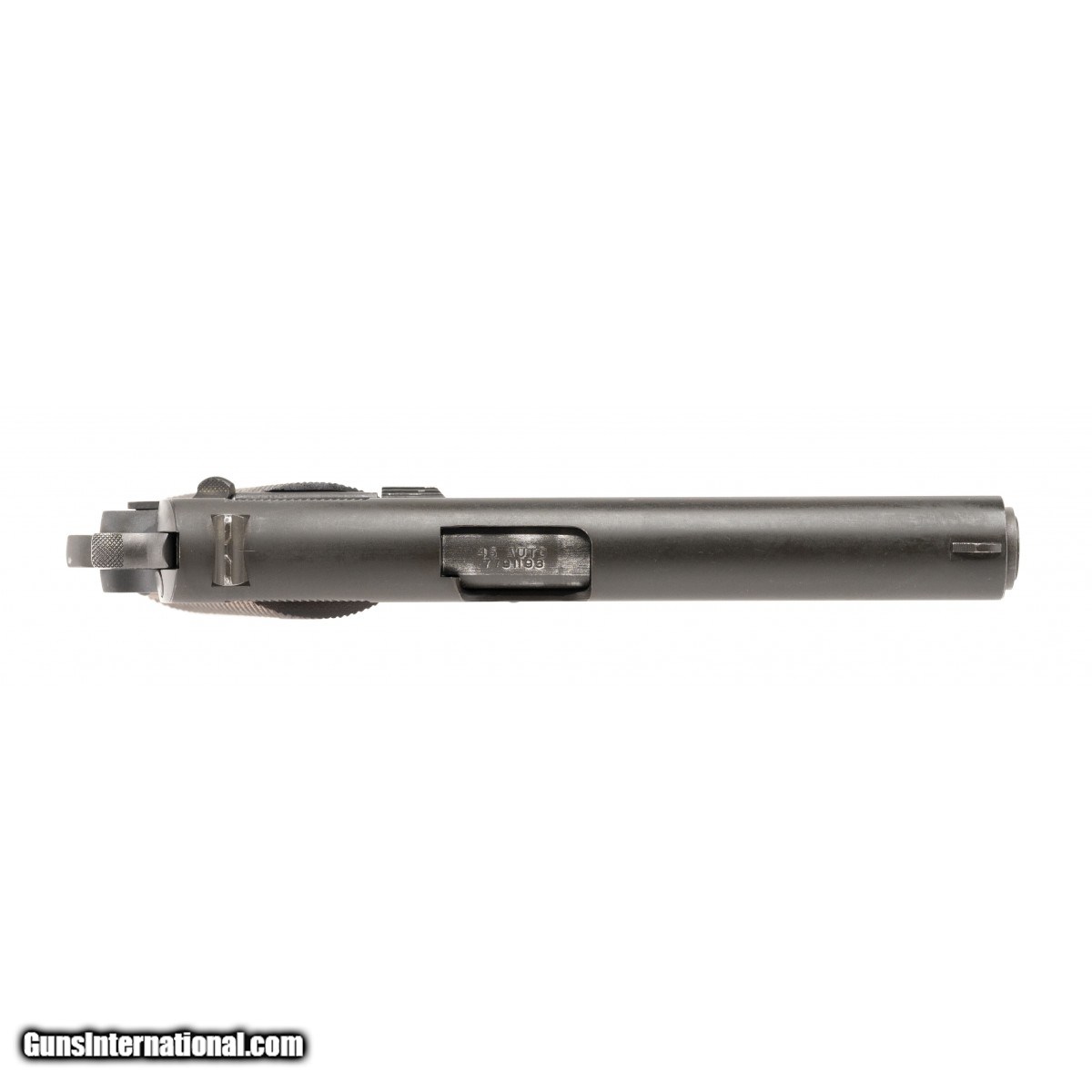 Description: " WWII U.S. military Colt frame made in 1943 in parkerized finish. The slide and barrel are a 50's vintage Colt replacement. The bore is excellent. The metal shows some wear but has 97% of the parkerization. Overall very good condition. SOLD |