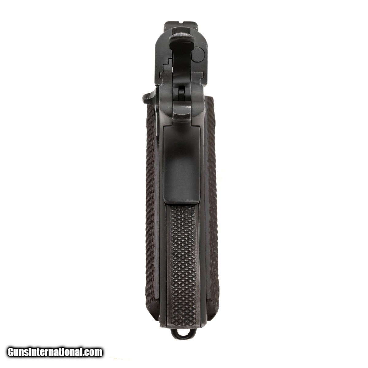 WWII U.S. military pistol with 5"" barrel, made in 1943. The serial is 877375. The bore is excellent. The right side of the frame is marked ""United states property"", ""U.S. army"" and Ordinance wheel. The left side of the frame is marked with ""G.H.D."" and ""P"" acceptance marks and flaming bomb stamped on the trigger guard. A ""P"" is marked on the top of the slide. Has 85% of its original military finish. Overall very good condition.