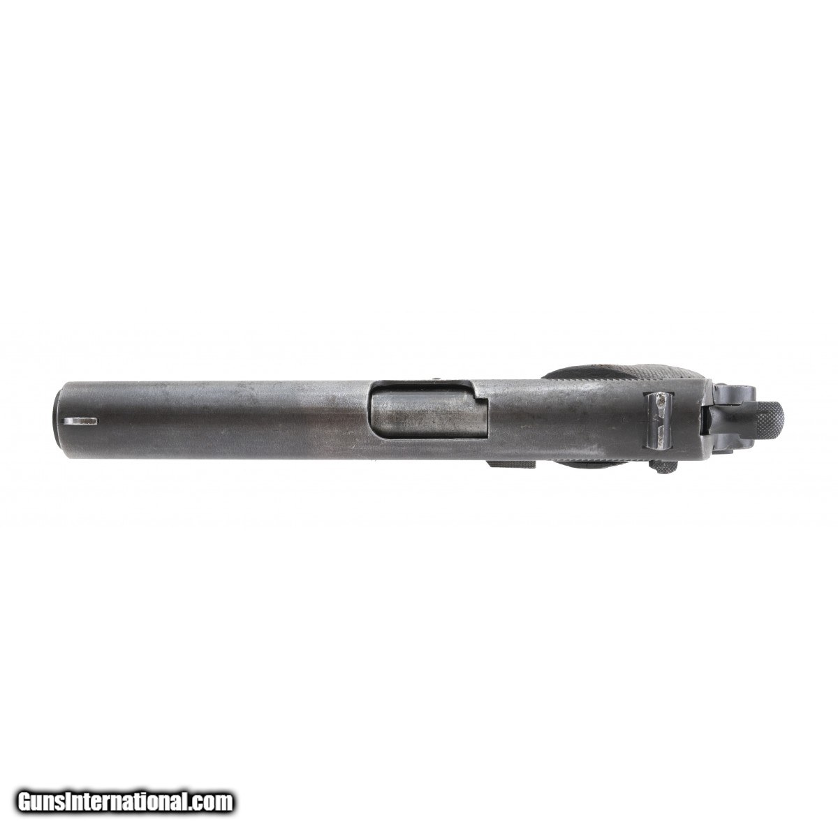 Description: " US WWI 1911 with WWII Remington Rand slide. Left side of frame is marked ""United States Property"" over ""AA"" (Augusta Arsenal). Grips are WWI era and are very worn. Metal on frame is turning a brown and gray patina. Barrel is stamped ""P"" on left side of lug and ""HS"" on right side. Bore is excellent. Magazine is marked ""S"" on toe along with ""579"" on base. Fair overall condition. Reasonably priced. SOLD Curio/Relic: Yes |