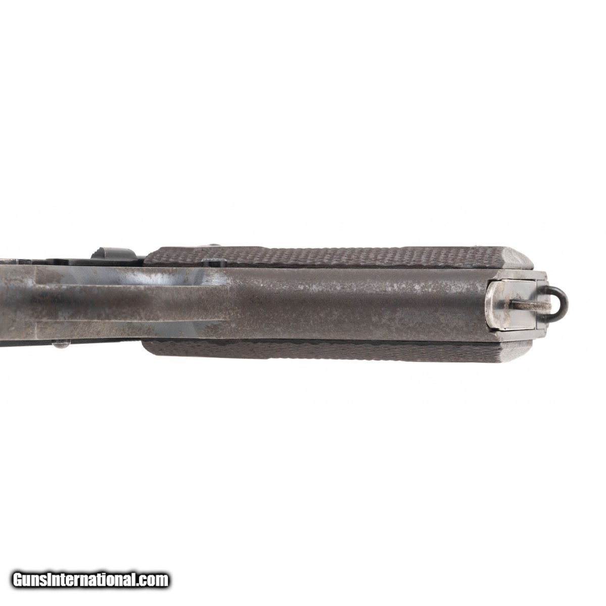 Description: " US WWI military pistol. Metal has approximately 60% original finish with patina and light surface etching. Magazine has lanyard loop and is correct two-tone. Bore is excellent. Good overall condition. SOLD Curio/Relic: Yes |