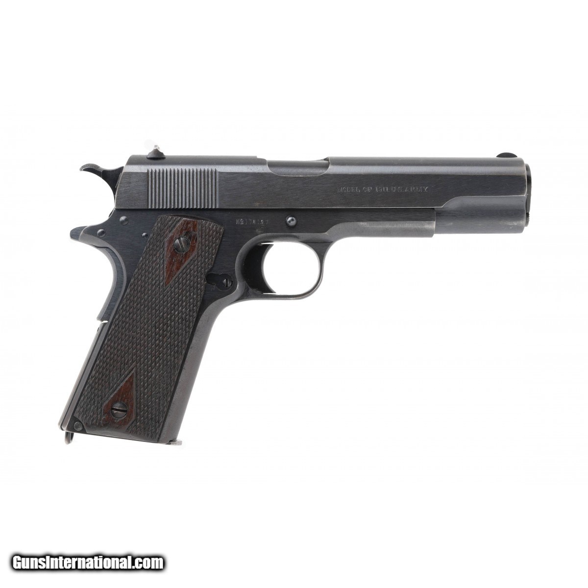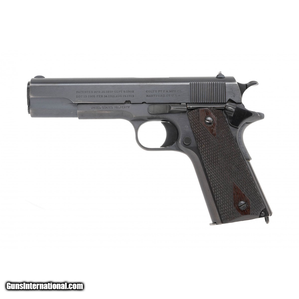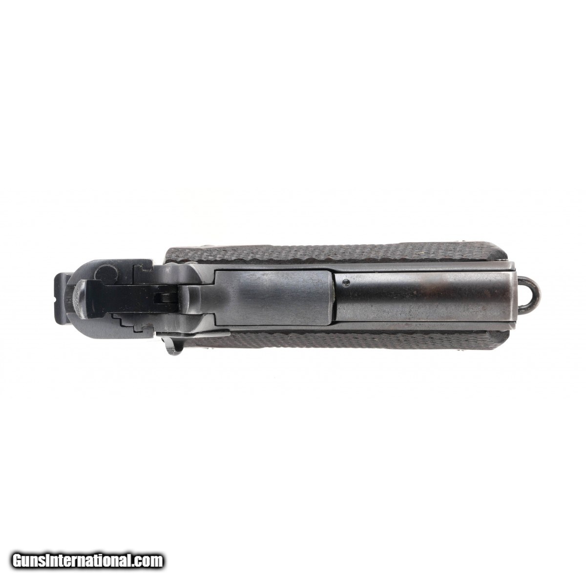 Description: " Excellent WWI US military pistol manufactured in 1917. Bore is excellent. Approximately 99% original finish. Correct two-tone magazine. Grips checkering is sharp and crisp. Hard to find in this condition! SOLD Curio/Relic: Yes |