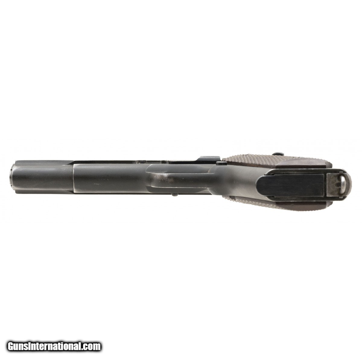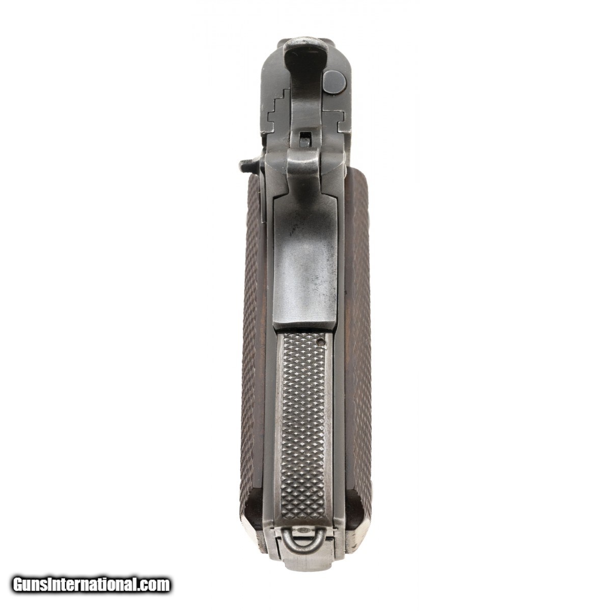 Description: "Serial number 747869. Made in 1941. 45 ACP with a 5" barrel. Very fine gun with 90% of the original finish with mostly just high edge wear. Grips are very sharps. SOLD Curio/Relic: Yes |