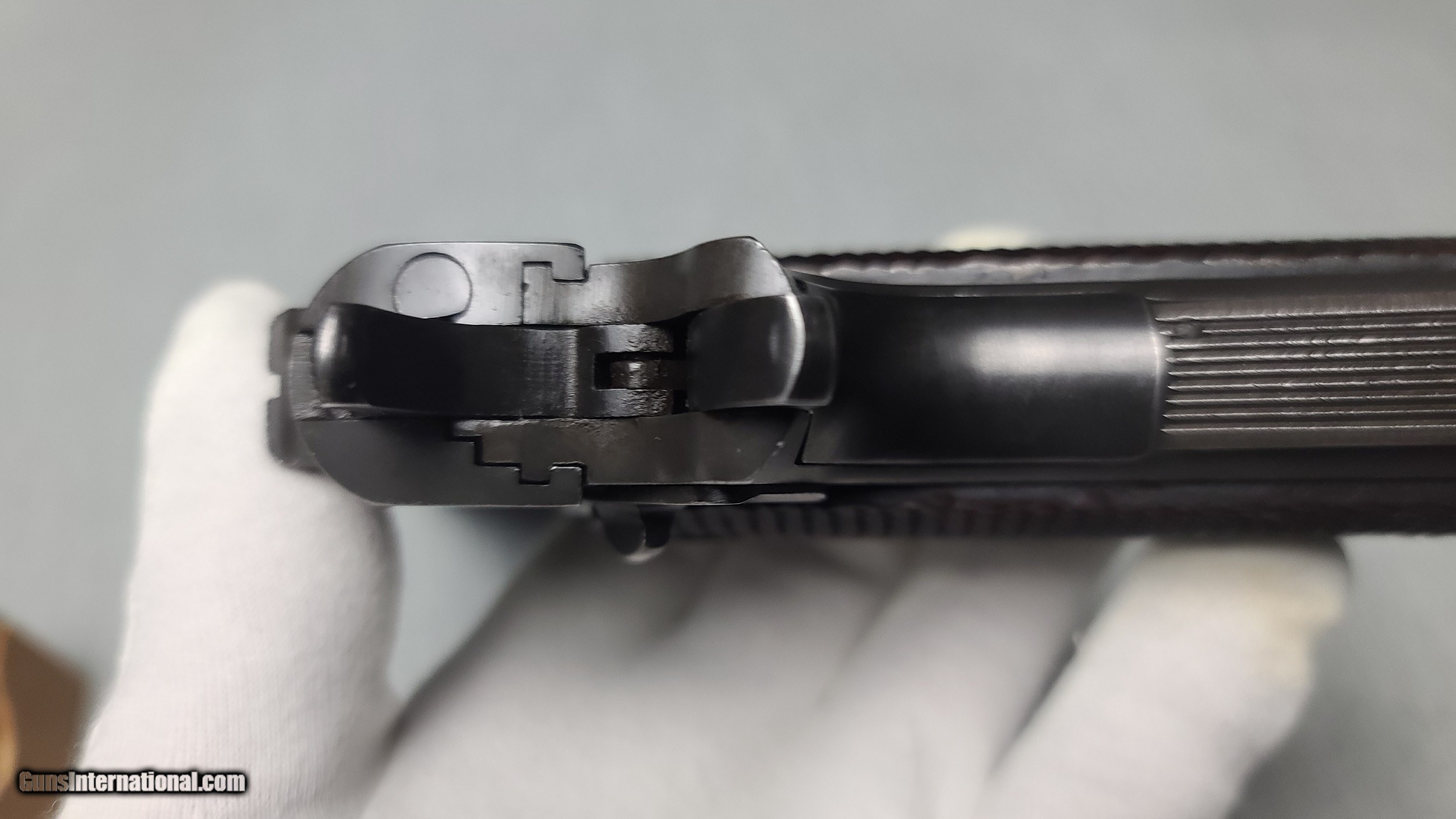 Description: Available for your consideration here is a very desirable Colt 45 auto military 1911 A1, hard to come by in this good correct original condition. A great deal of time and effort went into the finish on 1911 pistols before this era, but as the war progressed, finishing had to be simplified. As such, this slide is park and the frame is park sandblasted.. as pictured. This particular firearm is well preserved for almost 80 years with nice clean straight lines and prominent sharp edges, very nice refined roll mark depth and definition, and a lite re-assembly mark under the slide lock.. as pictured. There is NO purple haze in the bluing, minimal muzzle wear, no significant marks or wear on slide top or frame bottom.. the grip straps are in good condition with lite wear, and the grips are correct original full checkered walnut in good condition with No damage. Magazine is correct 7 round. Please see pictures for best description of condition and please ask questions. Fedex 2-day ship is 45.00 to anywhere in the USA, well insured. FFL is required for transfer., C & R is OK on this item, Please let me know if you have any questions or concerns. SOLD Handgun Caliber: .45 ACP (.45 Auto) Manufacturer: Colt Model: 1911 Barrel Length: 5 Condition: Very good Metal Condition: very good Wood Condition: good Bore Condition: decent |