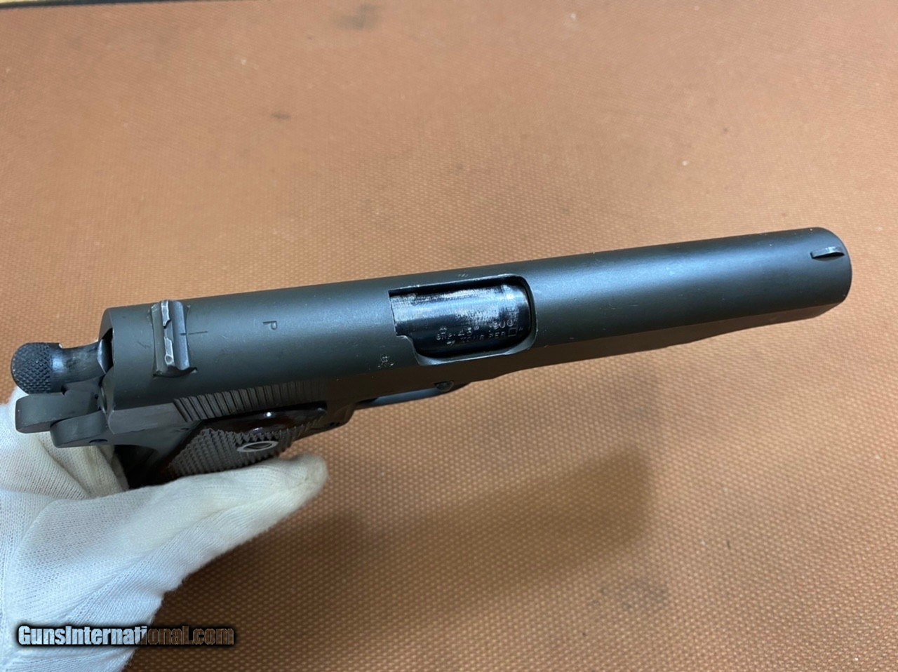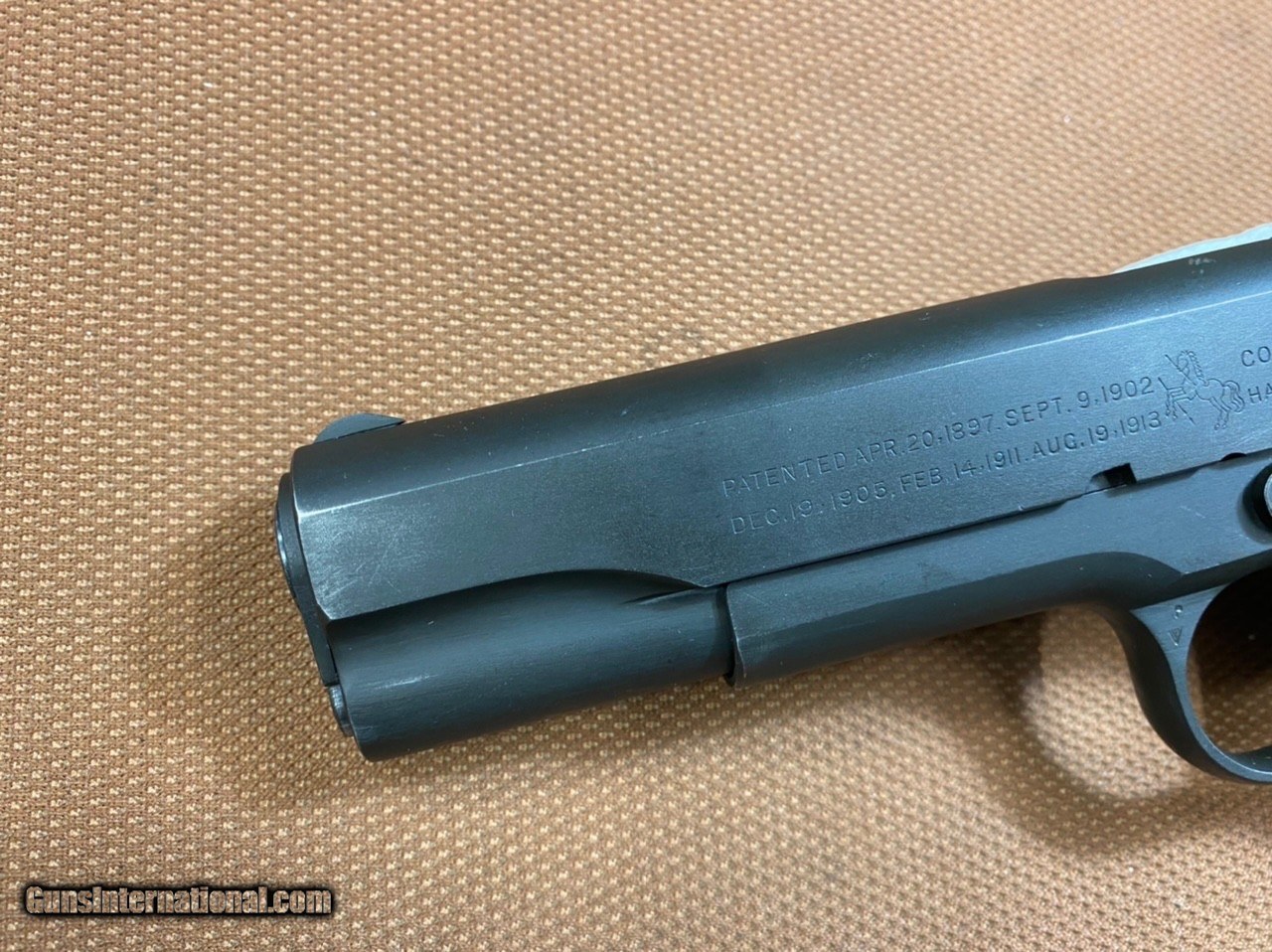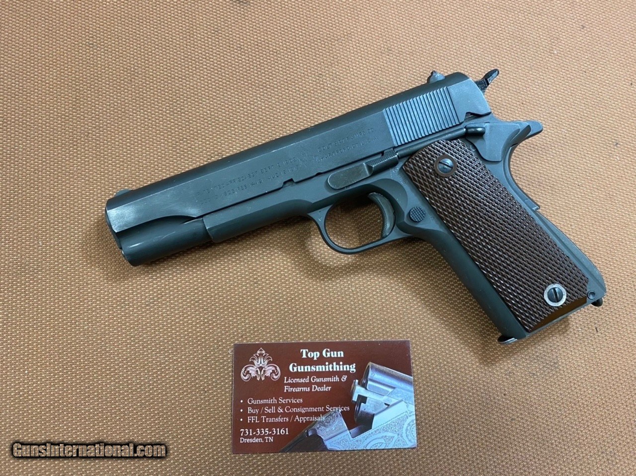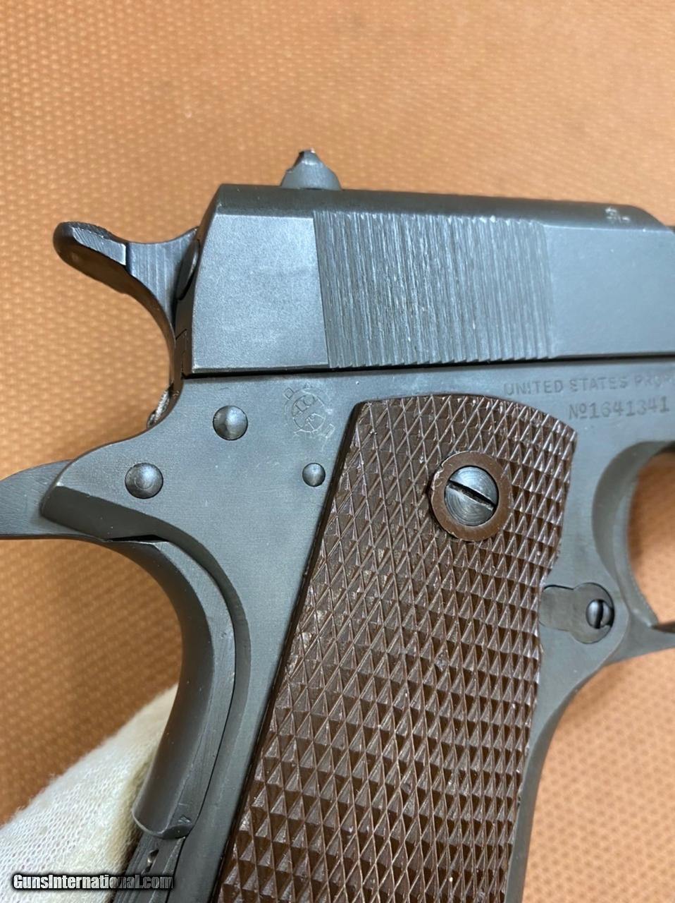 Description: ***SOLD*** Absolutely amazing example of a WWII Colt 1911A1! This one is in excellent control, 98% plus!!! collector Grade! This Colt was made in 1944, shipped to Transportation Officer, Springfield Armory in September of 1944, and then sent to Britain as part of the Lend Lease Act approved in 1941. Britain declared all WWII 1911A1 obsolete in 1952 and subjected the pistols to British proof laws requirements before they were released! This pistol features all the correct proof marks from Birmingham Proof House, "BNP" marked on receiver, slide and barrel. It is in All Original condition, based on our thorough inspection! It's marked G.H.D for Guy H. Drewry, Brig. General inspector mark. Correct barrel with "Colt 45 Auto", "P" on barrel lug, and "f" on bottom (see pics), with outstanding, pristine bore condition. It comes with correct WWII Scovill magazine subcontracted for Colt (thus marked "C-S"). All parts are original and period correct! No serial number under the firing plate, as expected, since they stopped this practice between serial numbers 1140000 and 1145000. Original correct Coltwood plastic stocks with mold numbers, wide rings, and strengthening ribs, in excellent condition! The action on this pistol is crip and operates flawlessly! The original finish is outstanding! Again, the condition on this pistol is amazing! Hard to find another WWII Colt in better condition! Own a piece of history and a great investment! This one won't last! Shipping with insurance will be $75 to Continental US ONLY (AK & HI extra). No shipping to California. Personal Checks will be held till funds clear (usually 3-5 business days). Cashiers checks and USPS Money Orders same as cash! Please ask any questions! Thanks SOLD Handgun Caliber: .45 ACP (.45 Auto) |